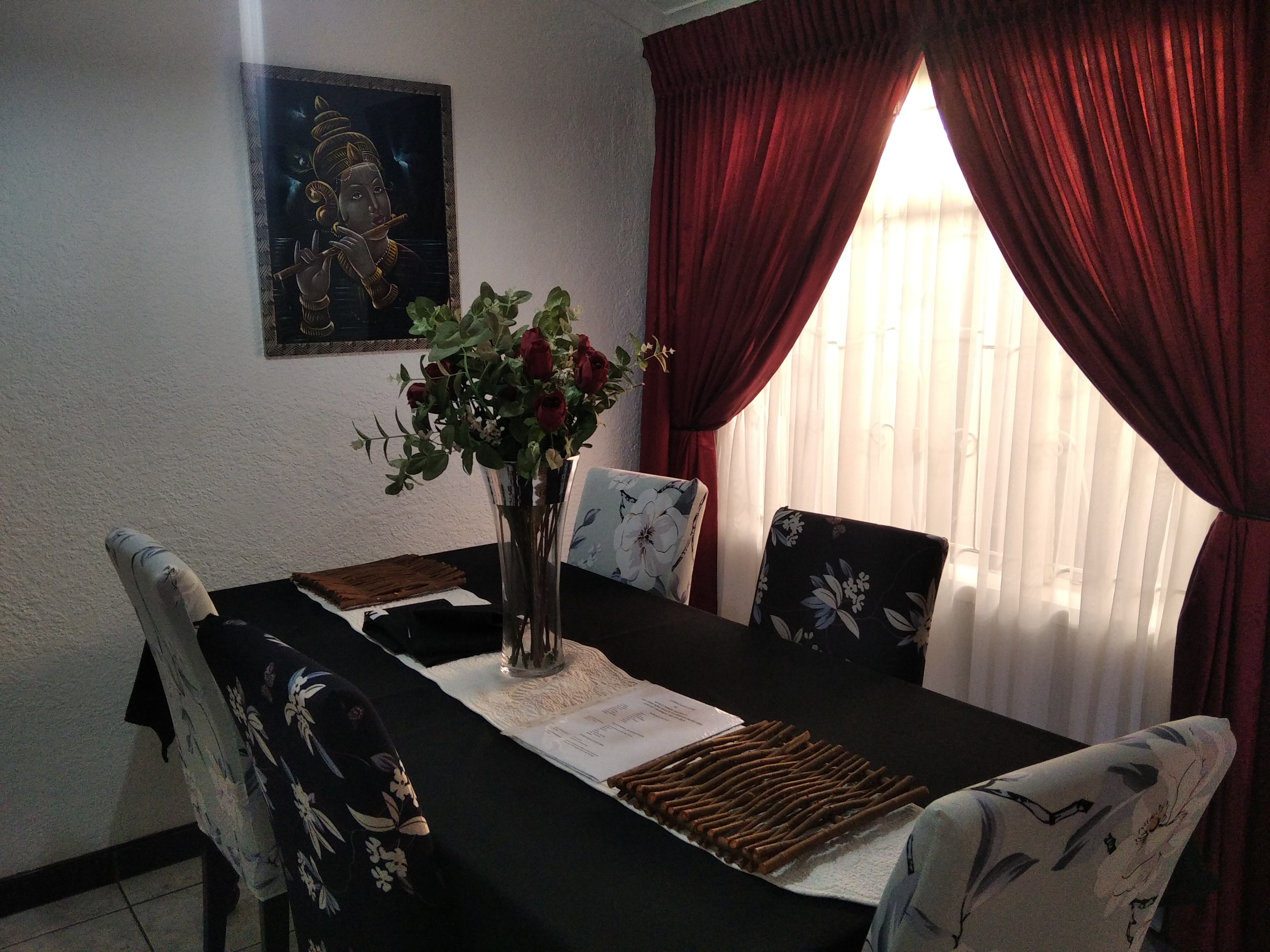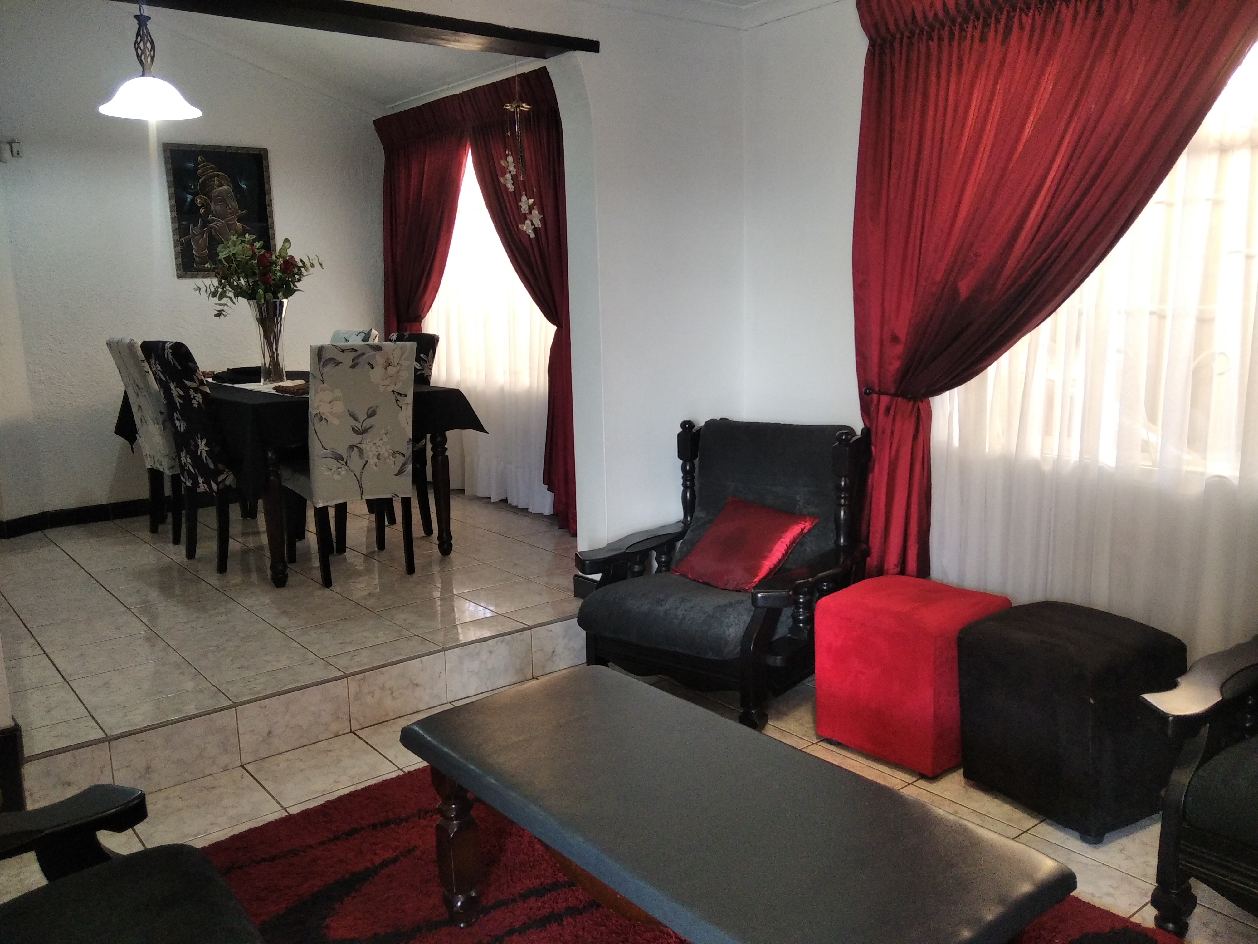 The home is a large 4 bedroom home fully fitted with built-in cupboards in all bedrooms. The master bedroom has an ensuite with one bathroom and toilet. The spacious Kitchen is fully fitted with multiple storage cupboards with a sunken pantry. An open plan TV room with the lounge and Dining adjacent to that. The backyard has an outdoor scullery with a washing area. Retractable washing lines with an additional sheltered area to hang or drying clothing. Double garage door with a single garage parking and an additional quadruple sheltered parking that goes along side perimeter. A further granny cottage with its own entrance, comes fully fitted with built-in cupboards and sheltered parking area. The entrance and pathway are fully tarred. The home also has a 1000L JoJo tank that harvests rain water. This homes is worth the viewing and won't last long due to its pristine condition. Viewing by Appointment!!