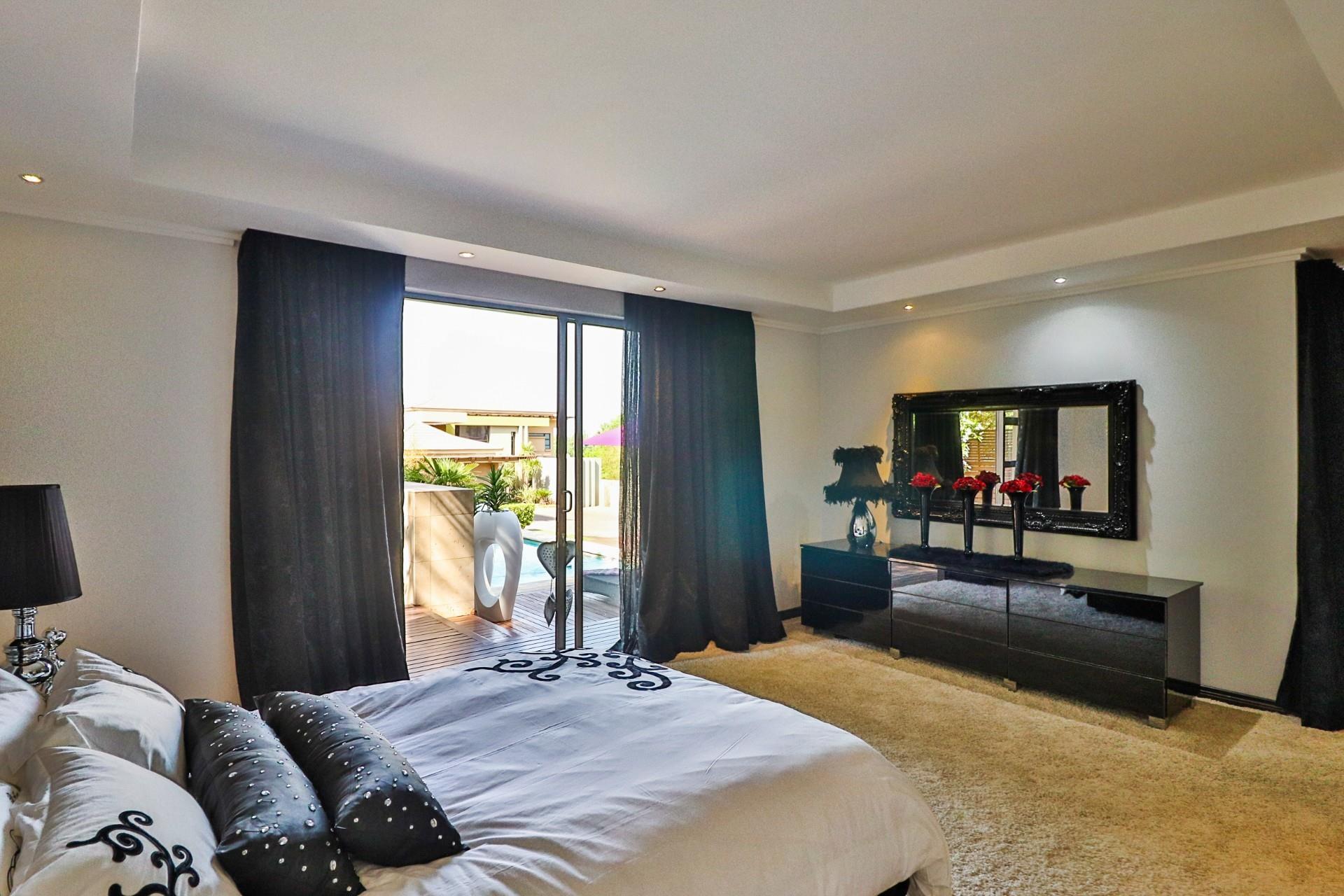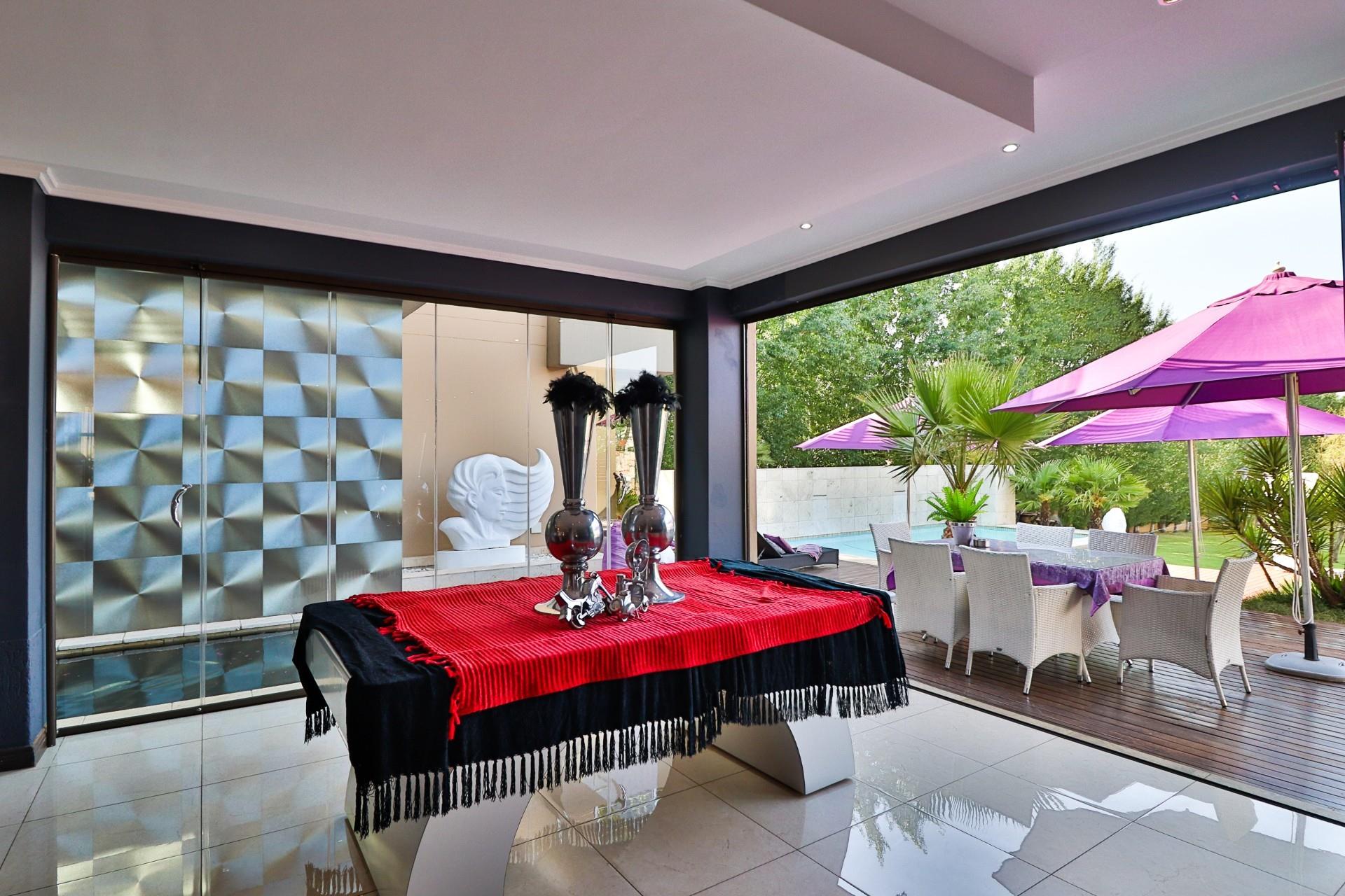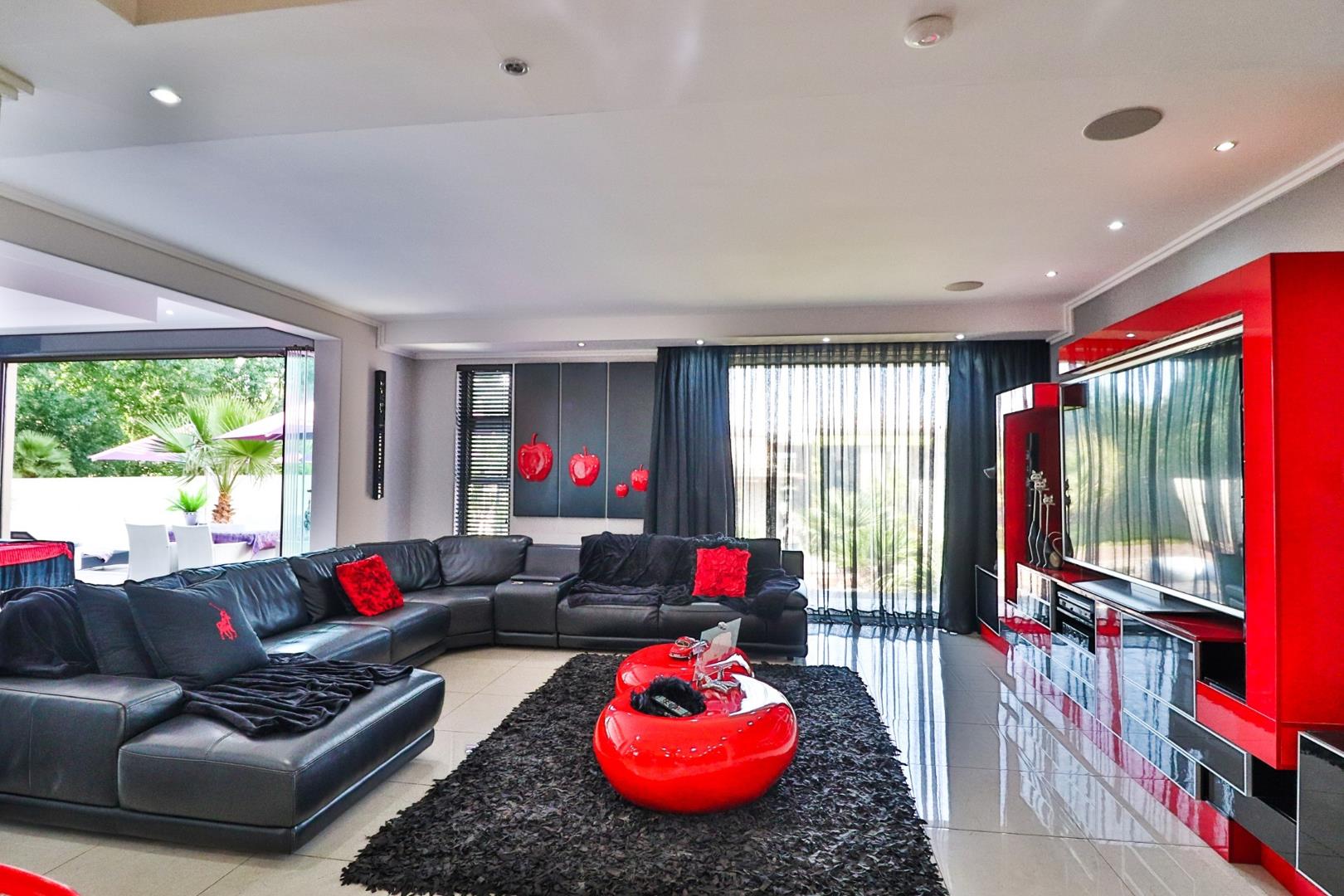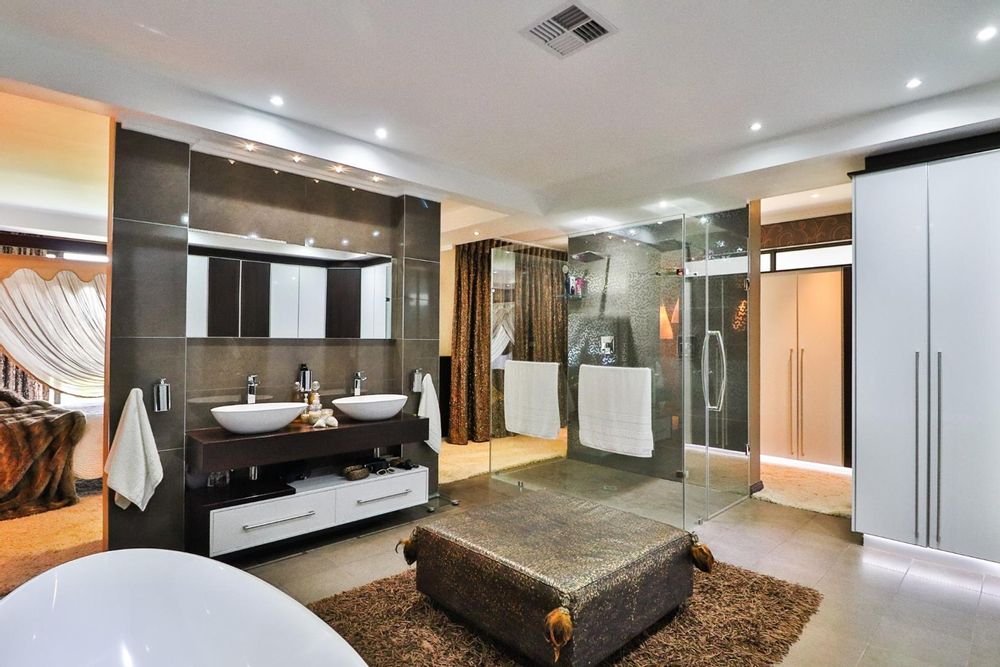 Masterpiece and one of a kind! In an exclusive and prestigious and secured River estate with only 4 of these prestigious homes. Stylish with exquisite finishes and modern décor. This home is spacious, a double story, 1100m2 under roof with everything integrated and can be controlled from anywhere in the house. Central air conditioning system, underfloor heating, heated pool and surround sound system is just some of the outstanding features. It offers 5 bedrooms, all with en-suites, guest toilet, lovely open plan kitchen, lounge and entertainment area, bar fridges, ice makers and gas heaters for that ambient feel when you are relaxing while overlooking the river. Walk out onto the wooden deck and there is a heated pool with a beautiful, landscaped garden that take you down all the way to the river. Top floor Rooms overlooking the beautiful garden area and river. Four garages. Manicured garden with automated irrigation system. Boat house separate to the main building and own jetty at the river. Words cannot describe it, and it is a must to see. Viewing by appointment only for pre-qualified buyers.