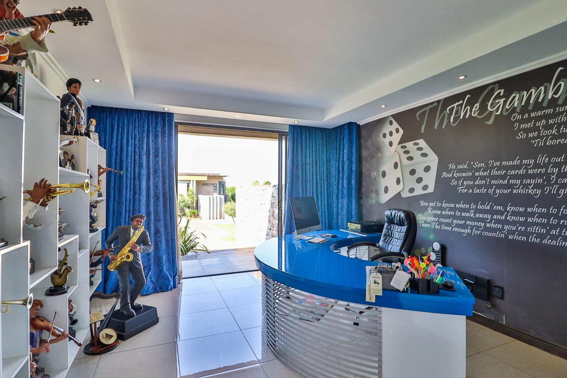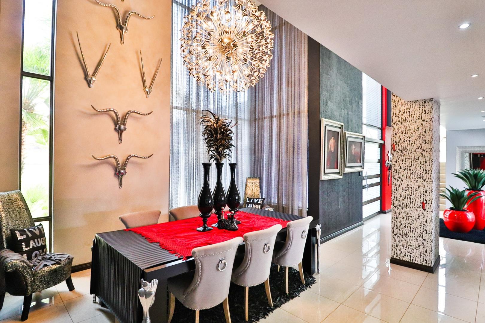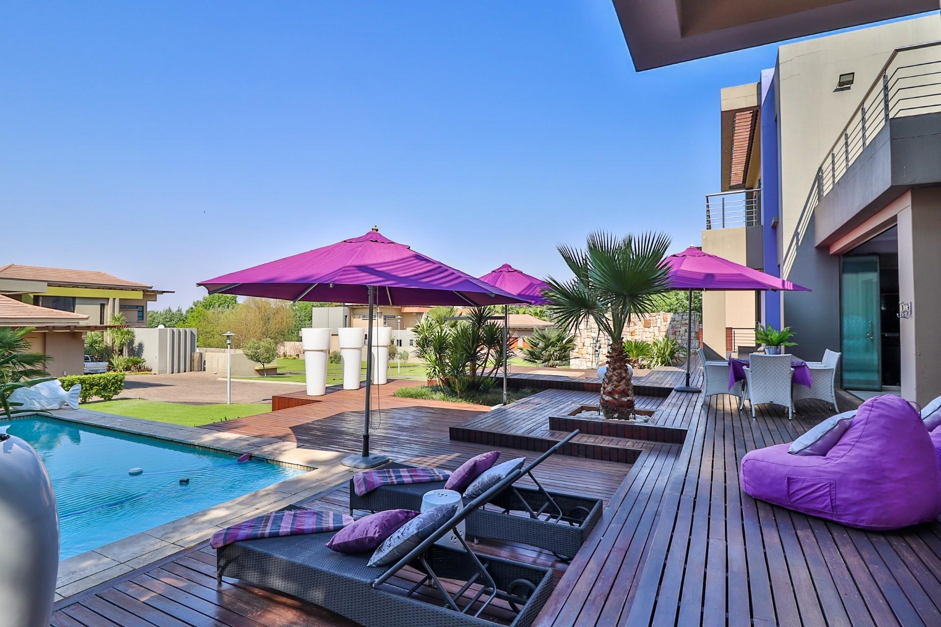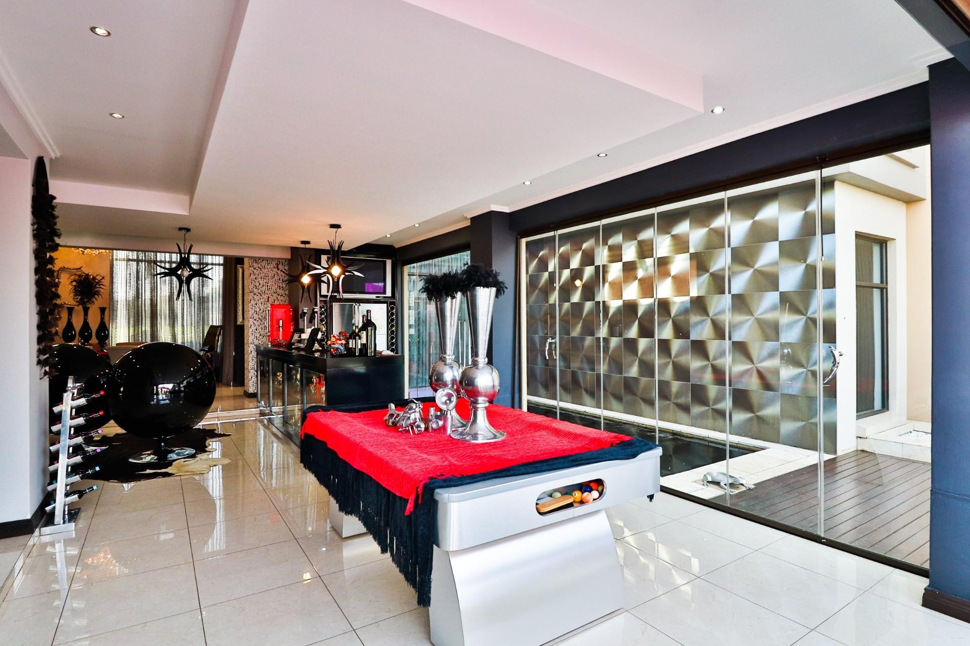 Masterpiece and one of a kind! In an exclusive and prestigious and secured River estate with only 4 of these prestigious homes. Stylish with exquisite finishes and modern décor. This home is spacious, a double story, 1100m2 under roof with everything integrated and can be controlled from anywhere in the house. Central air conditioning system, underfloor heating, heated pool and surround sound system is just some of the outstanding features. It offers 5 bedrooms, all with en-suites, guest toilet, lovely open plan kitchen, lounge and entertainment area, bar fridges, ice makers and gas heaters for that ambient feel when you are relaxing while overlooking the river. Walk out onto the wooden deck and there is a heated pool with a beautiful, landscaped garden that take you down all the way to the river. Top floor Rooms overlooking the beautiful garden area and river. Four garages. Manicured garden with automated irrigation system. Boat house separate to the main building and own jetty at the river. Words cannot describe it, and it is a must to see. Viewing by appointment only for pre-qualified buyers.