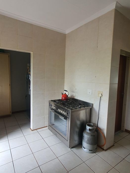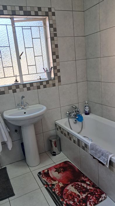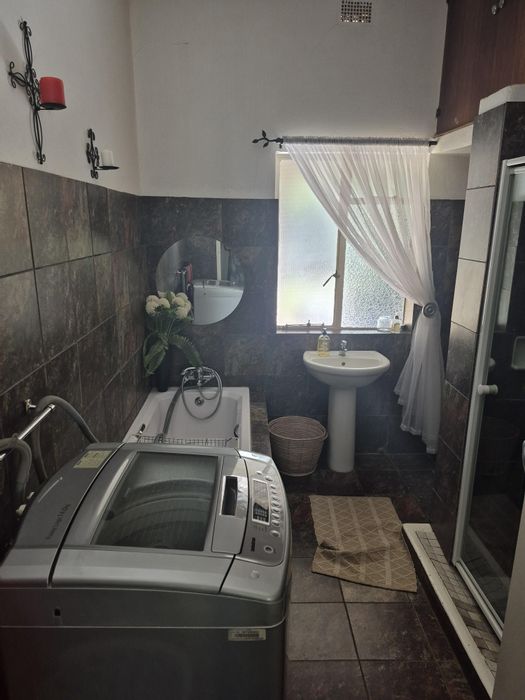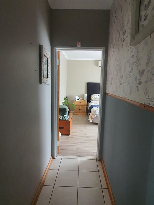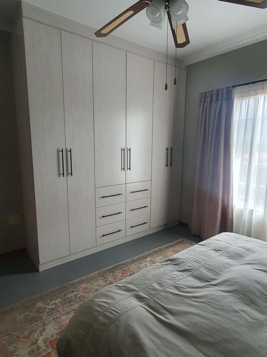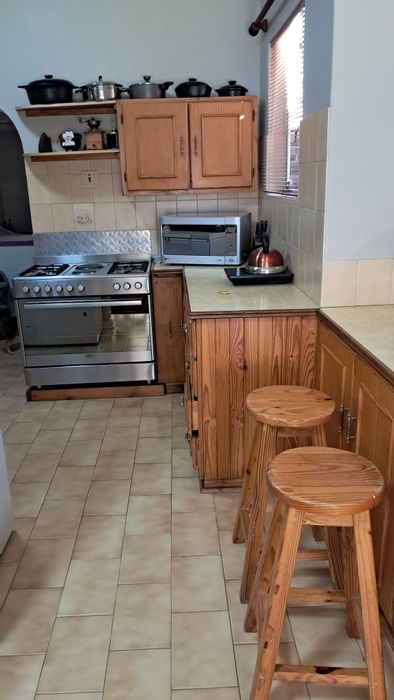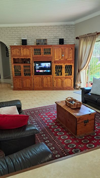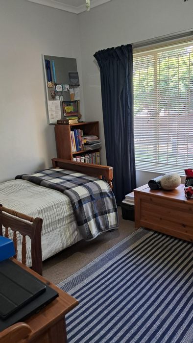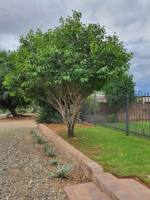 Relaxed family living with sunny north-facing spaces on a leafy 2,141m² erf, established garden and covered lapa with built-in braai — three bedrooms, two bathrooms, double garage.