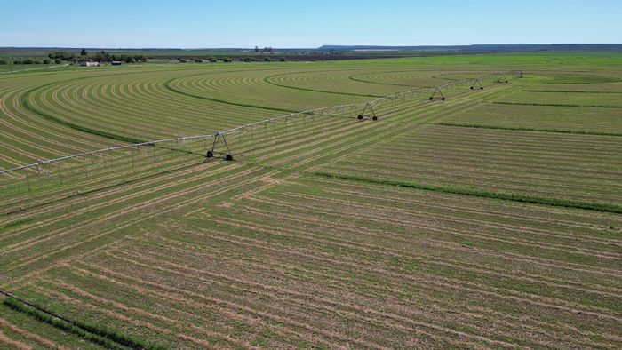 Riverfront agricultural estate offering flexible sale options — three plots with multiple homes and apartments, irrigation pivots, extensive water rights, pumps and workshop for commercial farming.