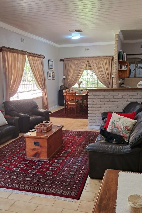 Riverside living on the Vaal River, 13 km from Douglas — enjoy 150m river frontage, indoor braai and lush garden; four bedrooms, two bathrooms, single garage.
