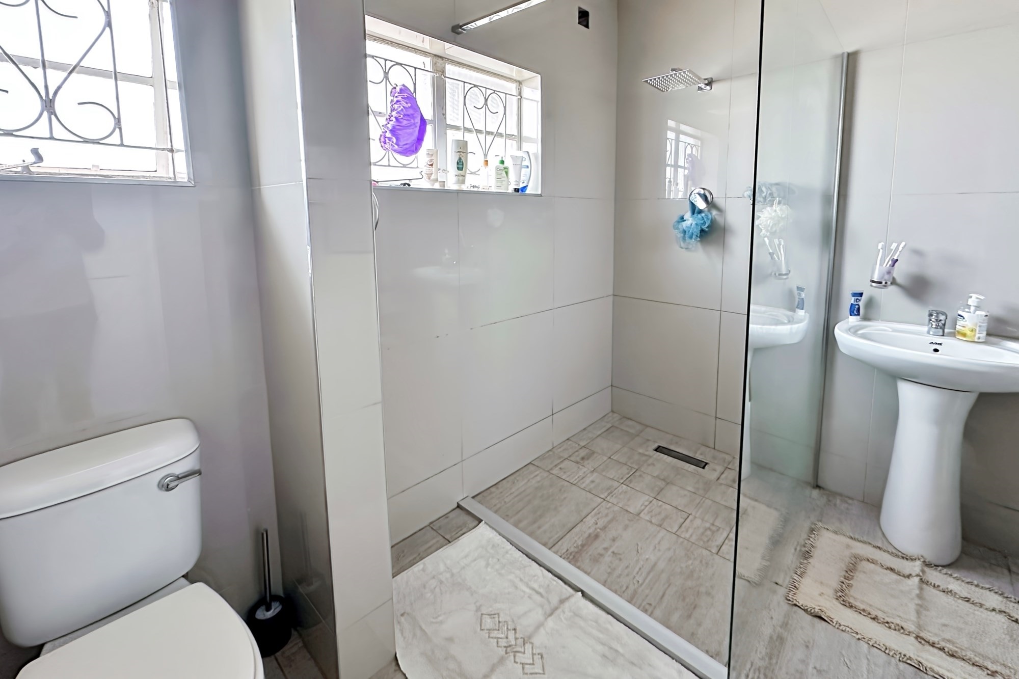 This beautiful 3-bedroom home offers comfort and convenience. The main bedroom features air conditioning, built-in cupboards, and an en-suite bathroom with a shower, toilet, and bath. The second bedroom includes two built-in cupboards, while the spacious third bedroom provides ample living space.