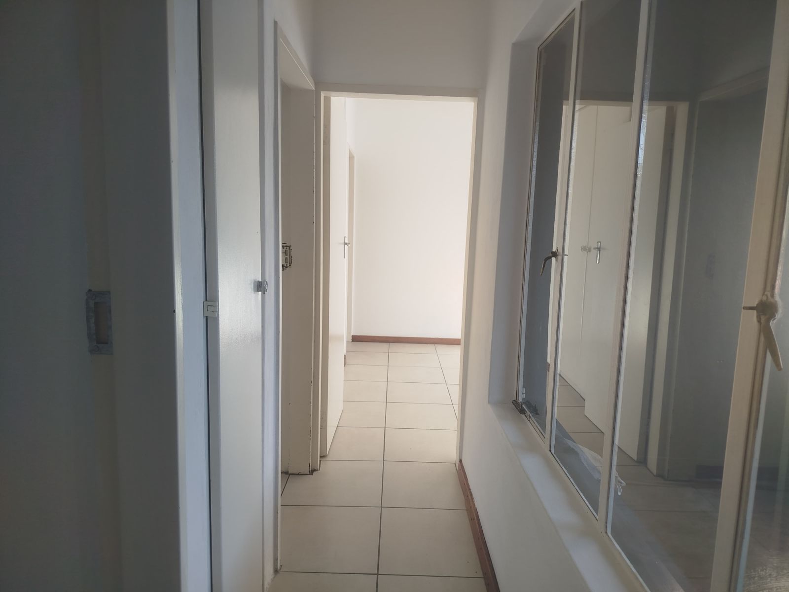 Bedrooms: 2 carpeted rooms with built-in cupboards and curtain rails
