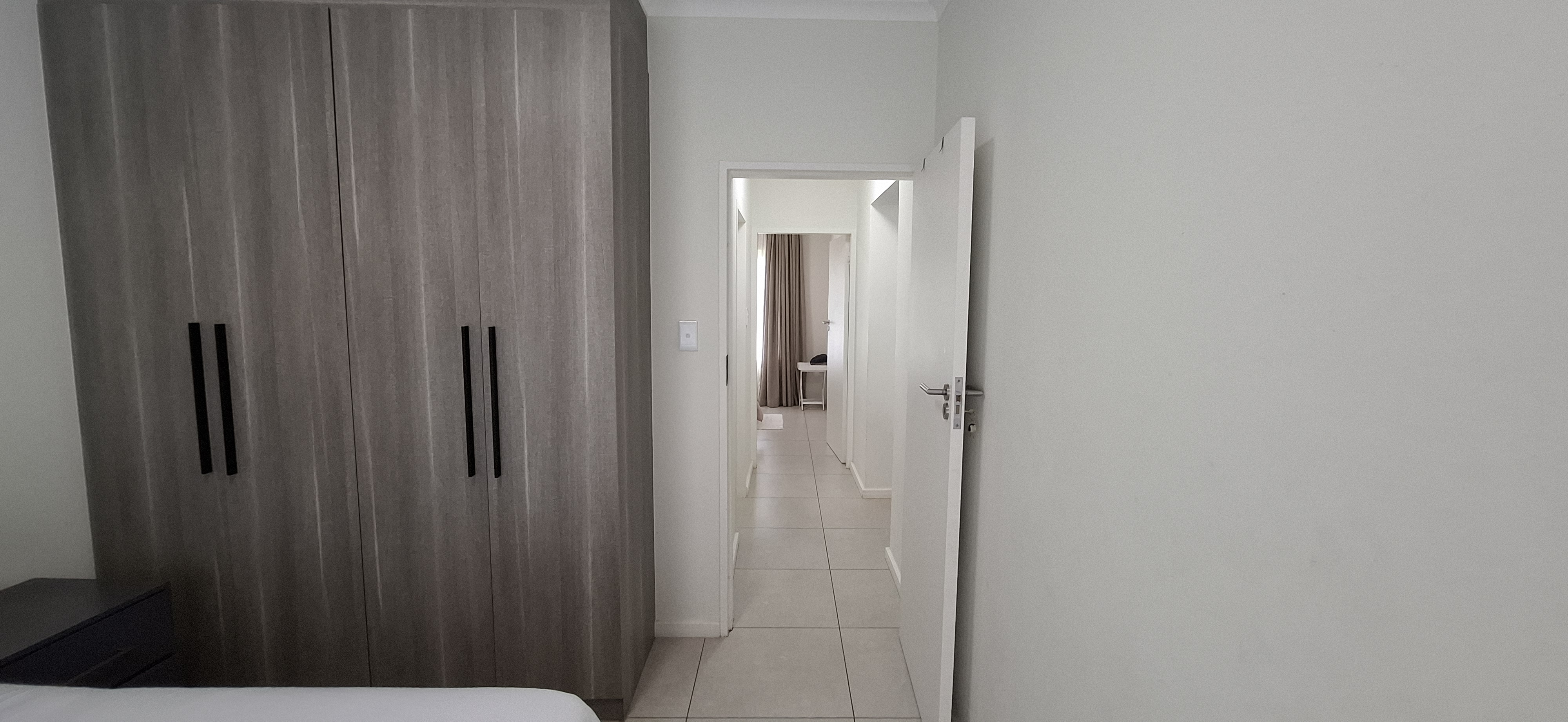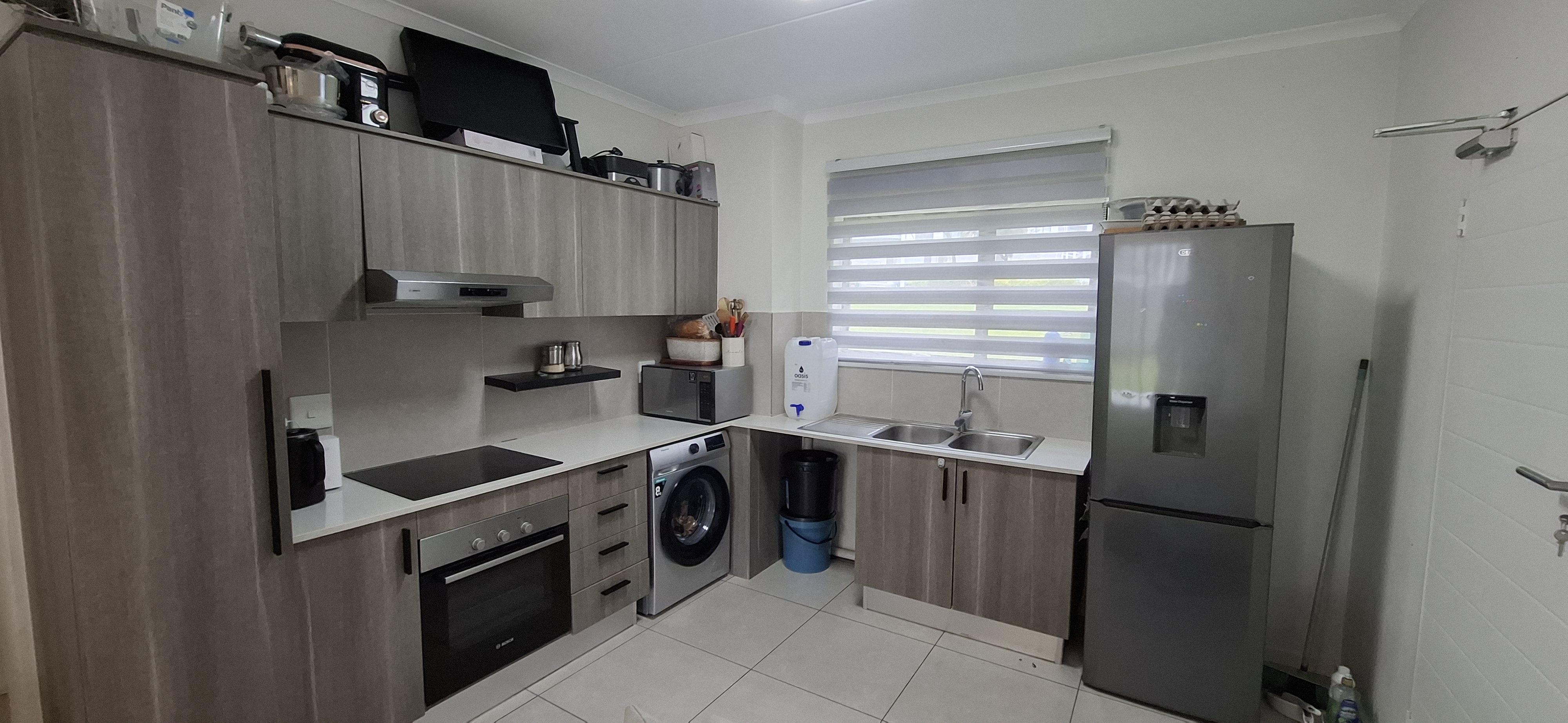 This neat and modern two-bedroom, one-bathroom ground floor unit offers comfortable and convenient living in a well-maintained complex. The unit features a tiled, open-plan kitchen and lounge that flows seamlessly onto a covered patio and a lovely private garden, ideal for relaxing or entertaining. The modern kitchen is finished with contemporary fittings and offers space for both a washing machine and a dishwasher. Both bedrooms are spacious, fully tiled, and fitted with ample built-in cupboards. The bathroom is well-appointed and modern. Additional features include prepaid electricity, one covered carport parking, and ample visitors’ parking. The complex offers 24-hour security and is pet friendly. Residents can enjoy excellent amenities such as a children’s play area, clubhouse, gym, heat pump, and two swimming pools. This unit is ideal for a young couple or a fantastic investment opportunity. Conveniently located close to all amenities with easy access to major highways. Contact the agent today to arrange a viewing.