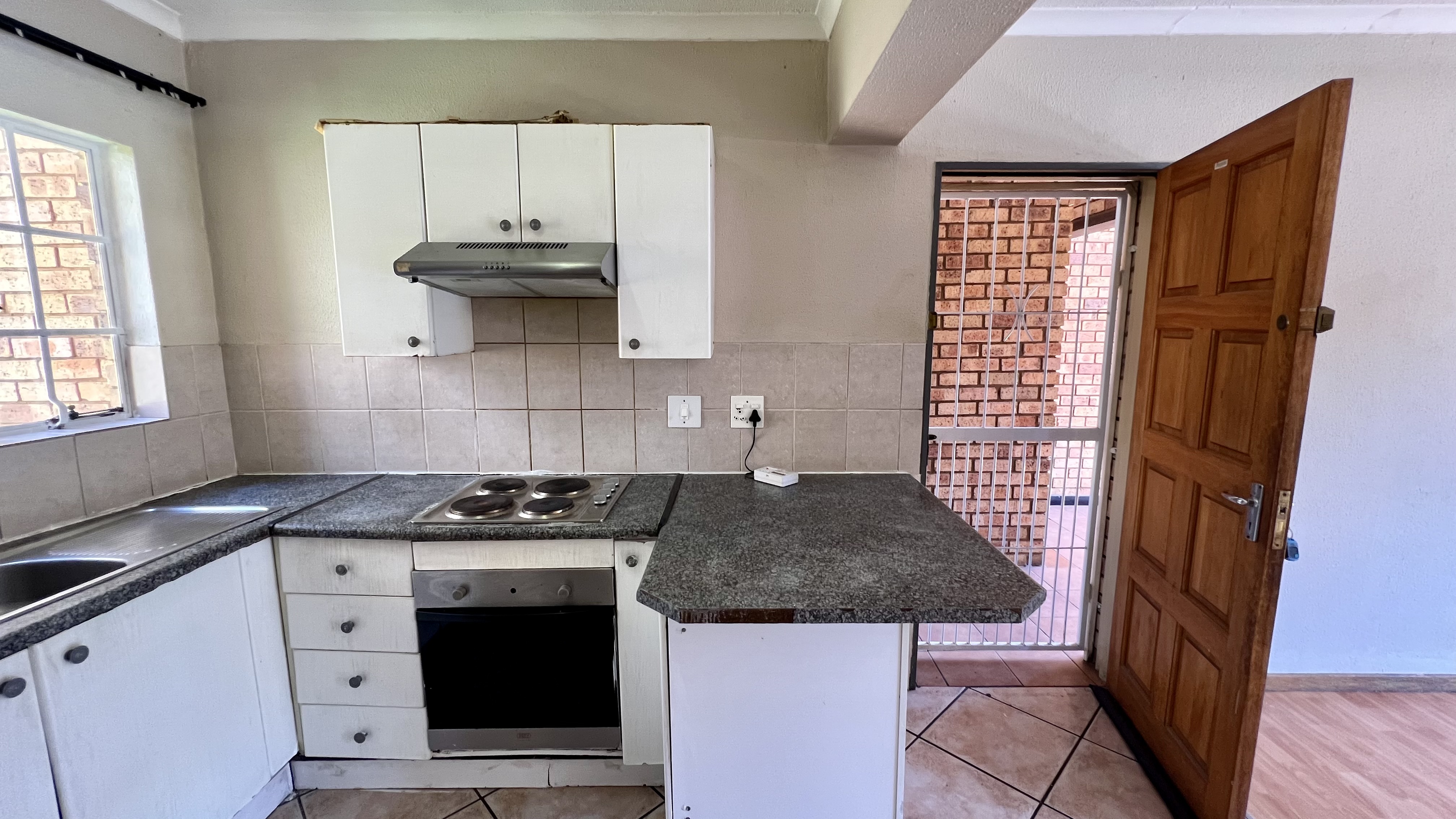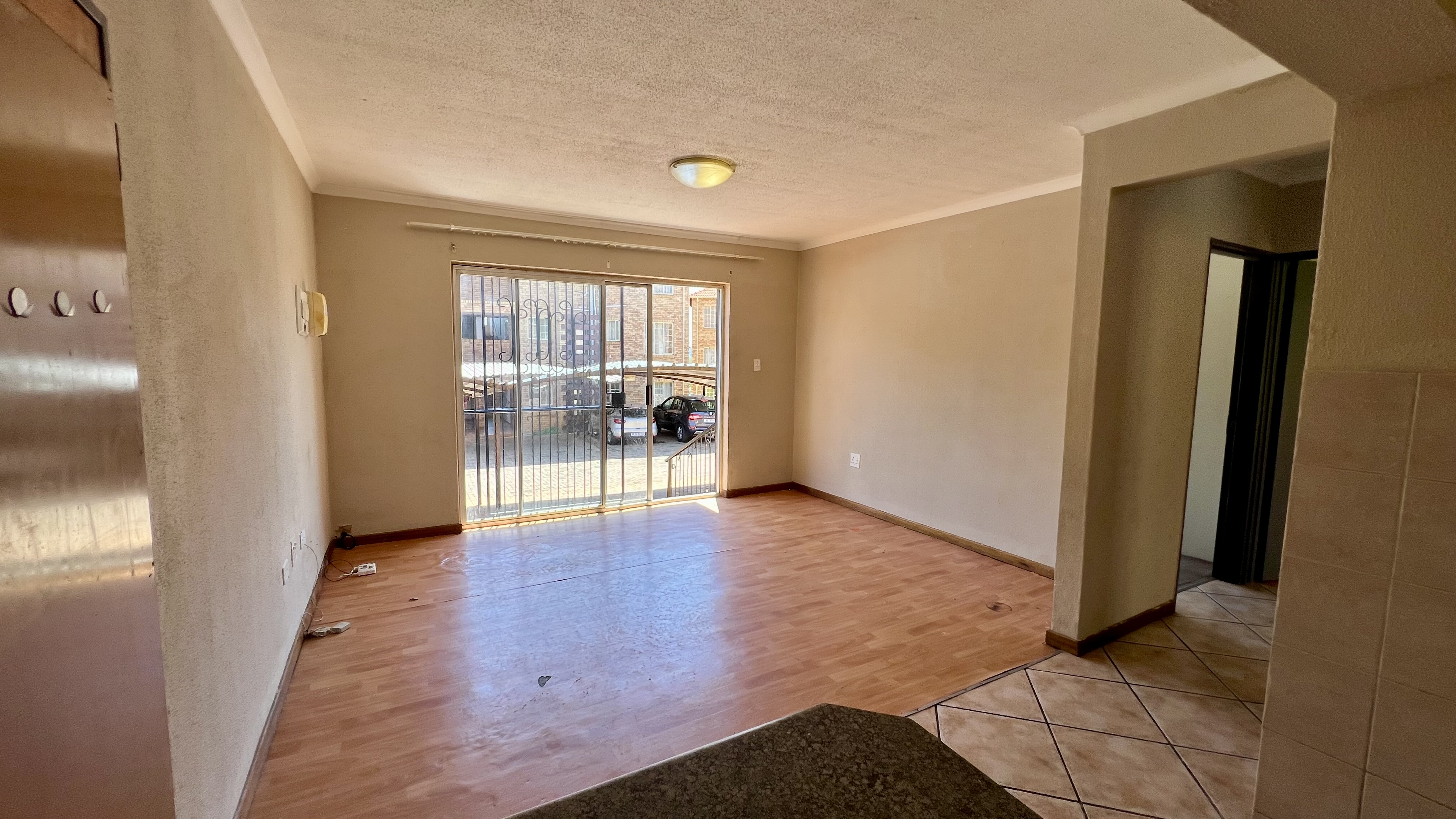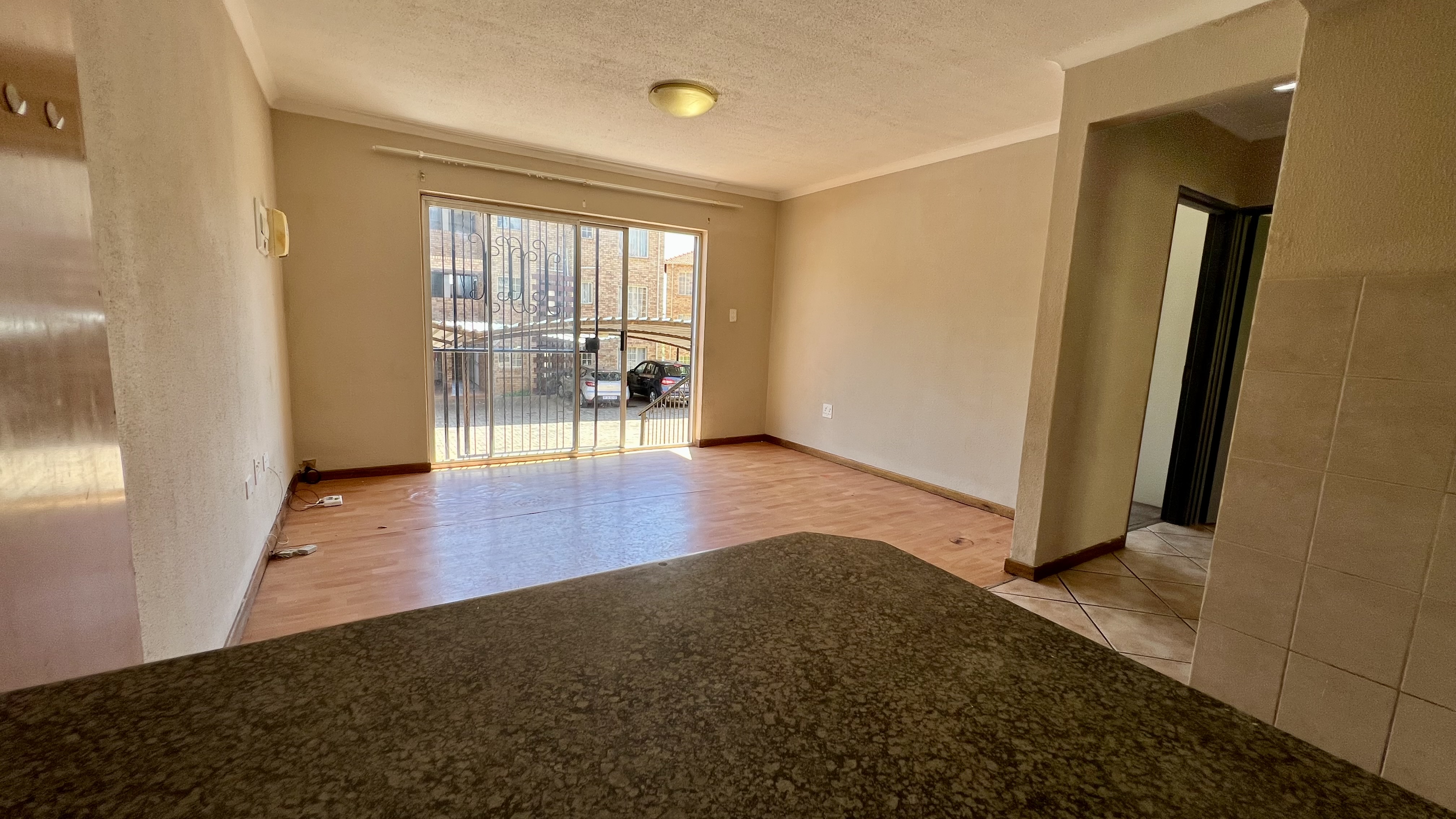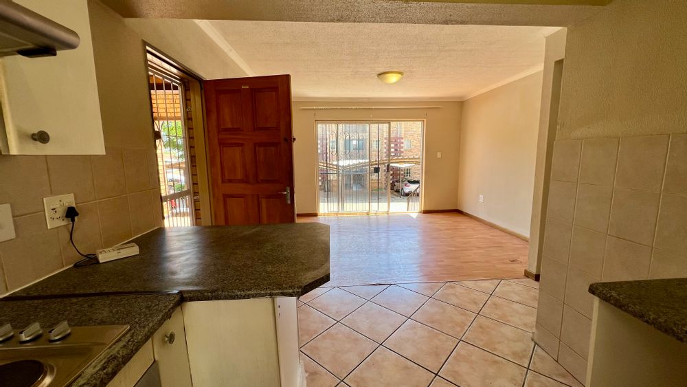 This ground floor unit offers two well proportioned bedrooms and one full bathroom. The front door opens into an open-plan kitchen and living area, creating a welcoming and functional living space. Sliding doors lead from the living area to a communal garden, ideal for relaxed outdoor enjoyment. Both bedrooms feature built-in cupboards and are serviced by a shared full bathroom.