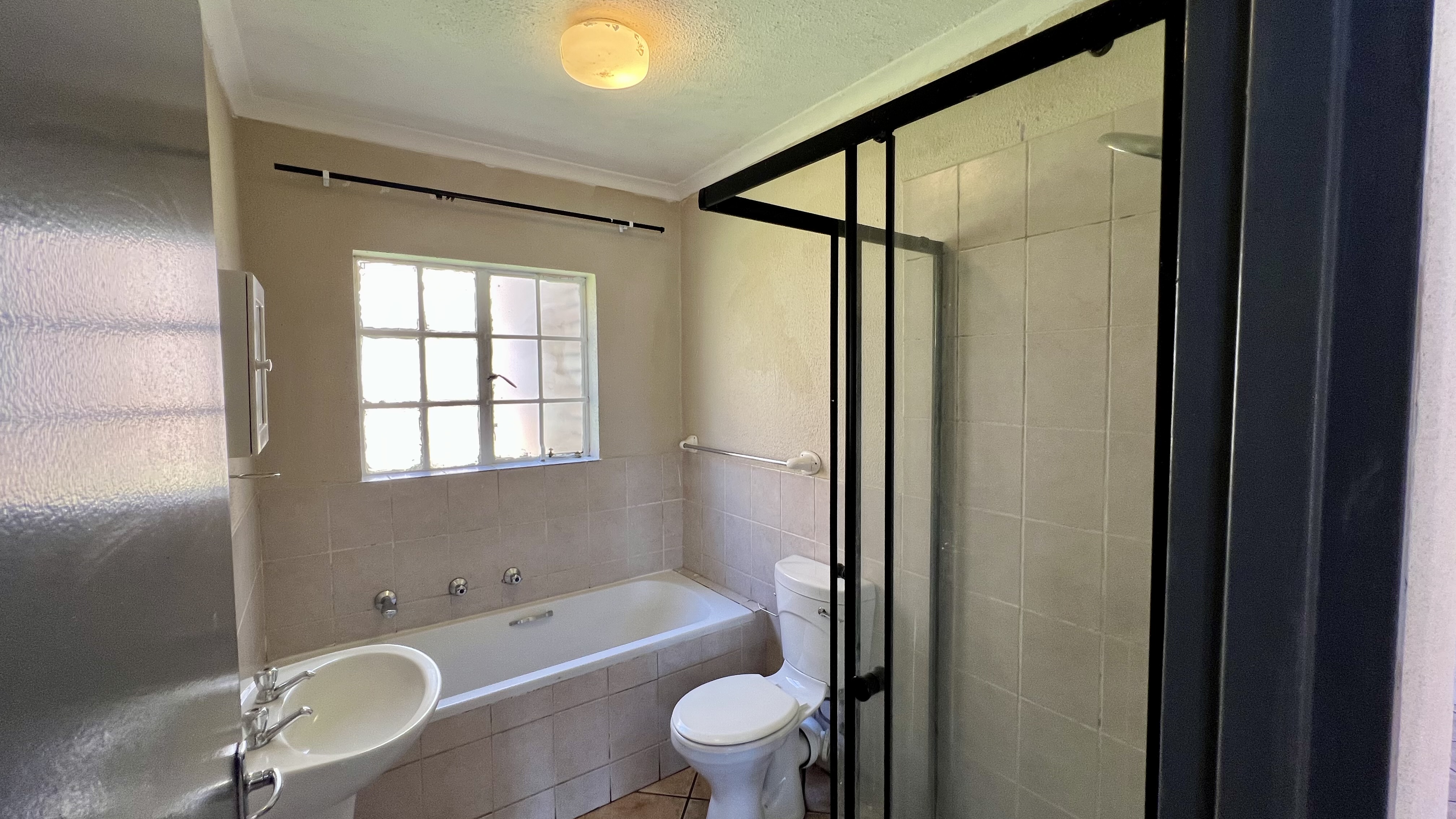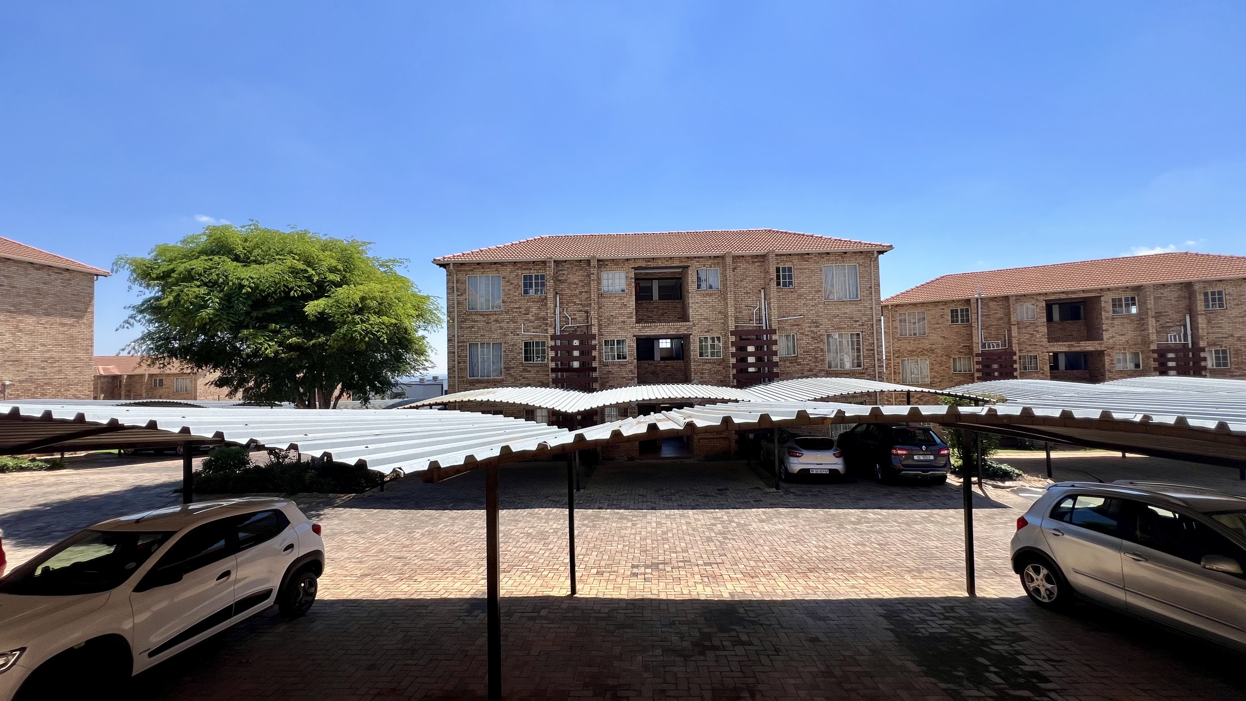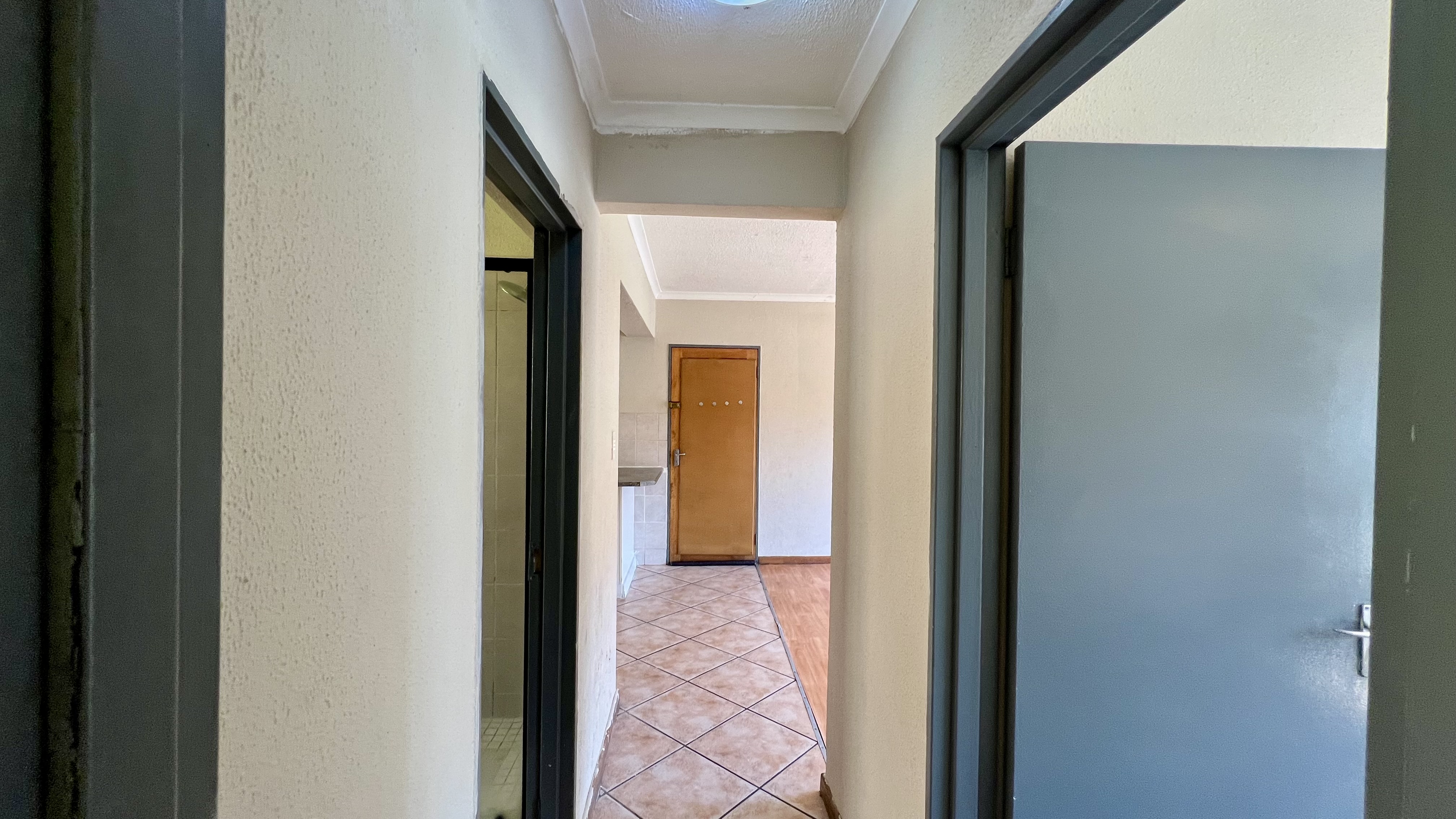 This ground floor unit offers two well proportioned bedrooms and one full bathroom. The front door opens into an open-plan kitchen and living area, creating a welcoming and functional living space. Sliding doors lead from the living area to a communal garden, ideal for relaxed outdoor enjoyment. Both bedrooms feature built-in cupboards and are serviced by a shared full bathroom.