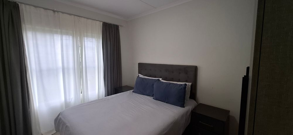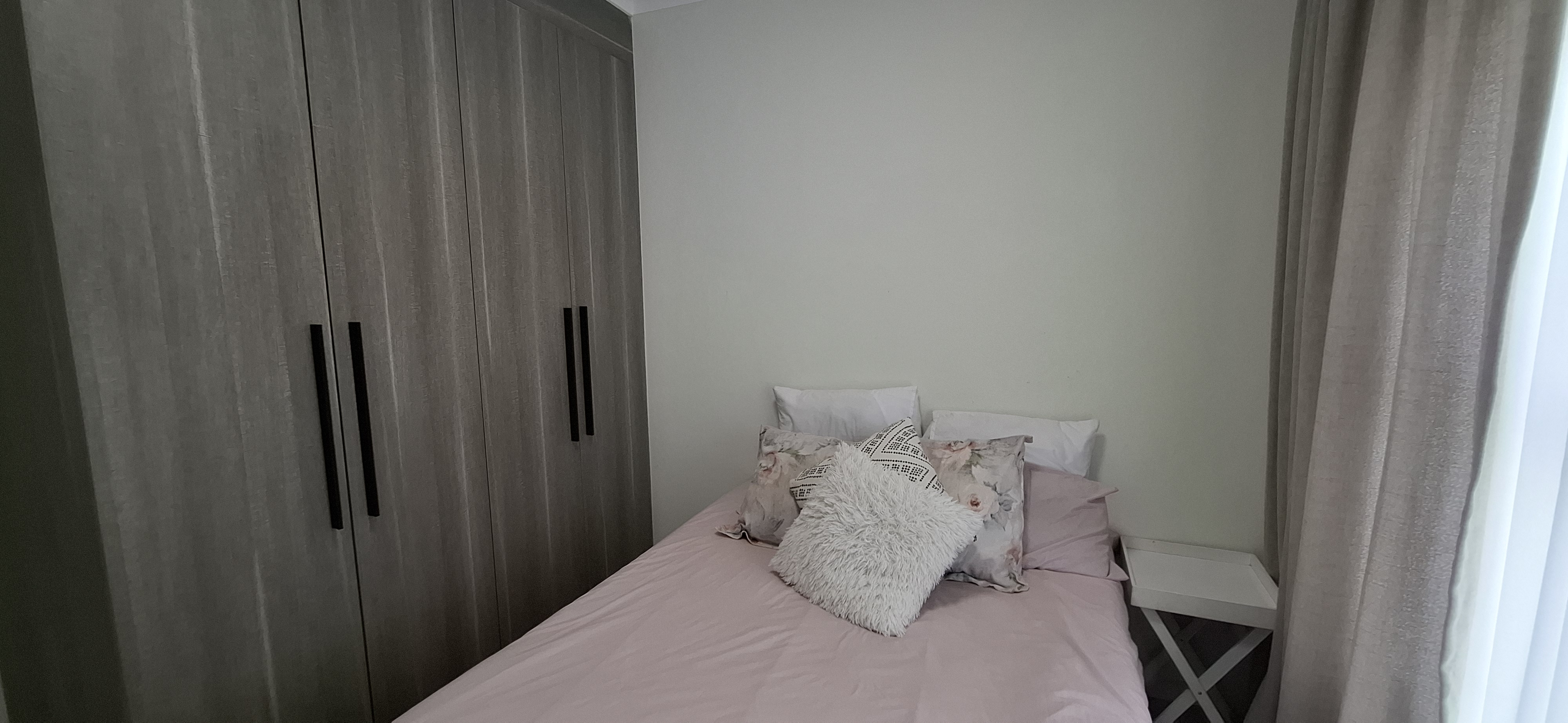 Both bedrooms are spacious, fully tiled, and fitted with ample built-in cupboards. The bathroom is well-appointed and modern.
