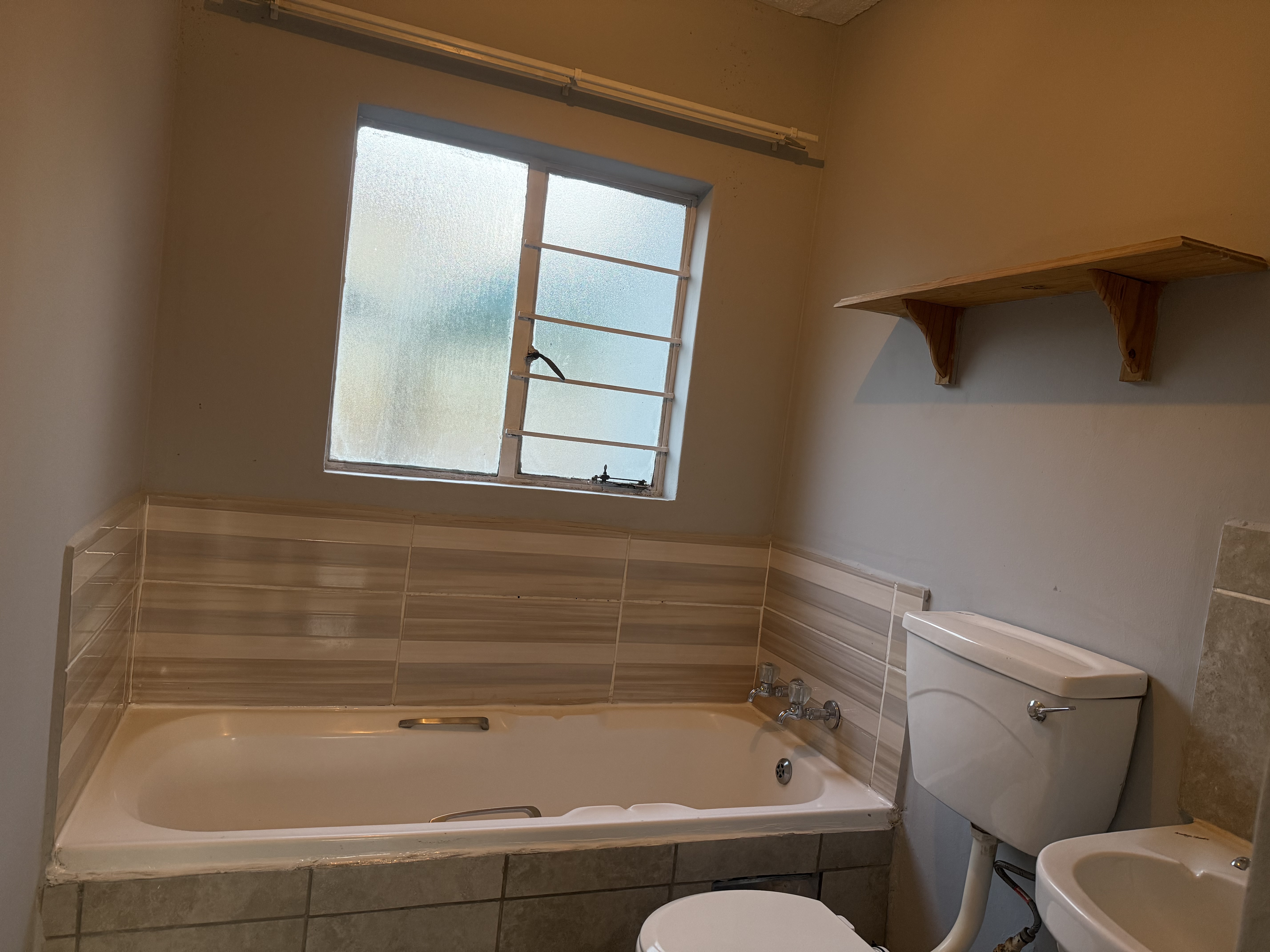 The main bedroom features an en-suite bathroom with a bathtub, while the second bathroom is fitted with a modern shower. All bedrooms are tiled and include built-in cupboards, ensuring a clean, low-maintenance living space.