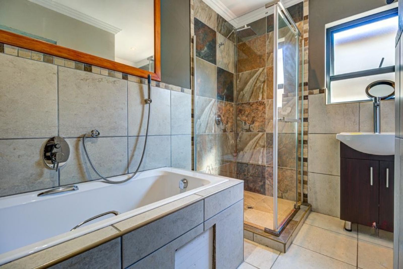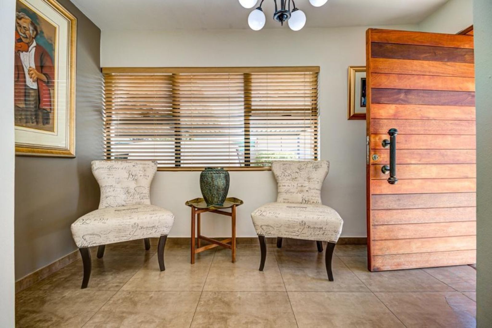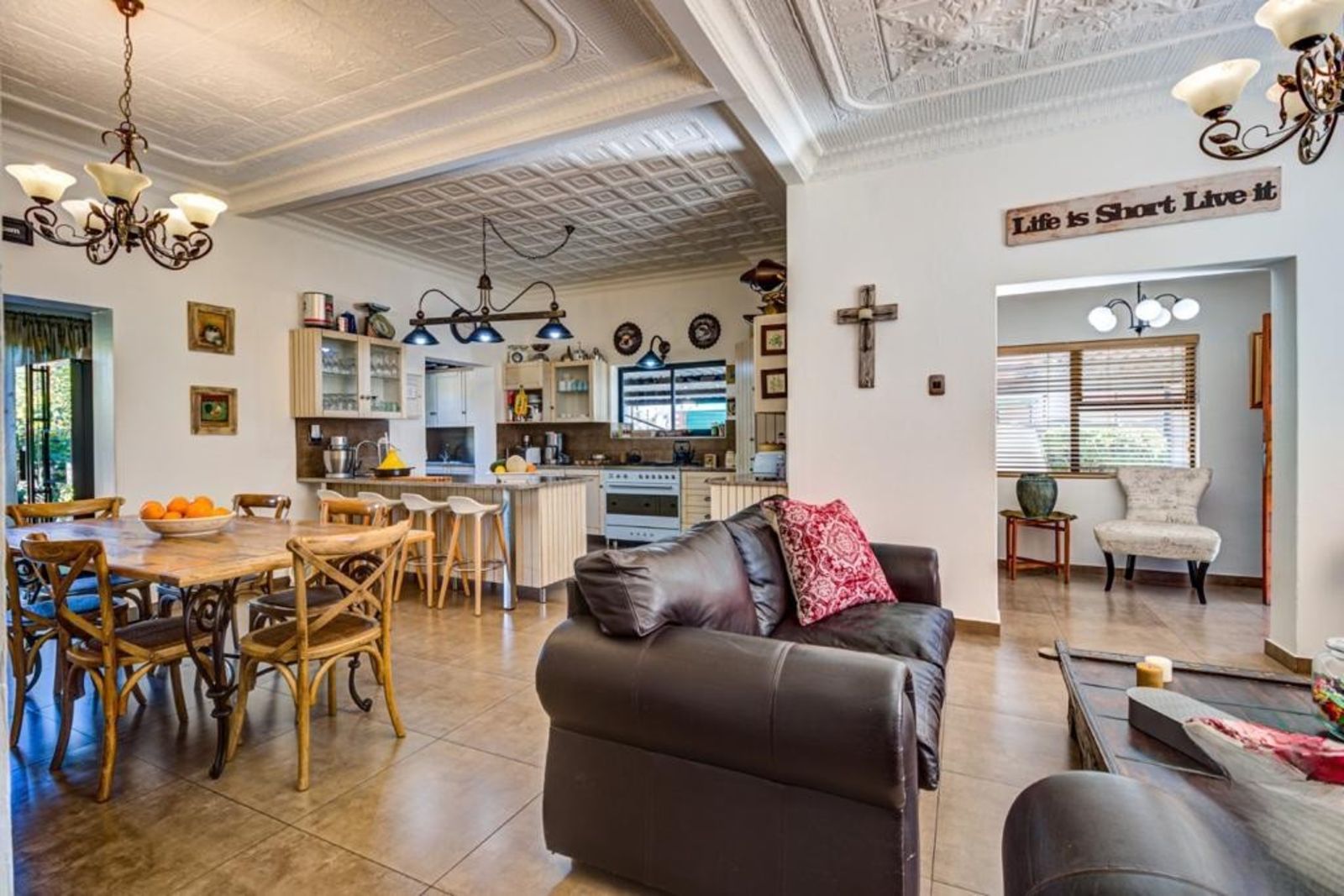 Low-maintenance backyard with space for entertaining Covered patio with braai and pool. Established gardens and secure fencing. Double garage, double carport and extra secure parking for multiple vehicles