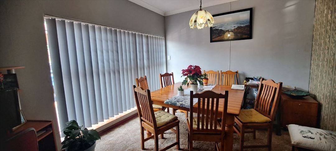 The main residence offers a practical and well-proportioned layout, including a lounge with wooden flooring and sliding doors, a dining area, and a renovated kitchen with breakfast counter, scullery, and laundry. Accommodation comprises three bedrooms, a standard bathroom, and an additional shower facility.