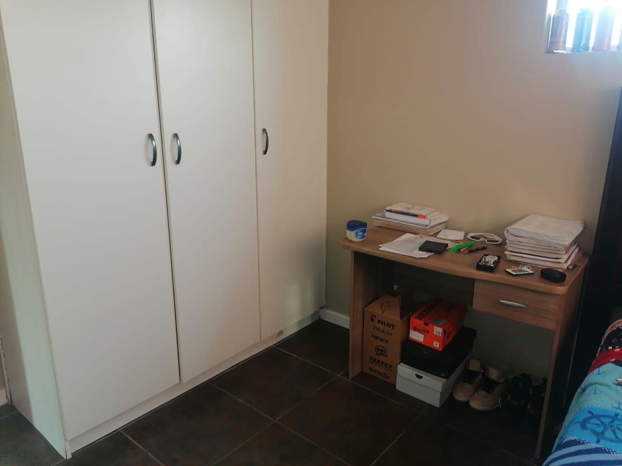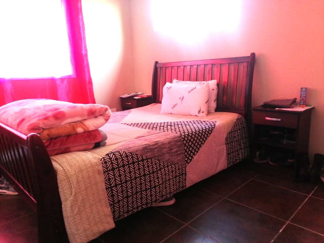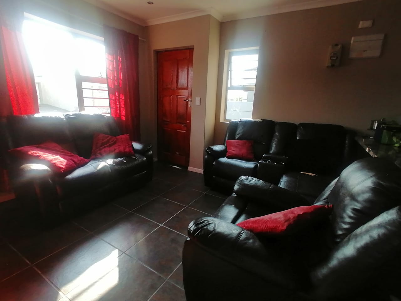 There are 3 fully tiled Bedrooms, with built-in cupboards