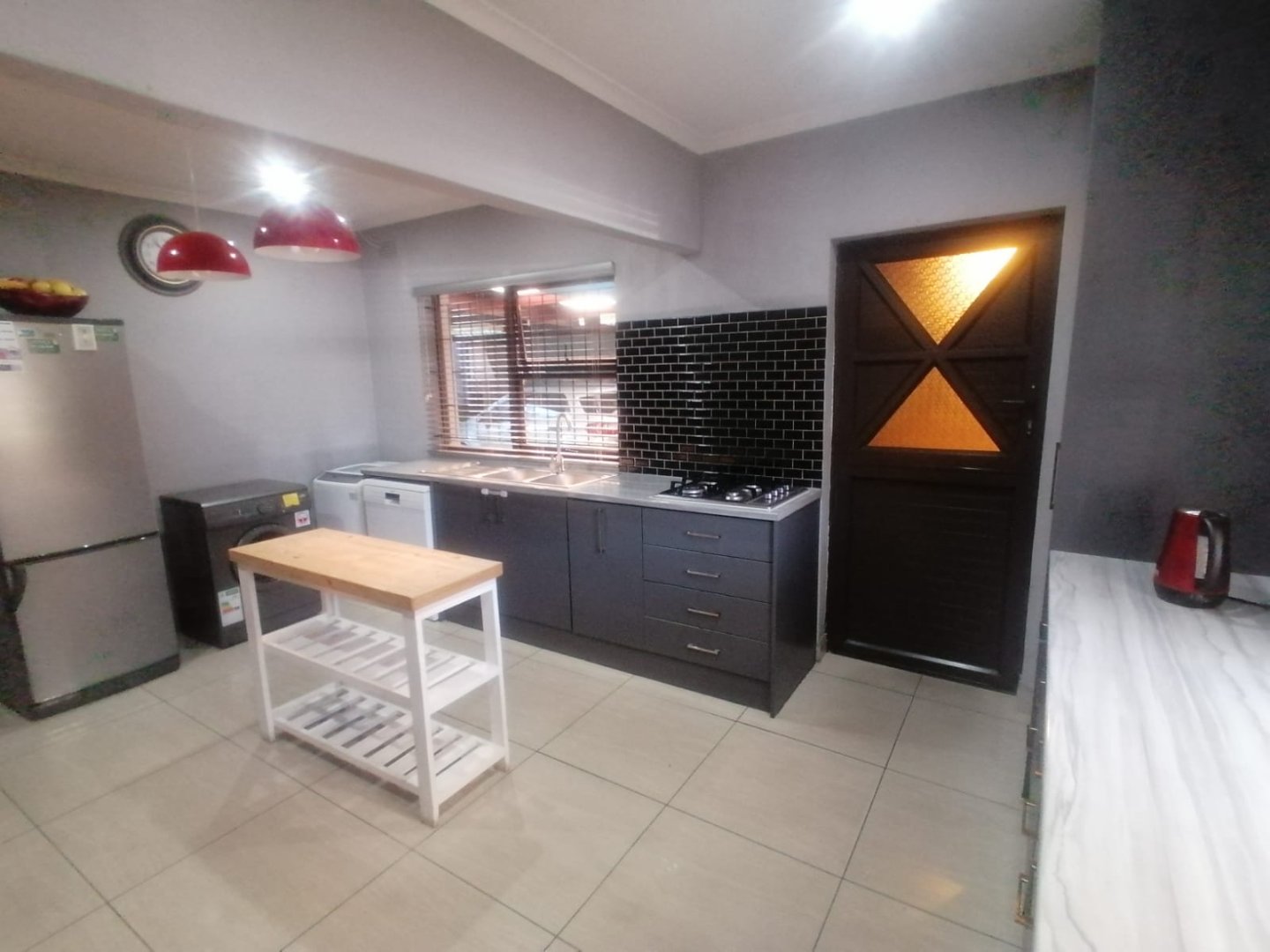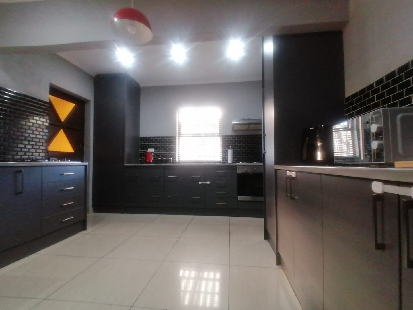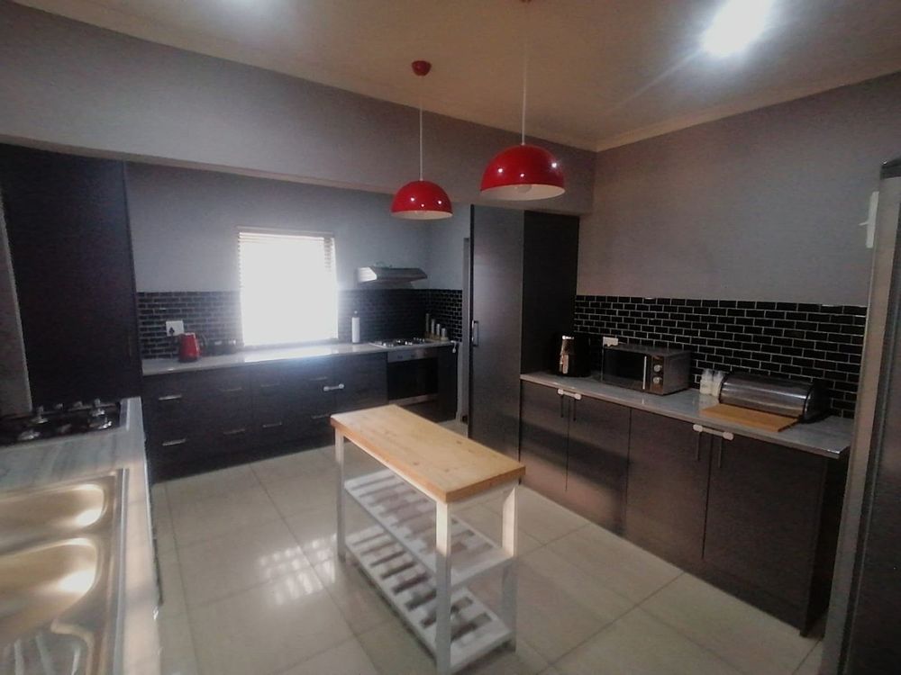 The sunny kitchen offers plenty of cupboard space, with direct access to the garage.