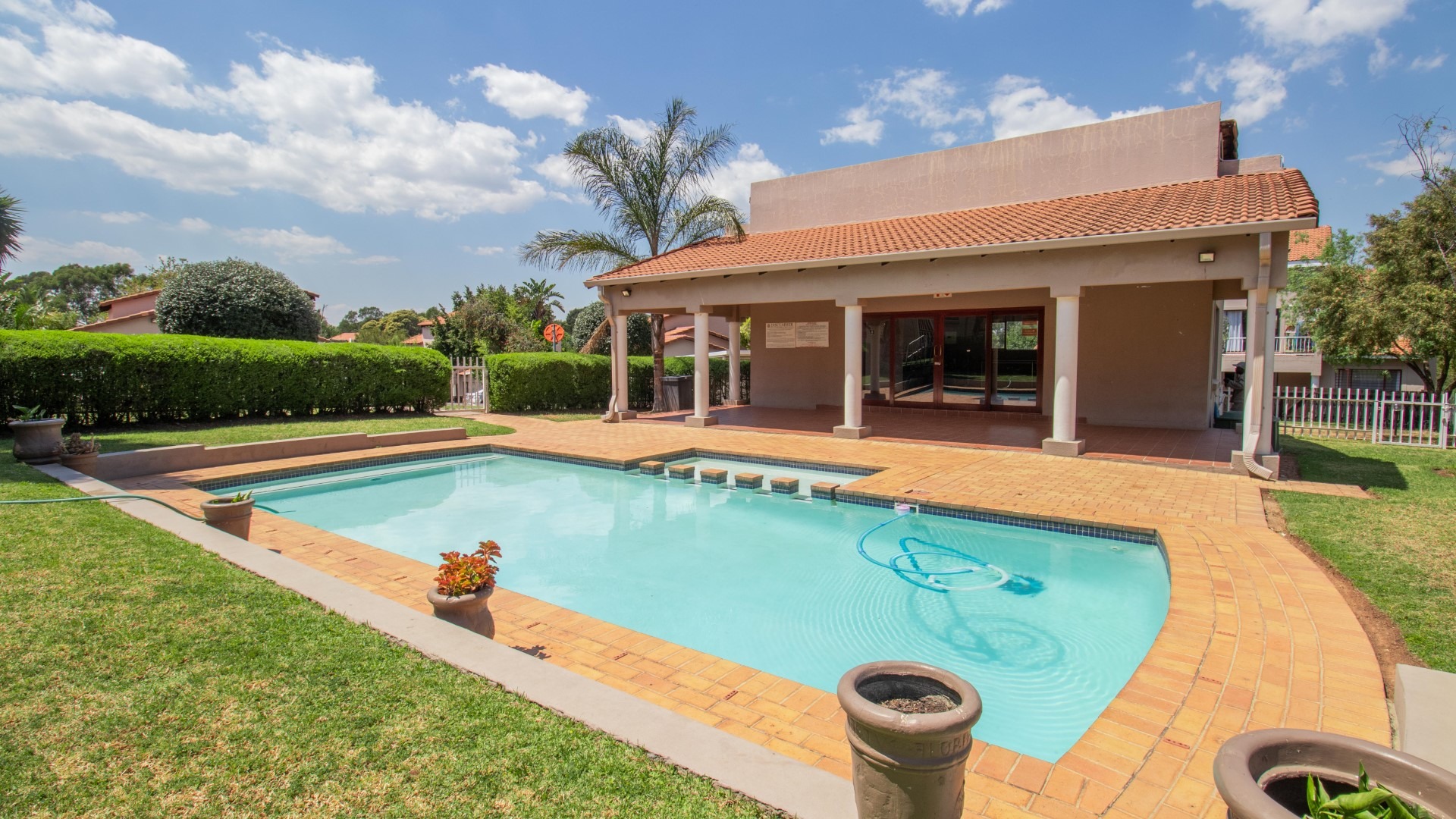 Clubhouse with a swimming pool.