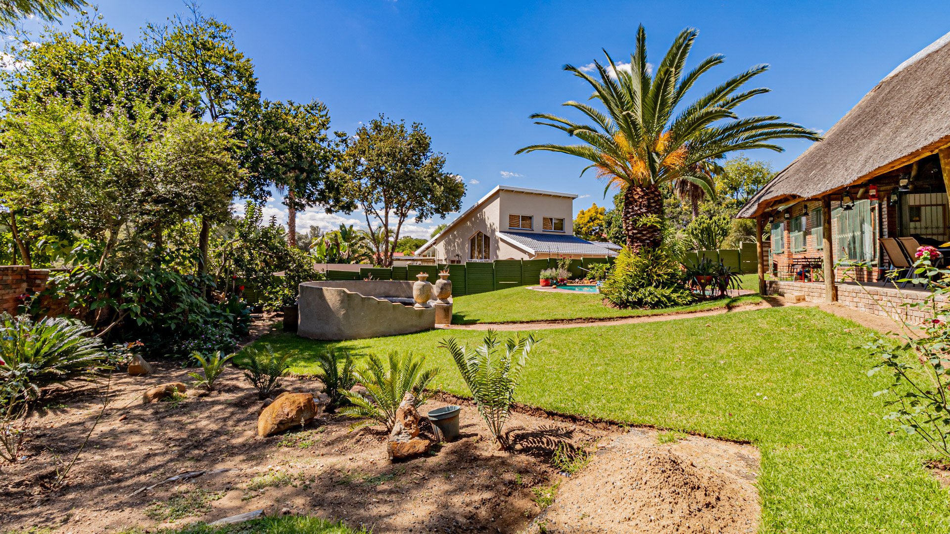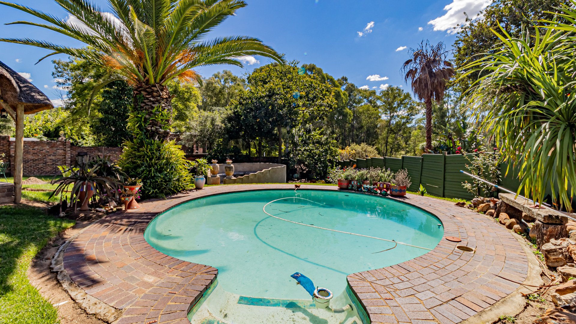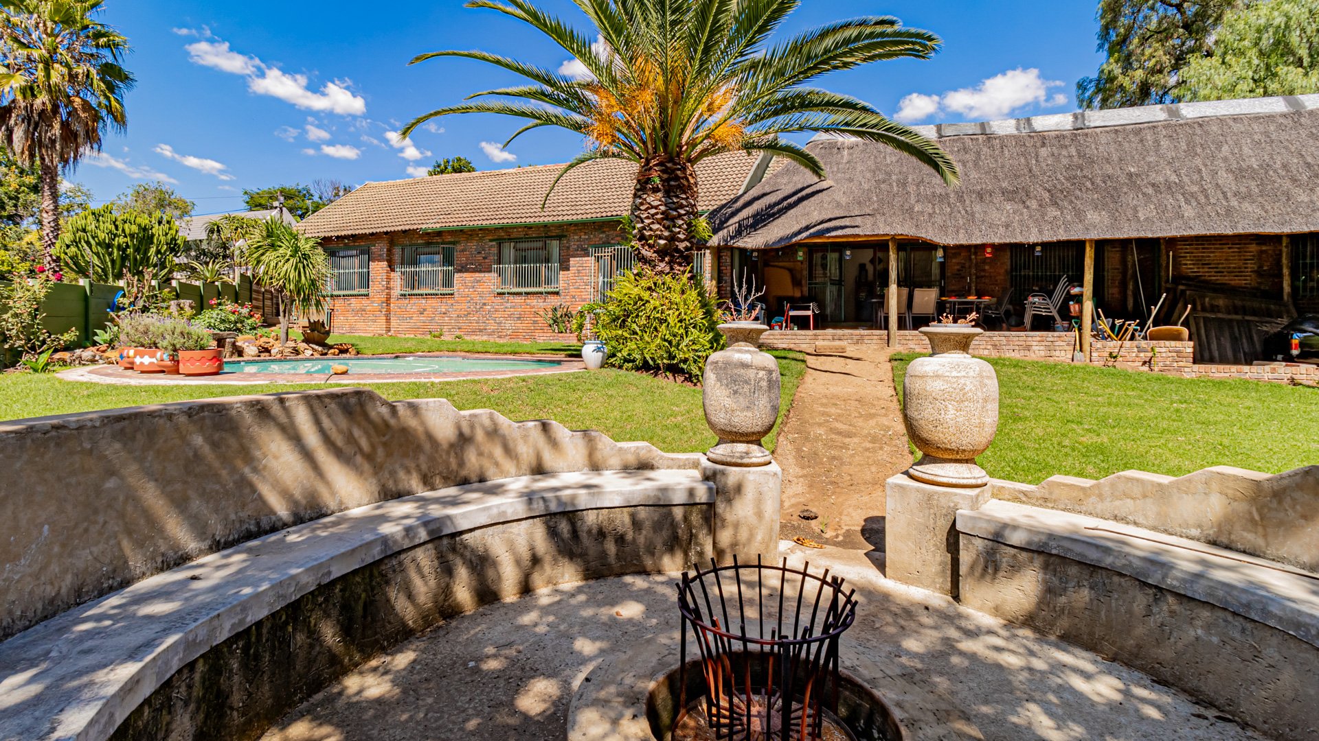 Inside, discover the cozy embrace of a sunken lounge and a second lounge/family room with a fitted dining table, perfect for intimate gatherings. Step onto the expansive thatched patio overlooking the pool and lush private garden, complete with a private conversation pit for serene moments and a dedicated fire pit area for outdoor entertaining.