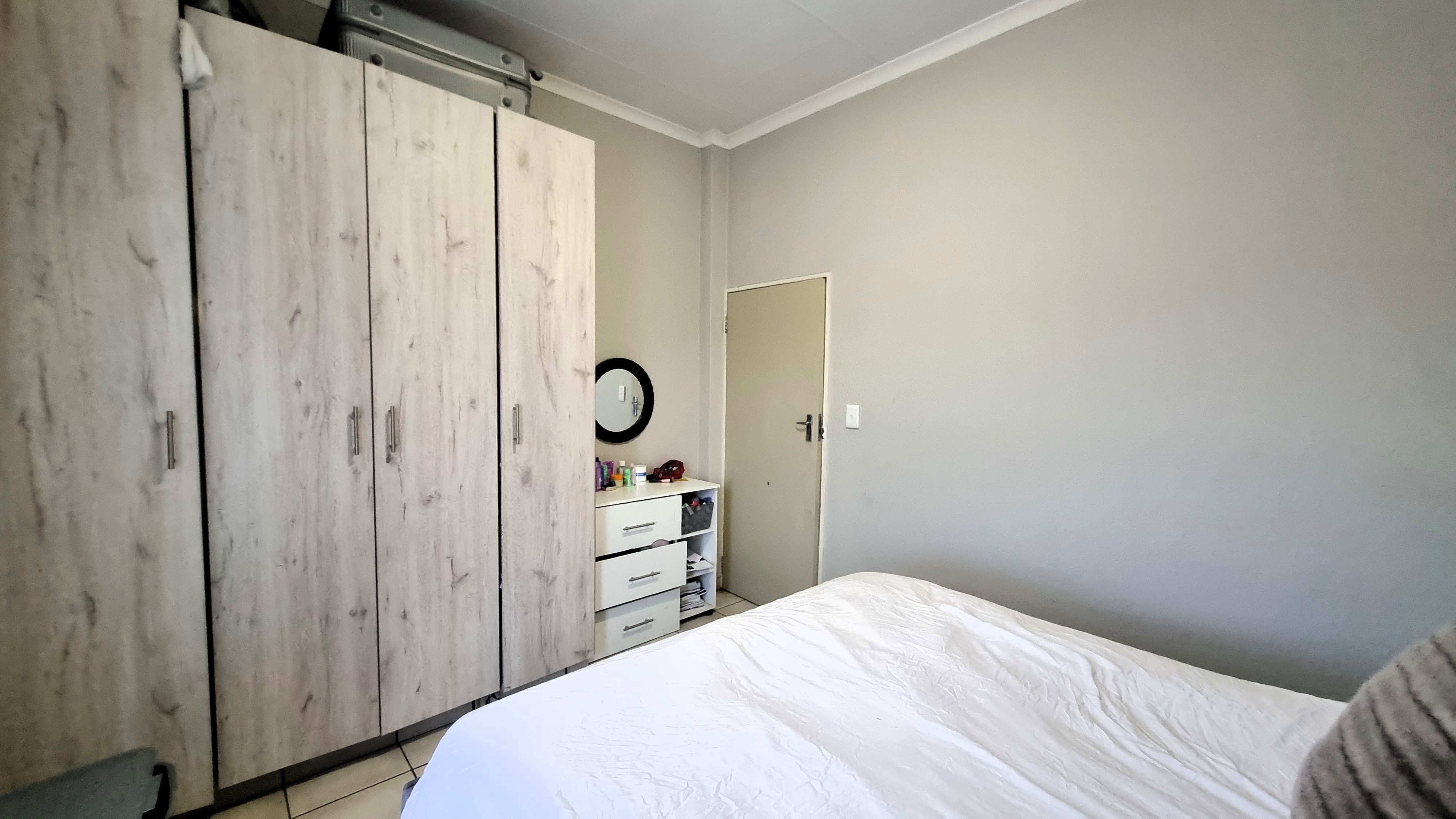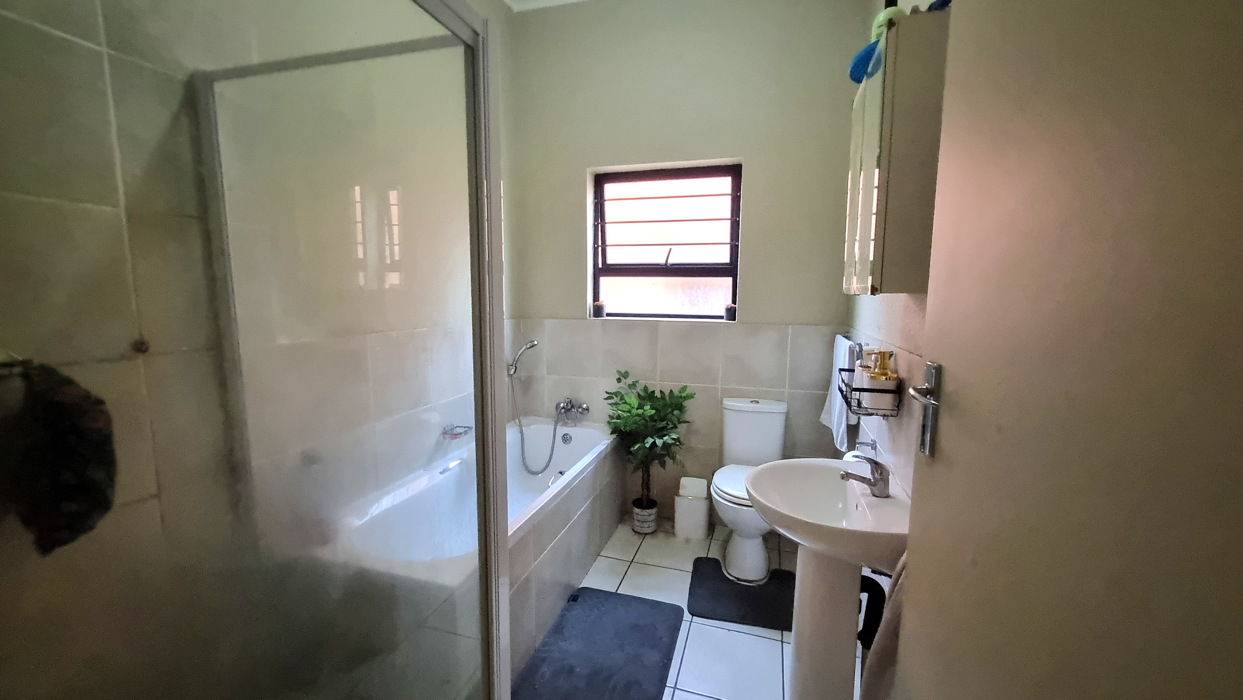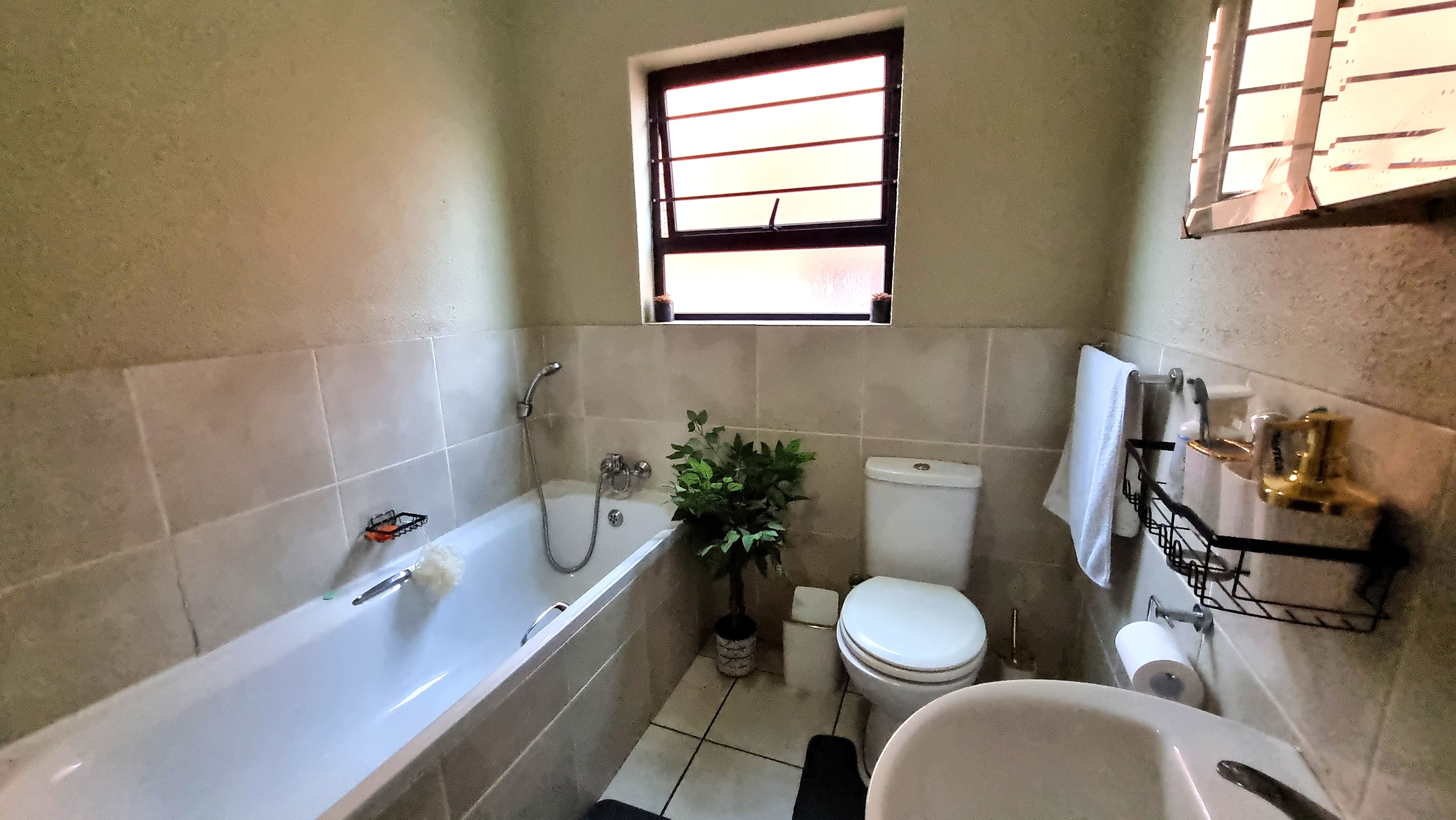 Both bedrooms feature built-in cupboards, providing ample storage and a neat, clutter-free environment. The bathroom caters to all needs, offering a combination of a bathtub and a separate shower.