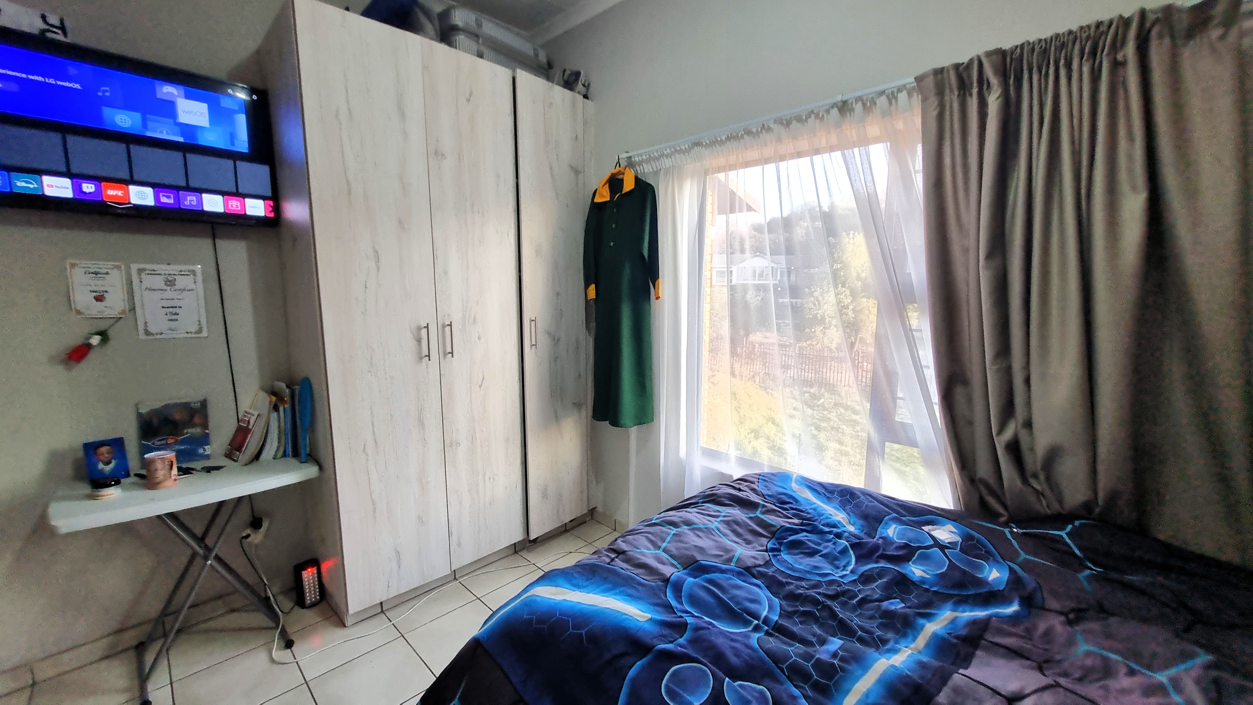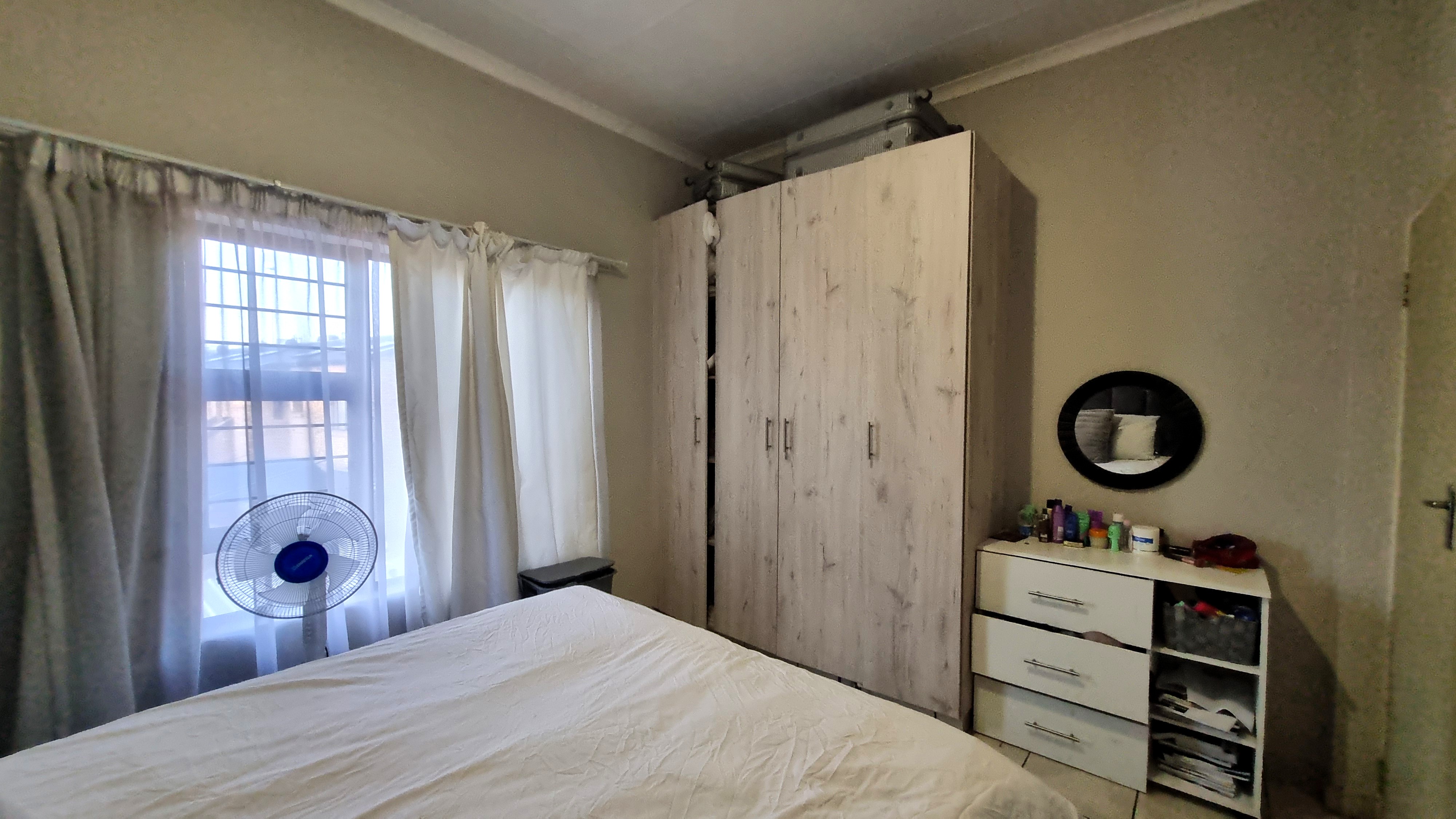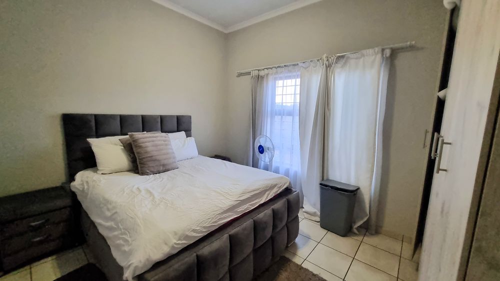 Both bedrooms feature built-in cupboards, providing ample storage and a neat, clutter-free environment. The bathroom caters to all needs, offering a combination of a bathtub and a separate shower.