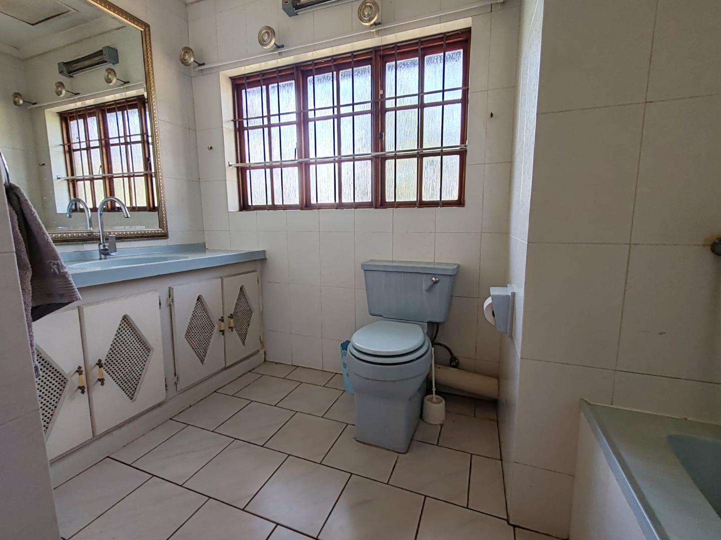 • Shared bathroom with bath, toilet, and basin