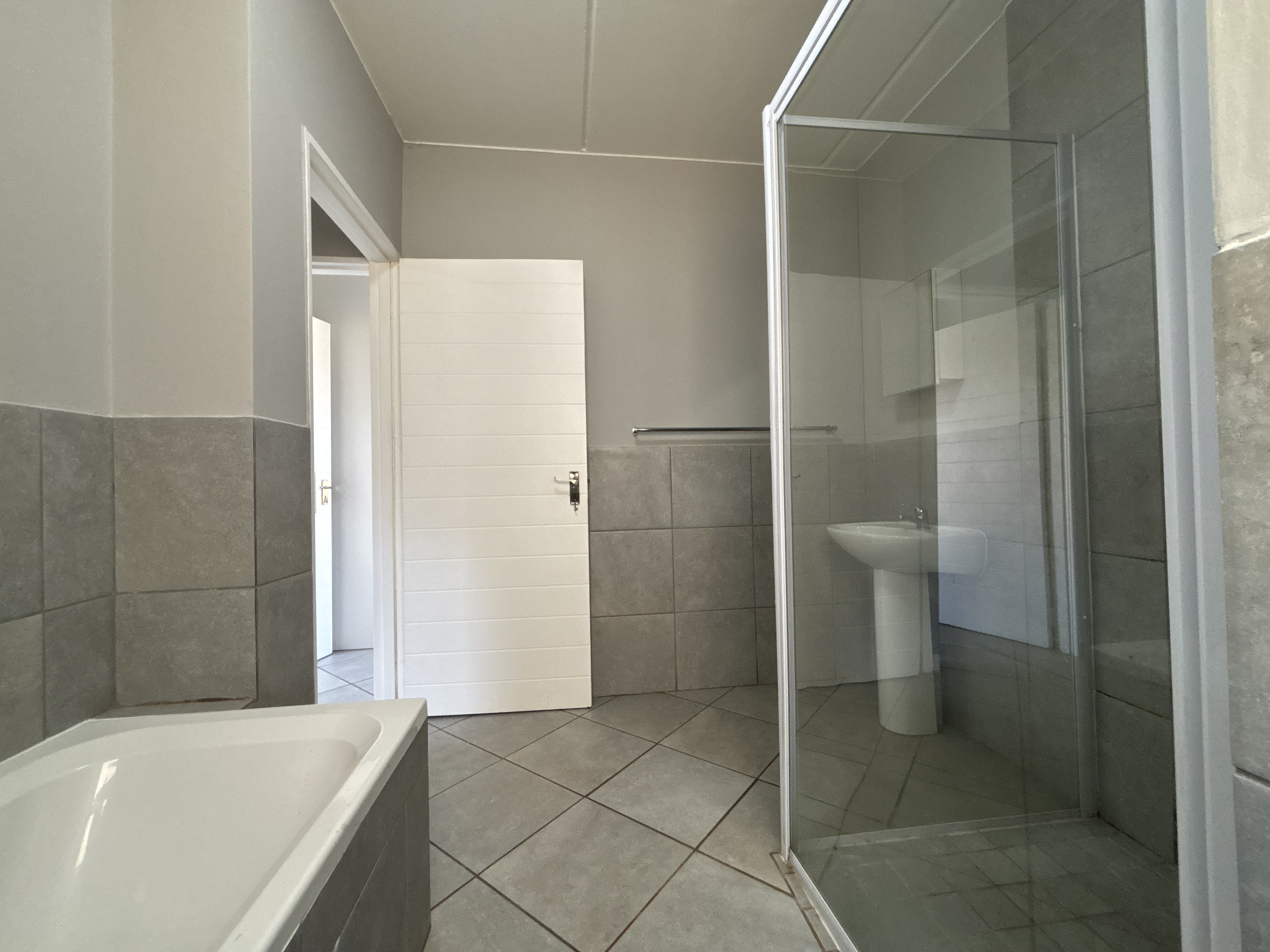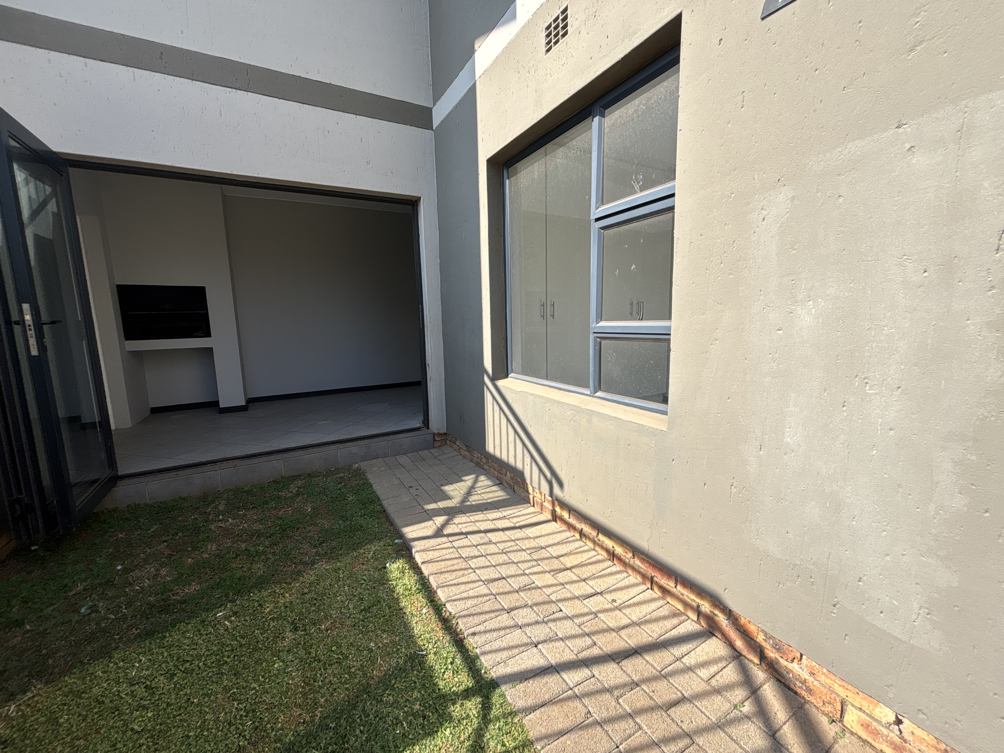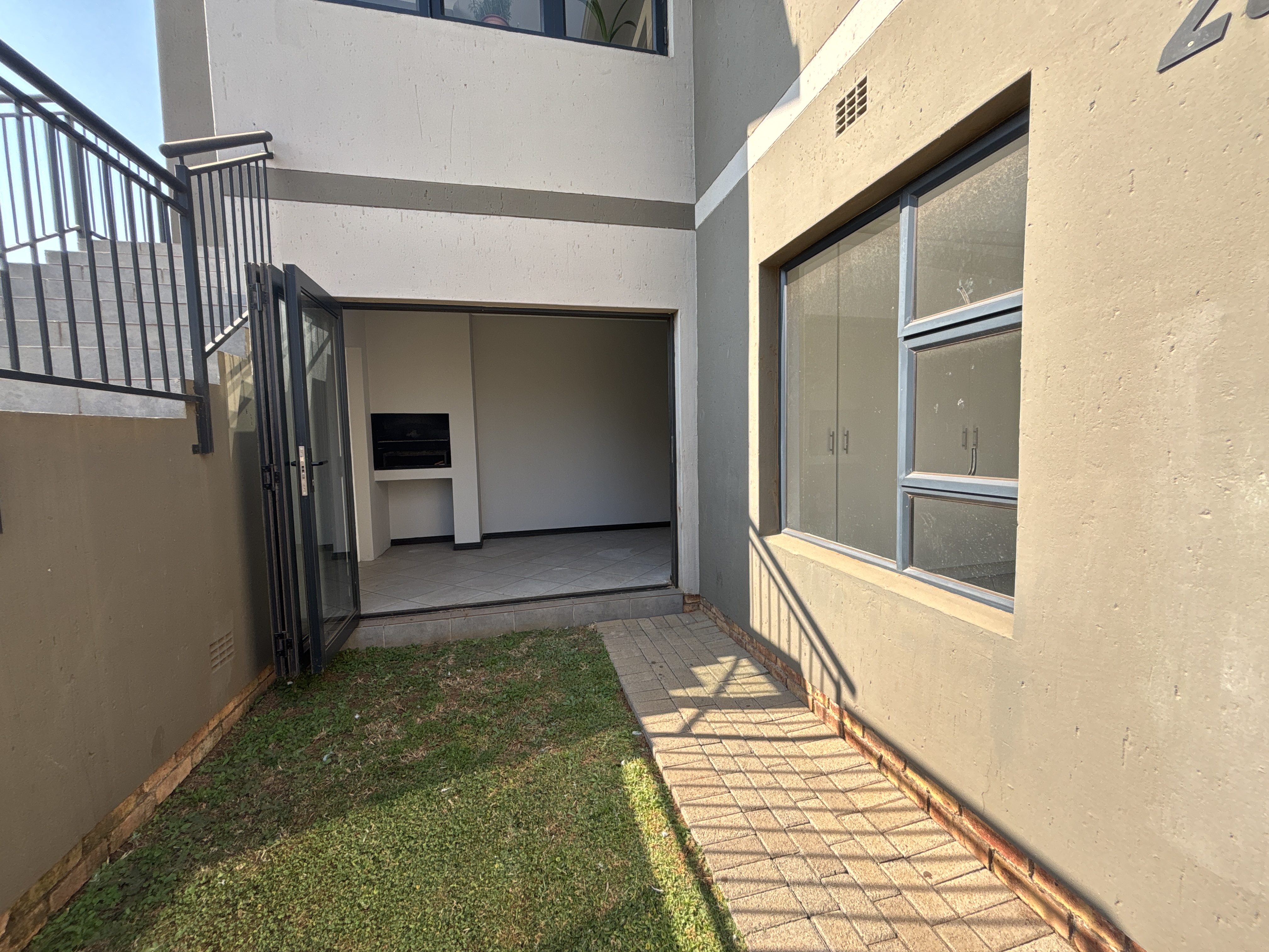 This stylish and modern ground-floor unit offers 2 spacious bedrooms and 2 bathrooms, including a main en suite. The open-plan layout flows effortlessly from the kitchen and living area onto a private, neatly manicured garden — perfect for relaxing or entertaining. Enjoy your built-in braai area, enhanced by stacker doors and a large concealed storage cupboard for added convenience.