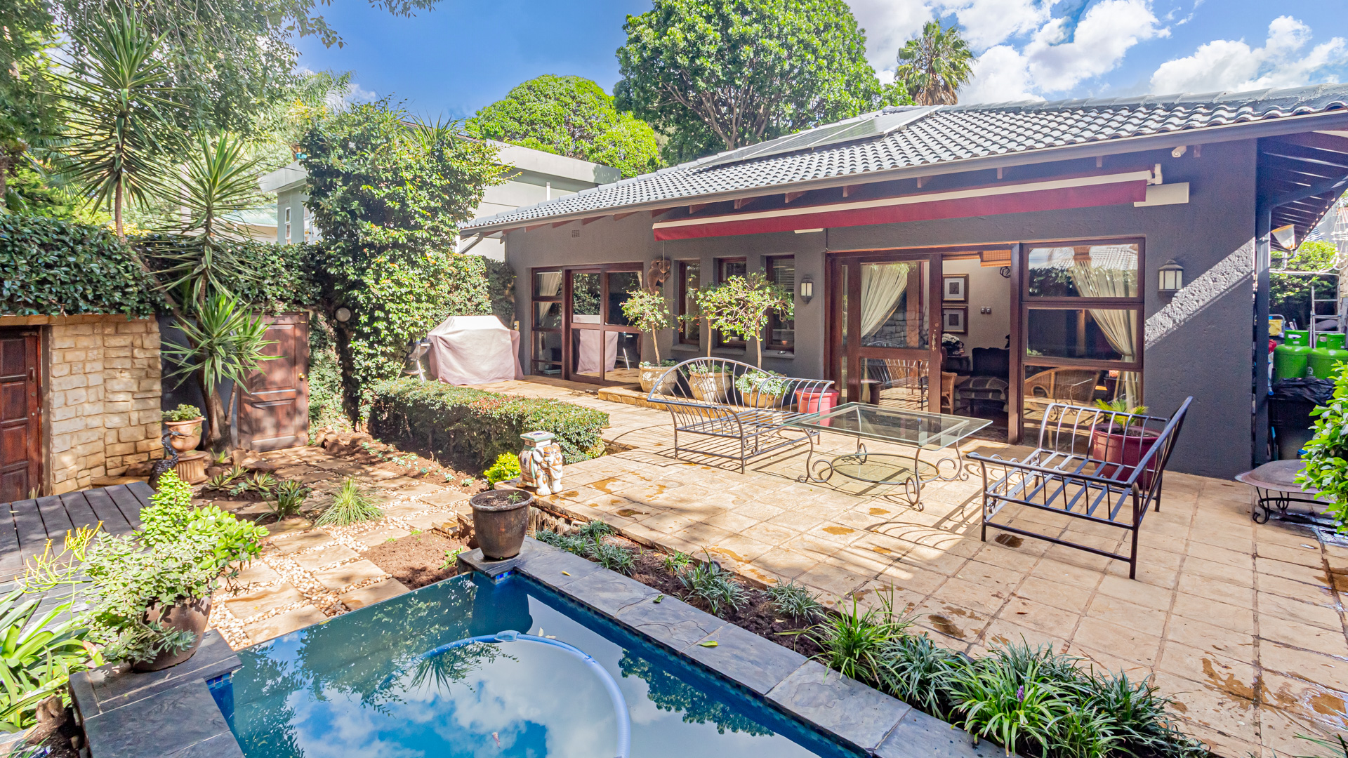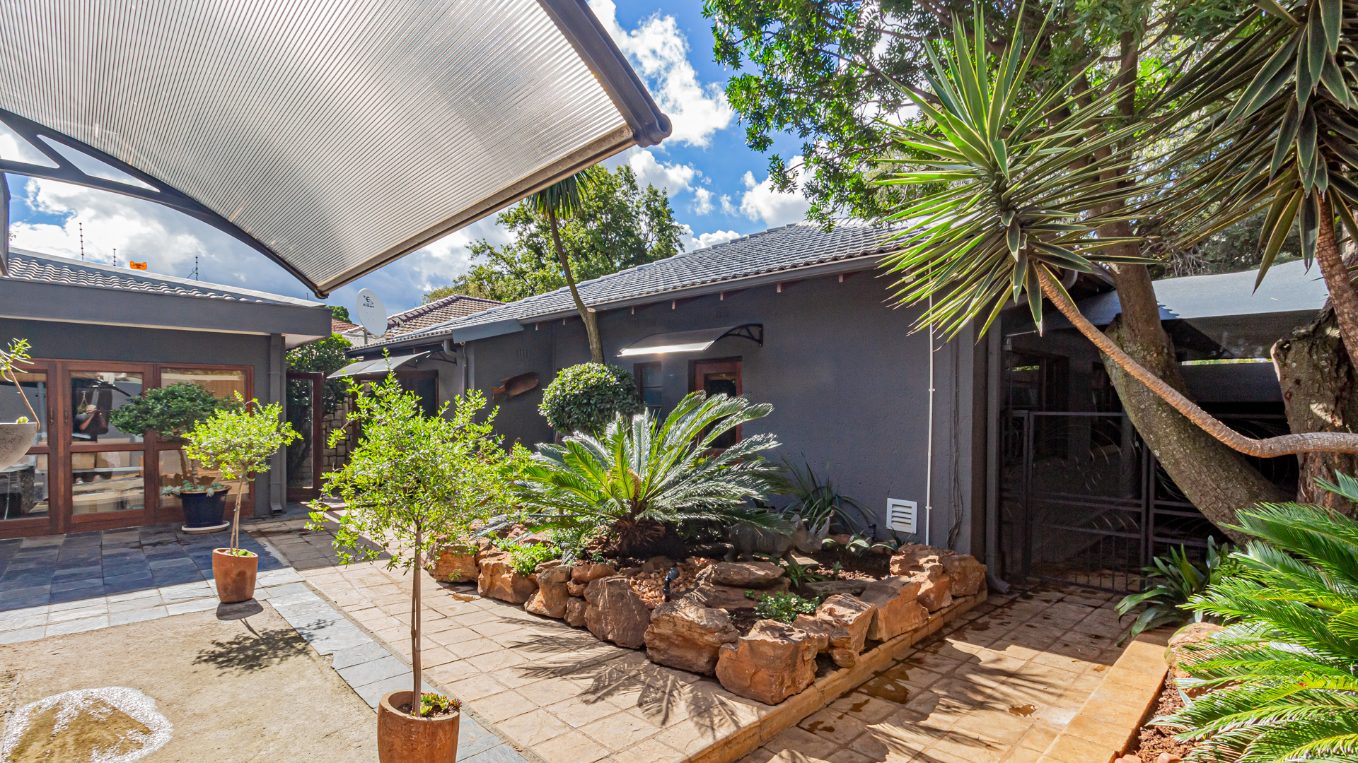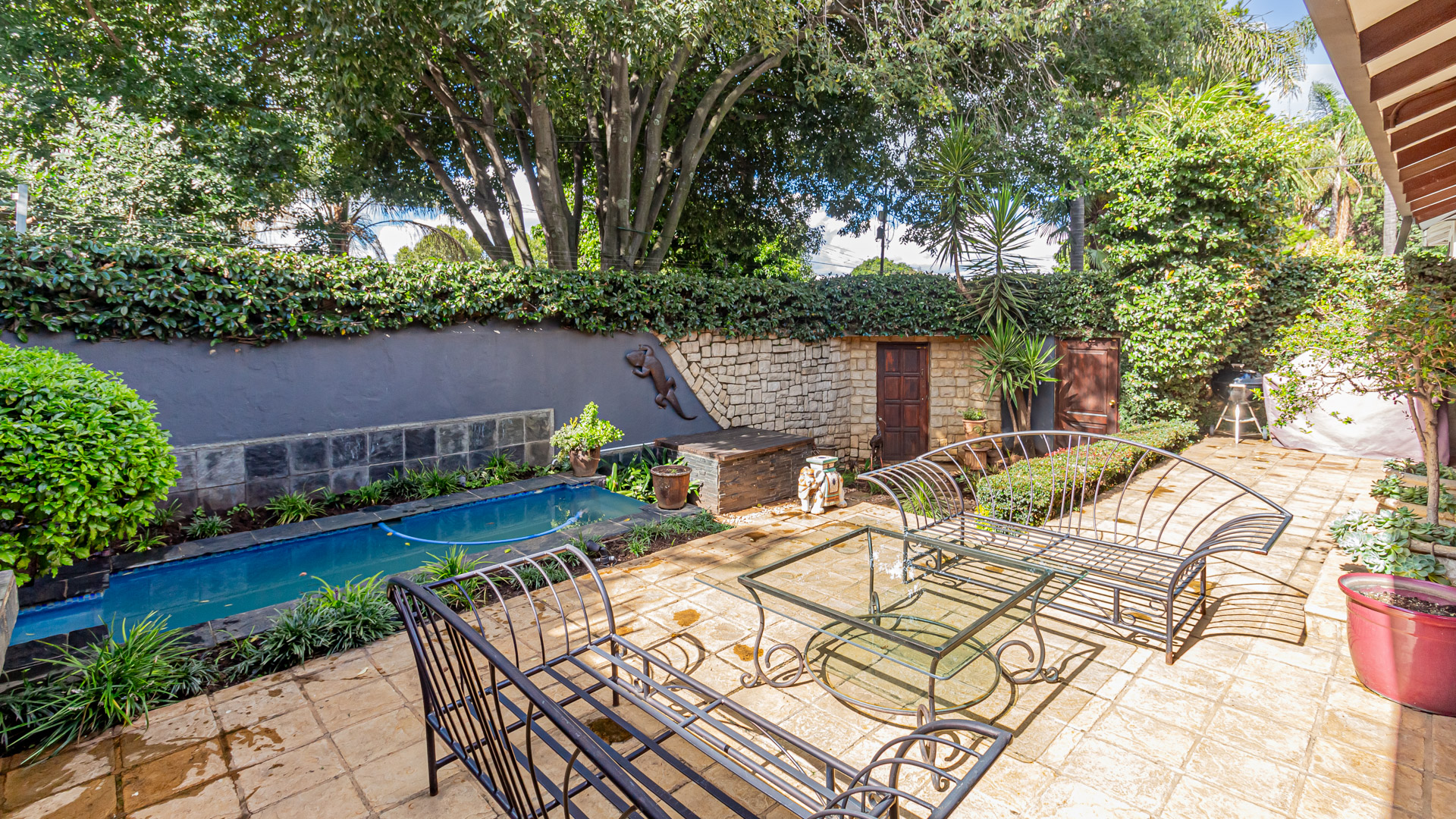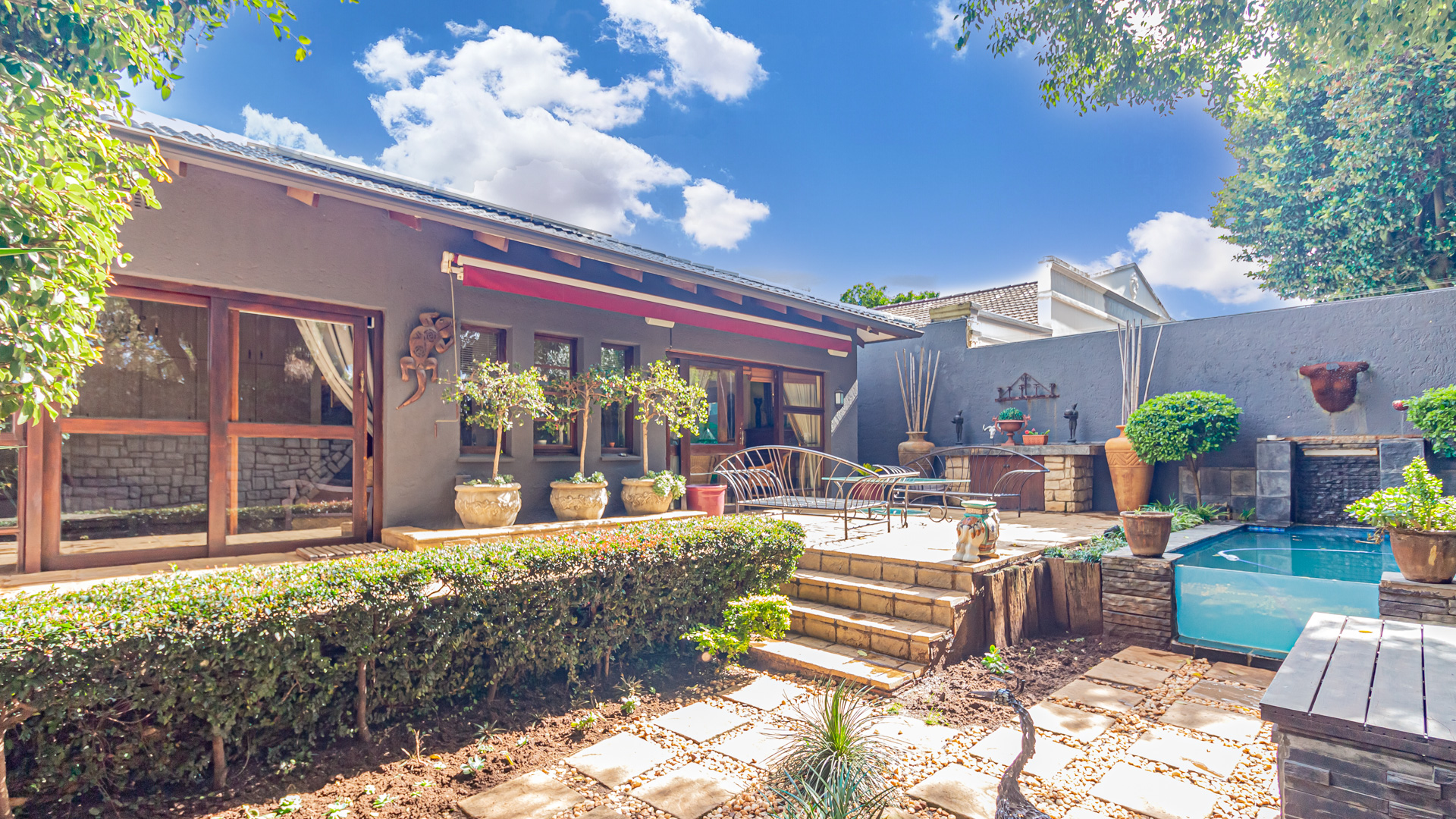The epitome of exquisite finishes and stunning extras and even more.Sophisticated open plan low maintenance home designed for easy indoor and outdoor hassle-free living with entertainment area. This magnificent property consists of 3 bedrooms,2 bath, main on suite, guest toilet, Venetian stucco wall finishes, tiled pressed ceilings. Open plan lounge dining room leading onto the patio and a plunge pool. Fully equipped kitchen with Bosch appliances. Laundry plus staff toilet. Added bonus work from home and a self-contained flatlet, main on suite.