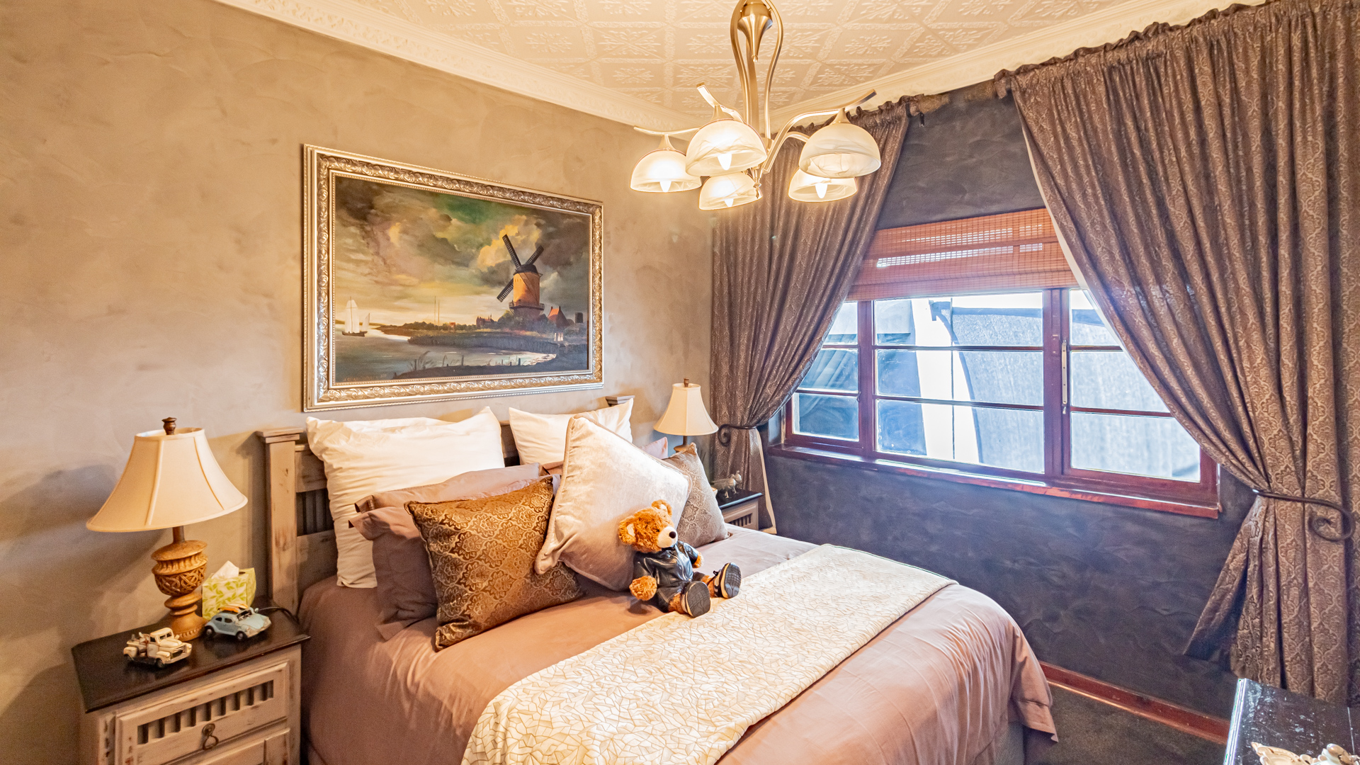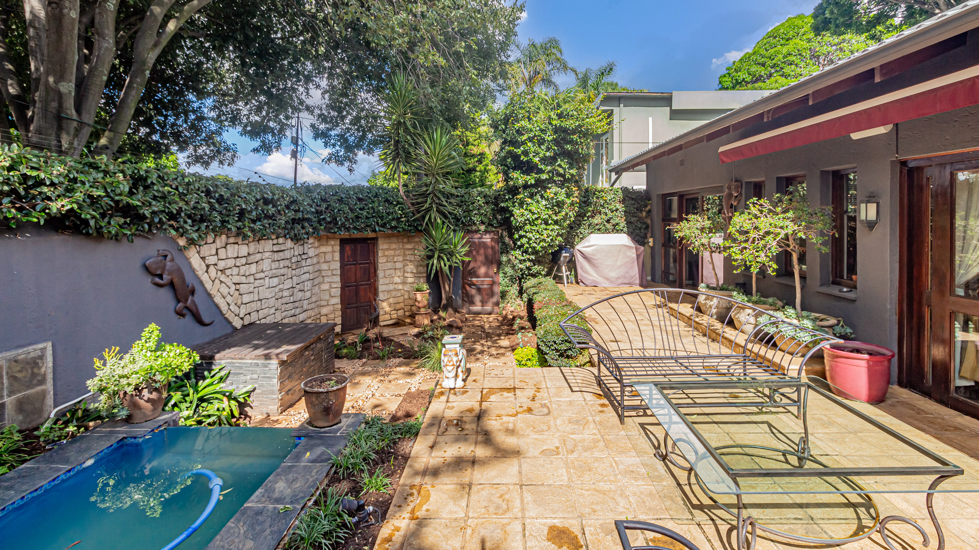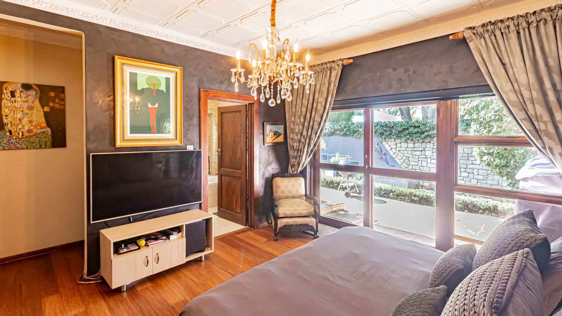 The epitome of exquisite finishes and stunning extras and even more.Sophisticated open plan low maintenance home designed for easy indoor and outdoor hassle-free living with entertainment area. This magnificent property consists of 3 bedrooms,2 bath, main on suite, guest toilet, Venetian stucco wall finishes, tiled pressed ceilings. Open plan lounge dining room leading onto the patio and a plunge pool. Fully equipped kitchen with Bosch appliances. Laundry plus staff toilet. Added bonus work from home and a self-contained flatlet, main on suite.