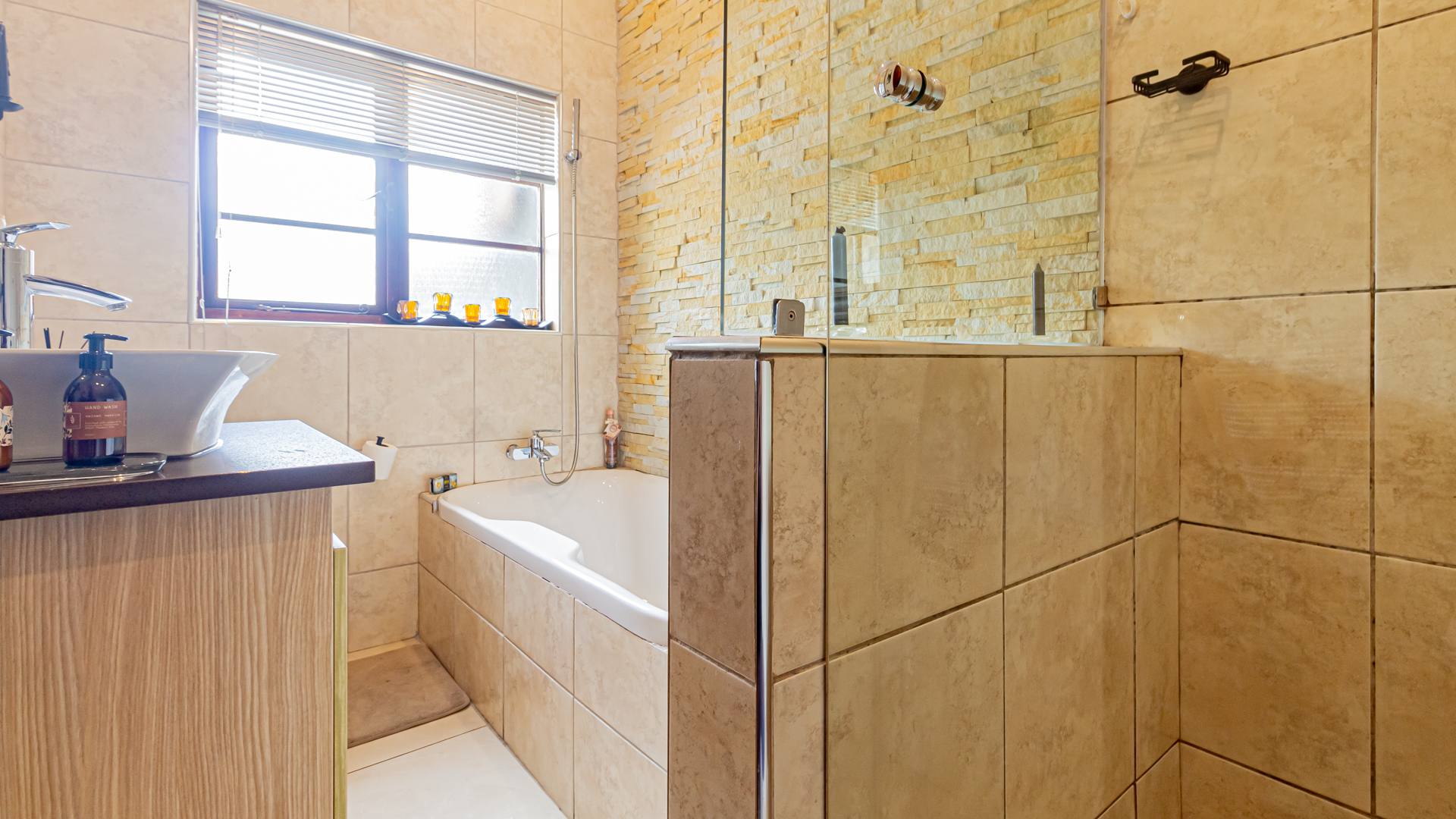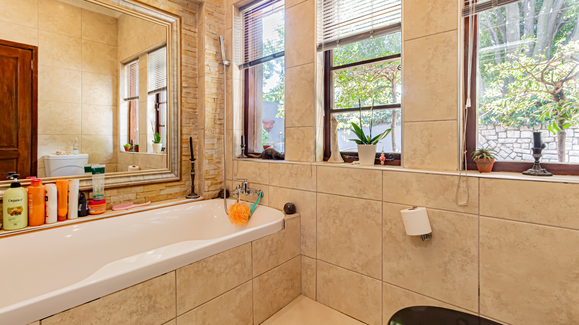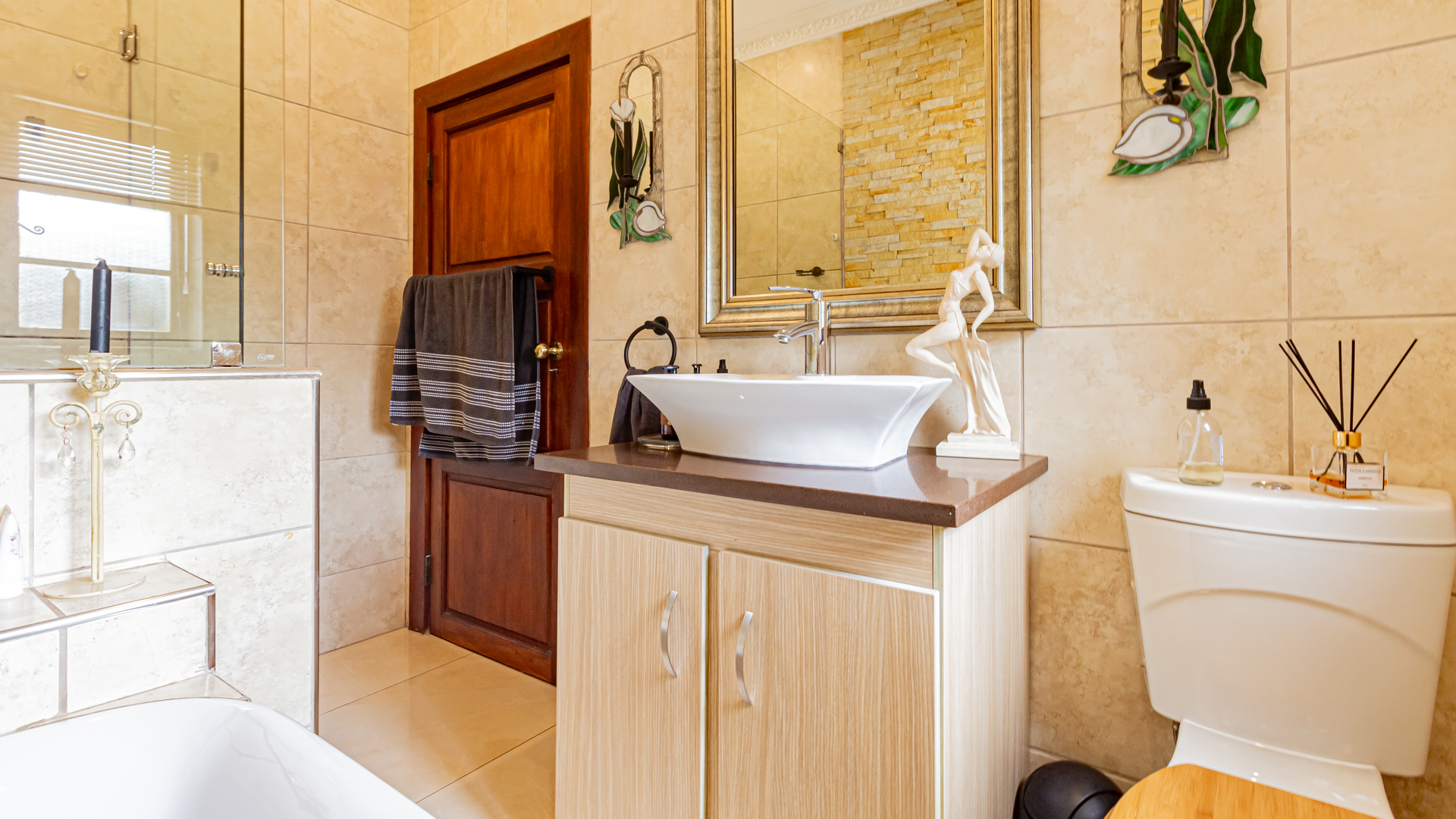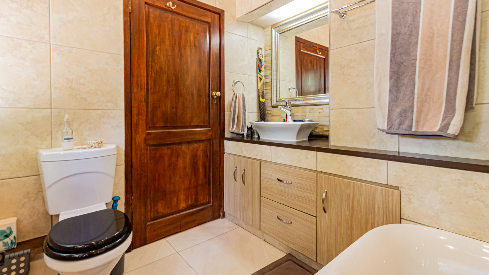 The epitome of exquisite finishes and stunning extras and even more.Sophisticated open plan low maintenance home designed for easy indoor and outdoor hassle-free living with entertainment area. This magnificent property consists of 3 bedrooms,2 bath, main on suite, guest toilet, Venetian stucco wall finishes, tiled pressed ceilings. Open plan lounge dining room leading onto the patio and a plunge pool. Fully equipped kitchen with Bosch appliances. Laundry plus staff toilet. Added bonus work from home and a self-contained flatlet, main on suite.