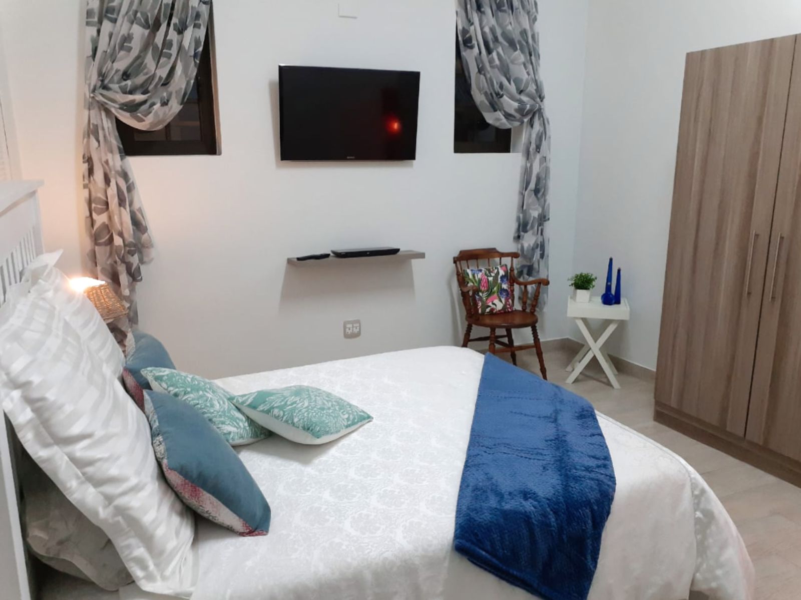 The main bedroom, privately positioned off the living area, offers peaceful green views and a full en-suite bathroom, creating a relaxing retreat.