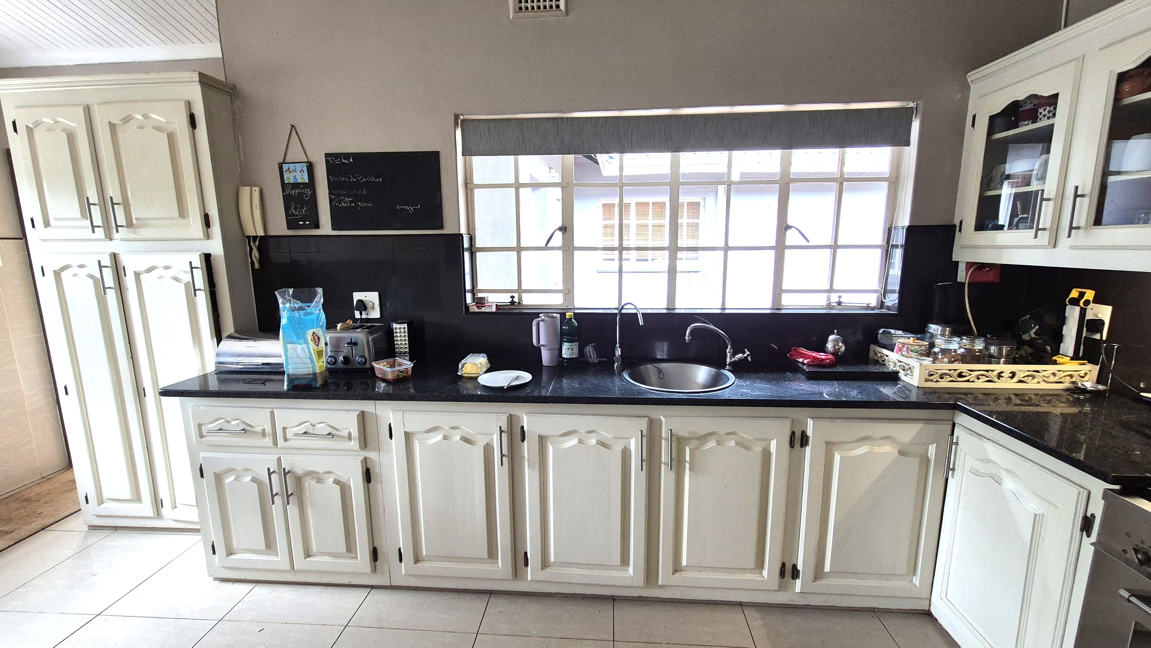 The dining room is designed for proper gatherings and flows easily into a well-appointed kitchen. Granite countertops, generous cupboard space, a large gas stove with extractor fan, and a separate laundry area make this kitchen both practical and inviting. There is direct access from the laundry into the garage, adding everyday convenience.