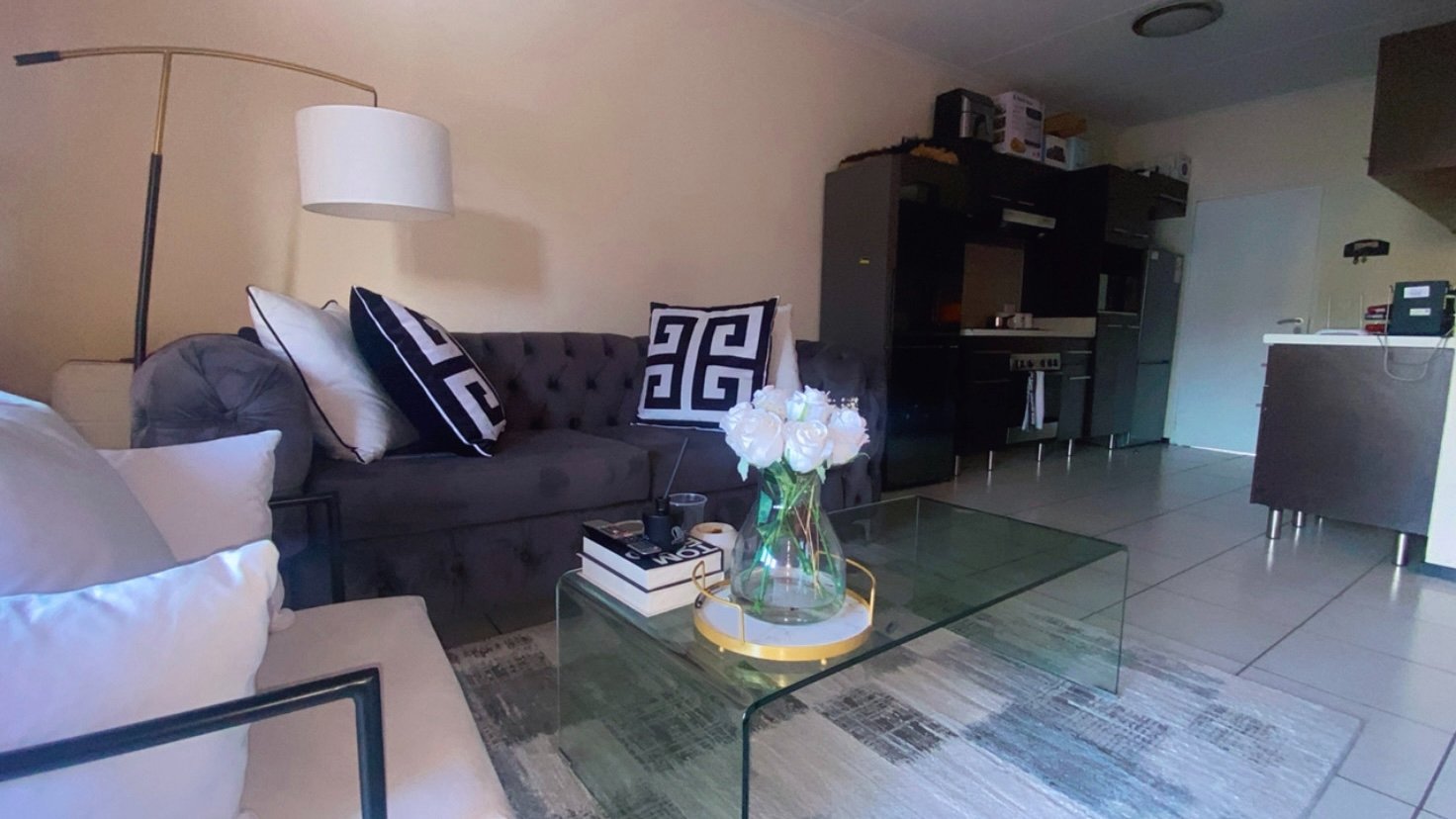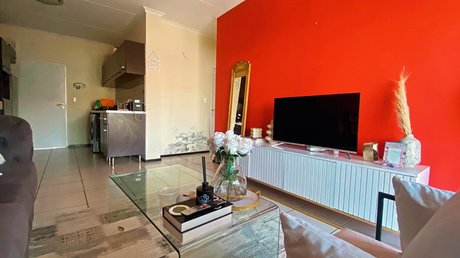 This stunning 2 bedroom, 1 bathroom apartment, perfectly situated in a secure estate with 24-hour security and picturesque views is perfect for first-time home buyers, people looking to downscale or eager investors. This apartment offers the perfect blend of comfort, security, and lifestyle. As you enter the unit you will be welcomed by a spacious kitchen with ample cupboard space, space for 3 appliances, and a stove with oven and hob allowing for your chef talents to be explored. Flowing from the kitchen is a bright and airy lounge area flowing out onto a private balcony, perfect for relaxation and entertainment.