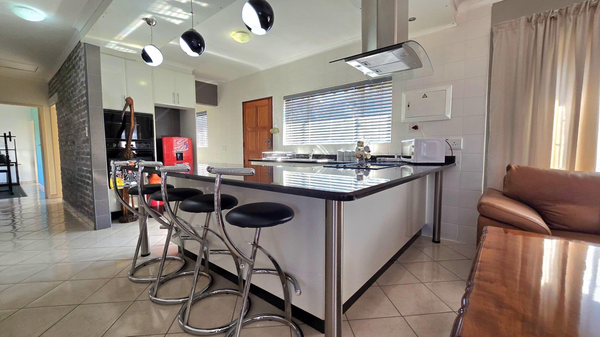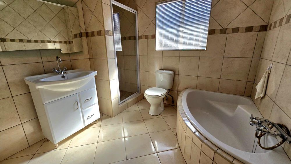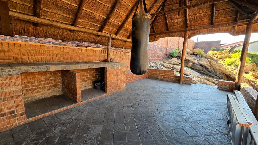 An automated gate ensures security with electric fence, while the large lapa is perfect for hosting gatherings. The beautifully maintained garden offers a serene escape from the hustle and bustle of daily life, also offering domestic quarters with toilet.