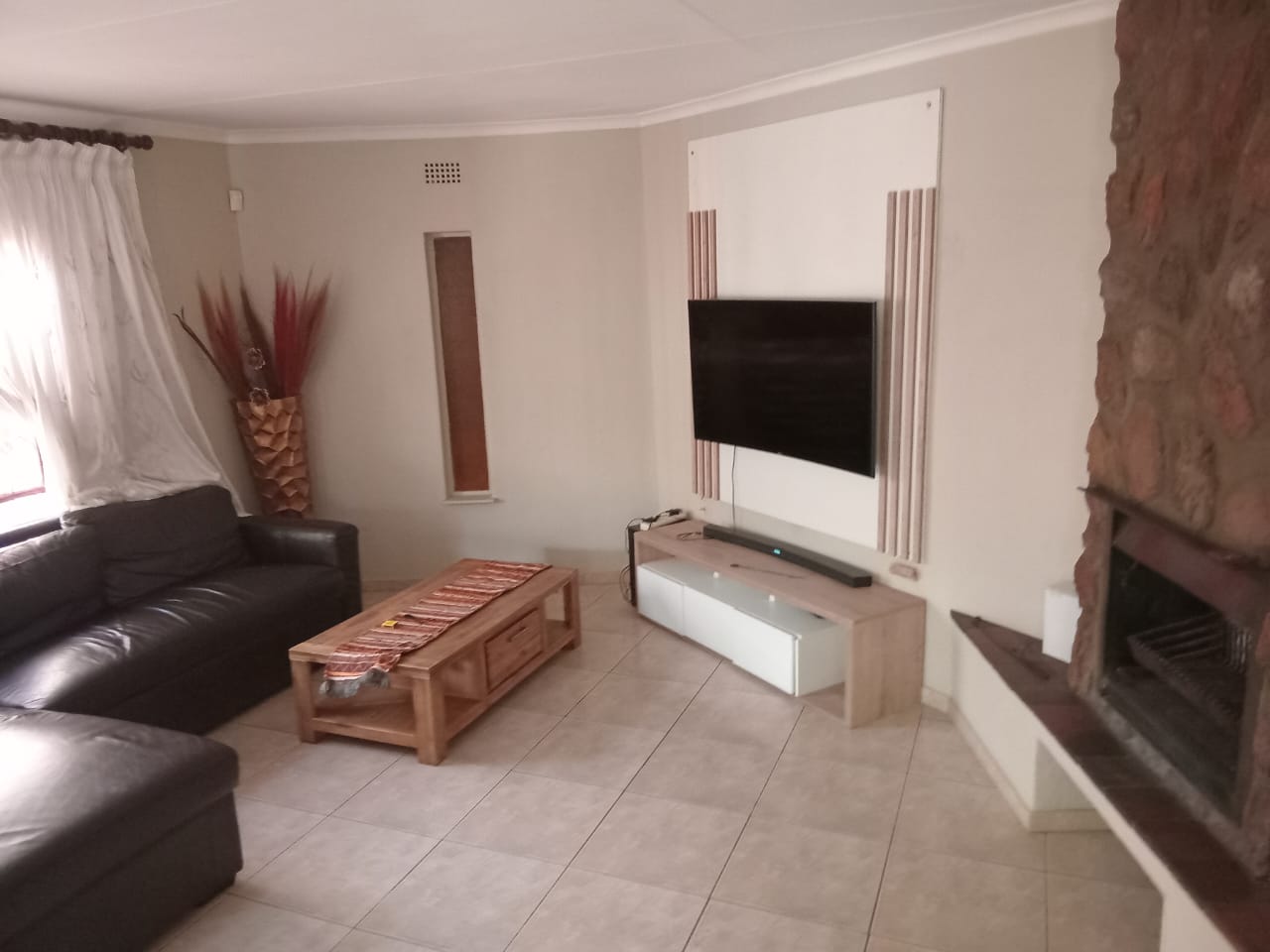 1x Private TV room with a wooden fire place