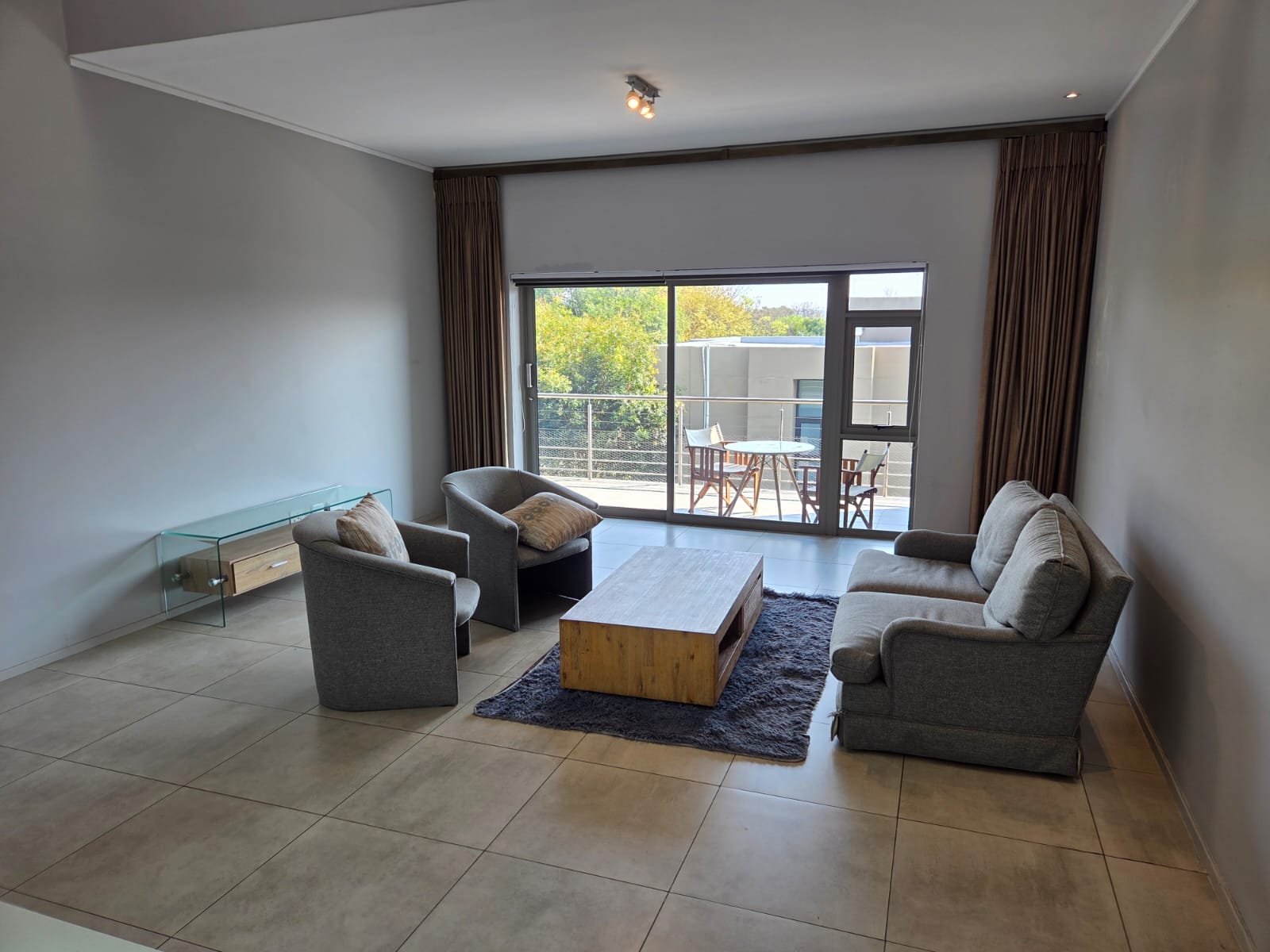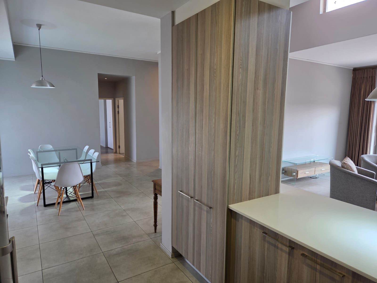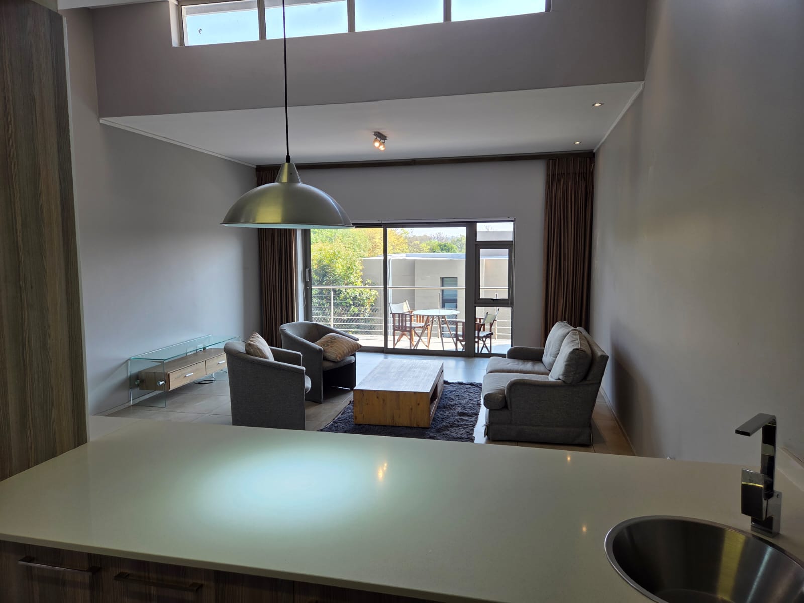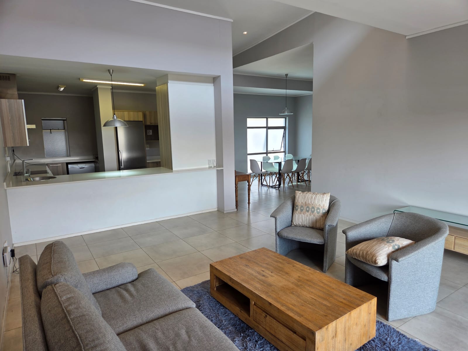 This FULLY furnished, top floor unit features high ceilings in the open plan living area (kitchen, dining room & lounge), a large covered balcony runs the length of the lounge and one of the bedrooms. There is a well thought out kitchen, two en-suite full bathrooms, plenty cupboard in the bedrooms and a guest bathroom to round it off. Two of the bedrooms have laminated floors and the main bedroom has luscious carpets.