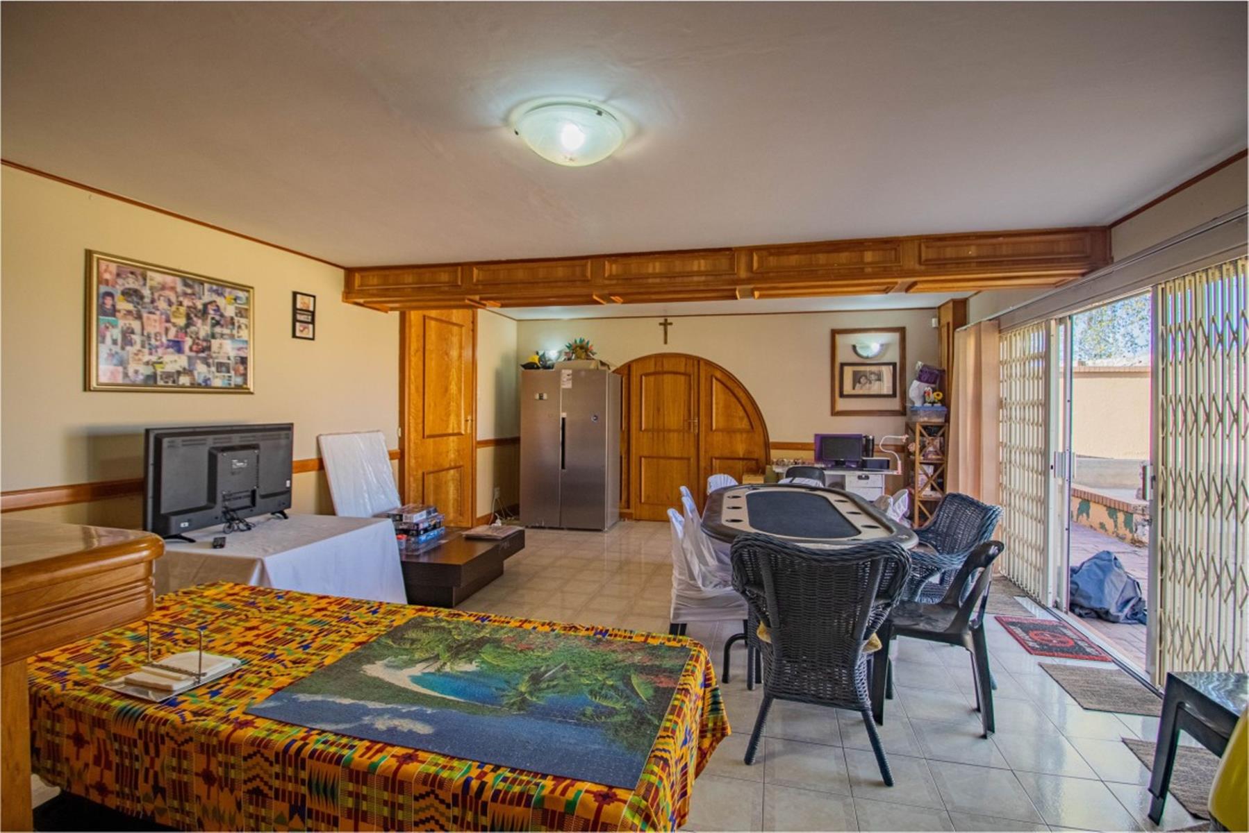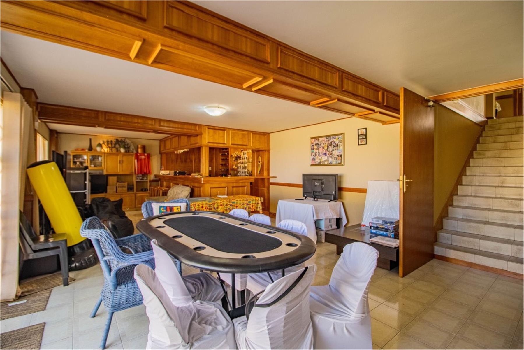 Entertainment is at the heart of this property, boasting a pub area, a large built-in braai, and a charming fire pit — ideal for hosting friends and family. The property offers plenty of outdoor extras including a braai area and ample parking, supported by a double garage and additional parking space.