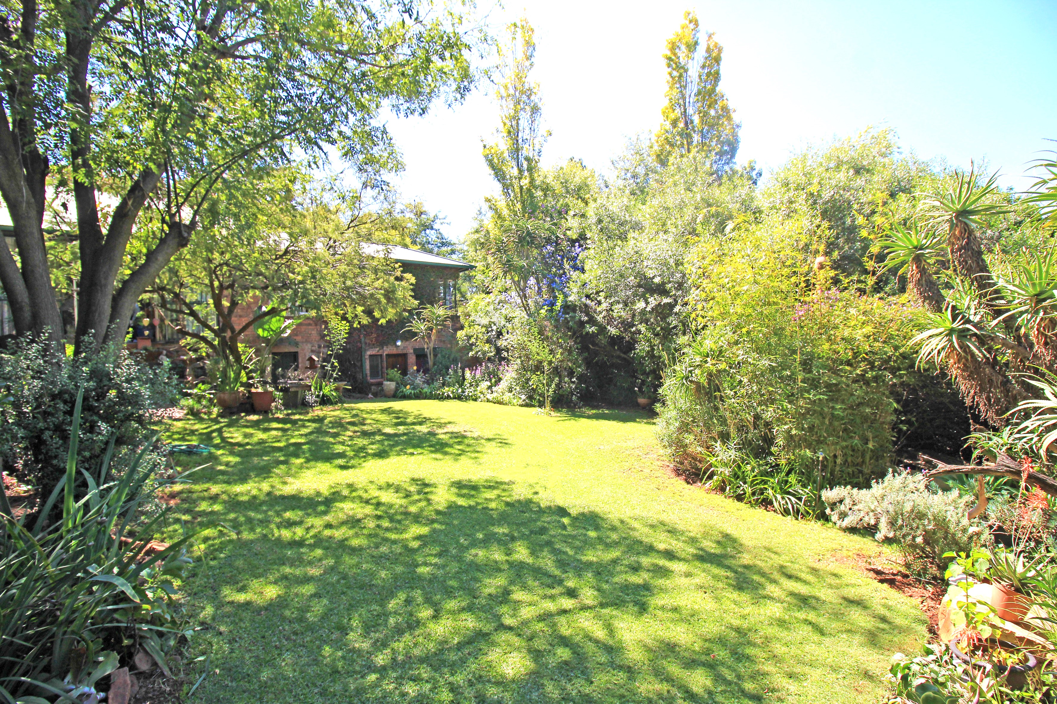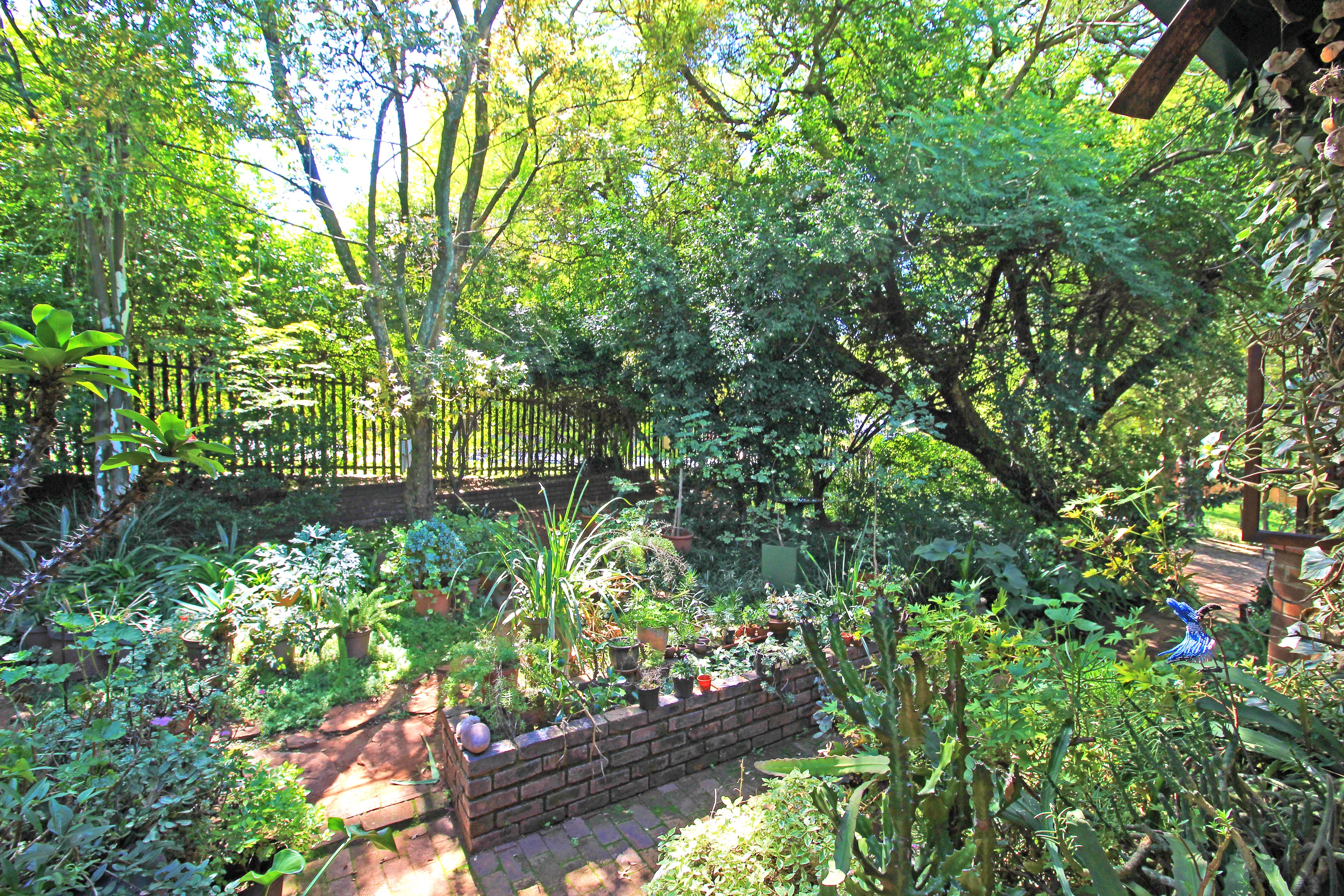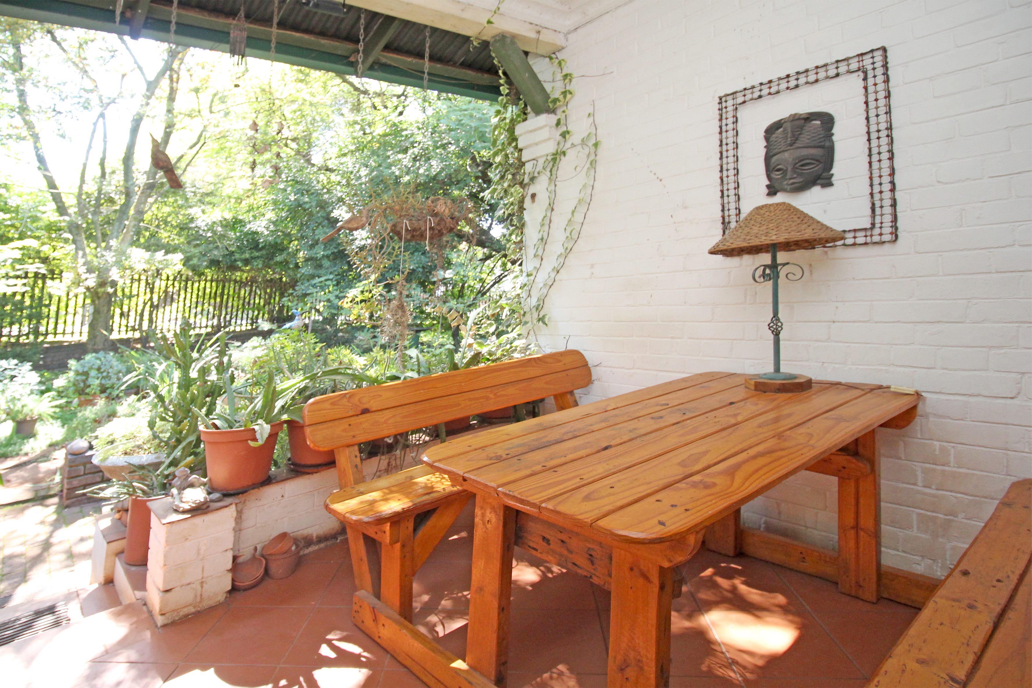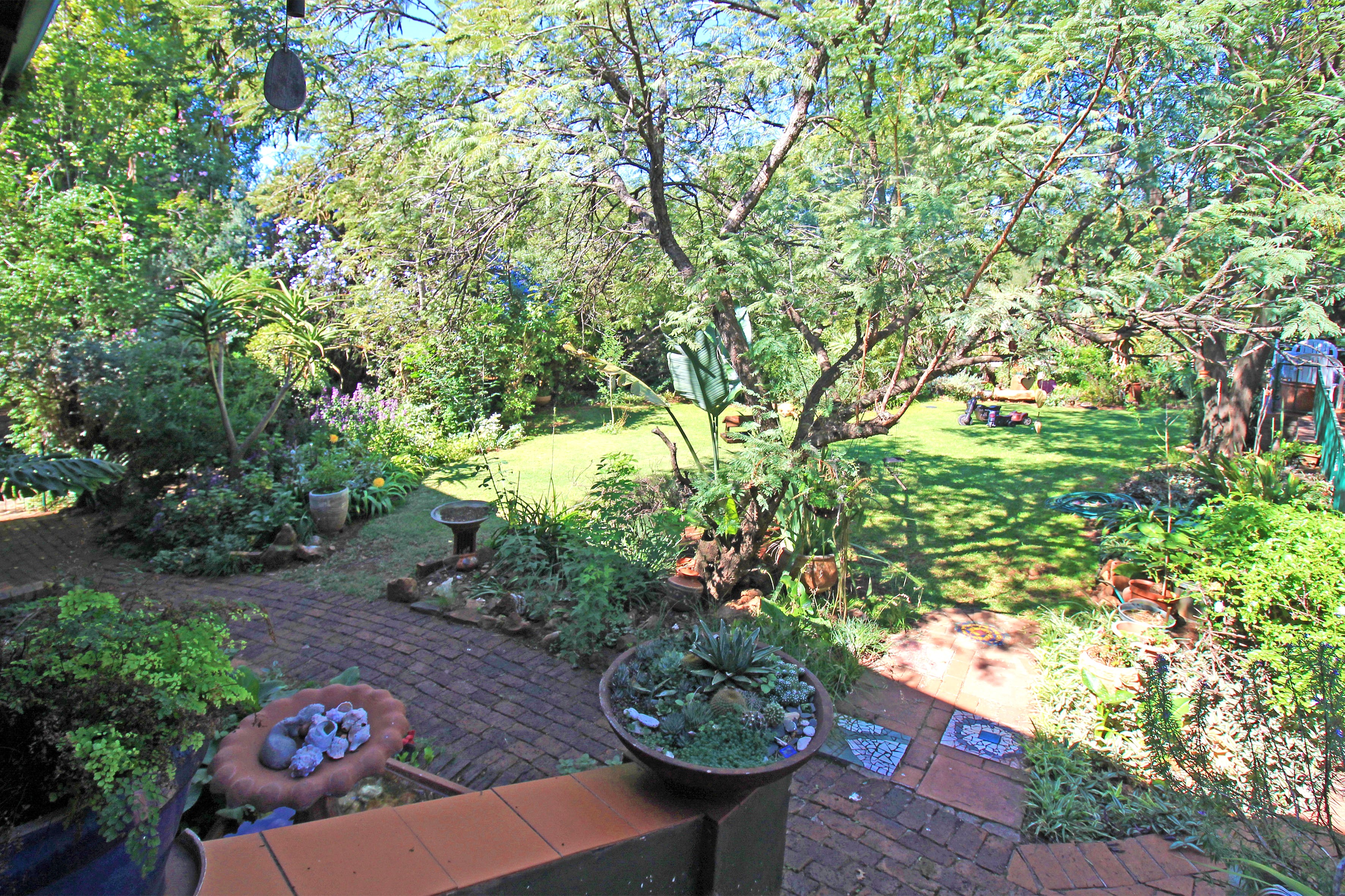 The vast garden offers a boma/fire-pit, vegetable garden, sitting/relaxing nooks and also provides a haven for pets.