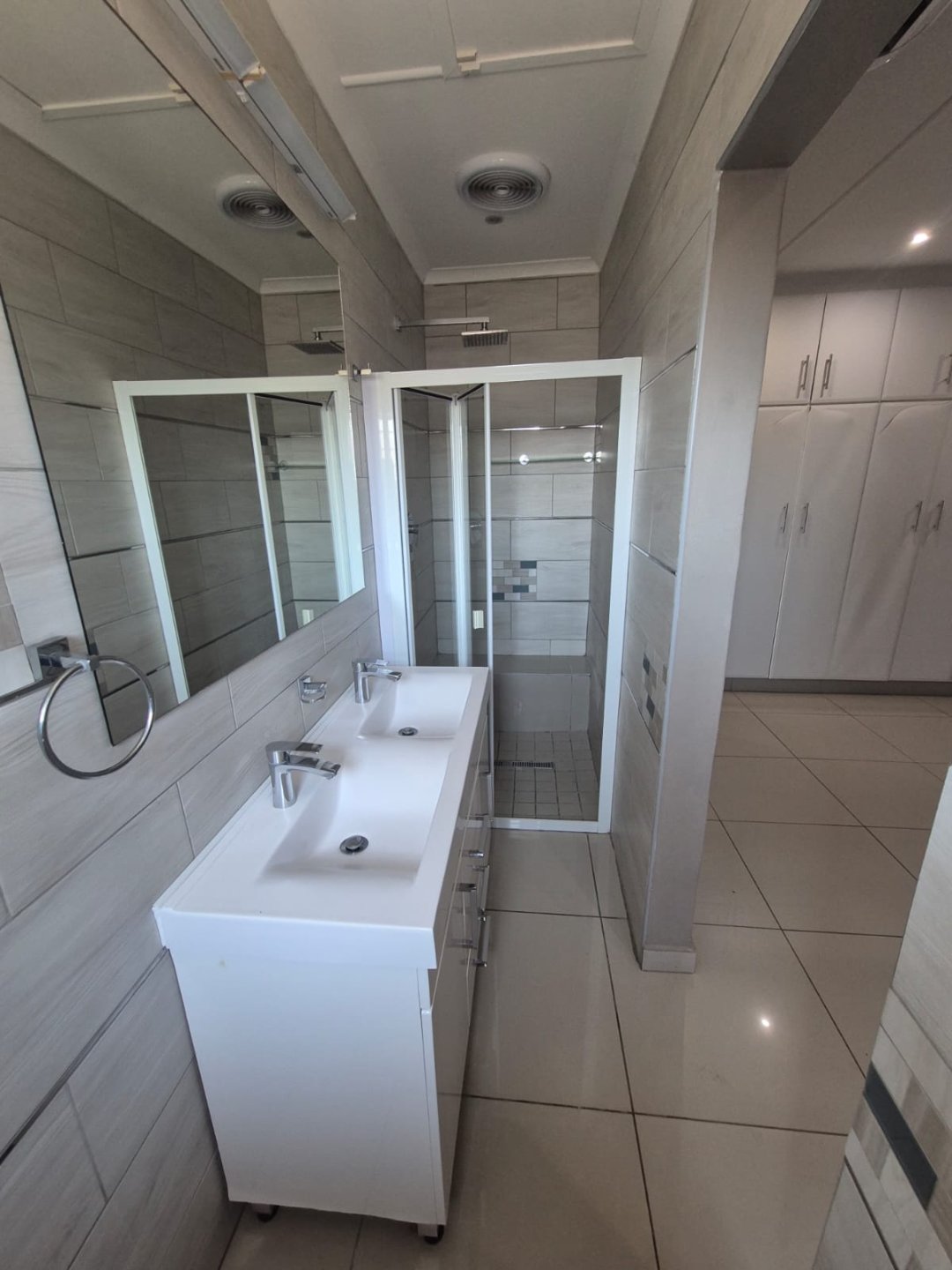 The home features three spacious bedrooms with built-in cupboards, a fully fitted kitchen, and a comfortable air-conditioned interior. It includes a guest bathroom as well as two en-suite bathrooms, providing convenience and privacy. A dedicated study and an inviting lounge complete the living spaces.