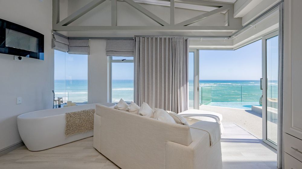 The kitchen is a minimalist dream. Chic open-plan and equipped for a professional chef. A hidden scullery ensures the main living area remains flawlessly styled and clutter free. Four of the six luxurious bedrooms are designed to maximize the view, each offering direct access to a private patio where you can greet the sunset and sunrise over the Indian Ocean. Every room boasts a pristine dedicated en-suite bathroom for ultimate guest or family privacyThe Top Floor: Bask in the sun in your heated infinity pool, sipping a cocktail while watching the boats pass by on the turquoise ocean.