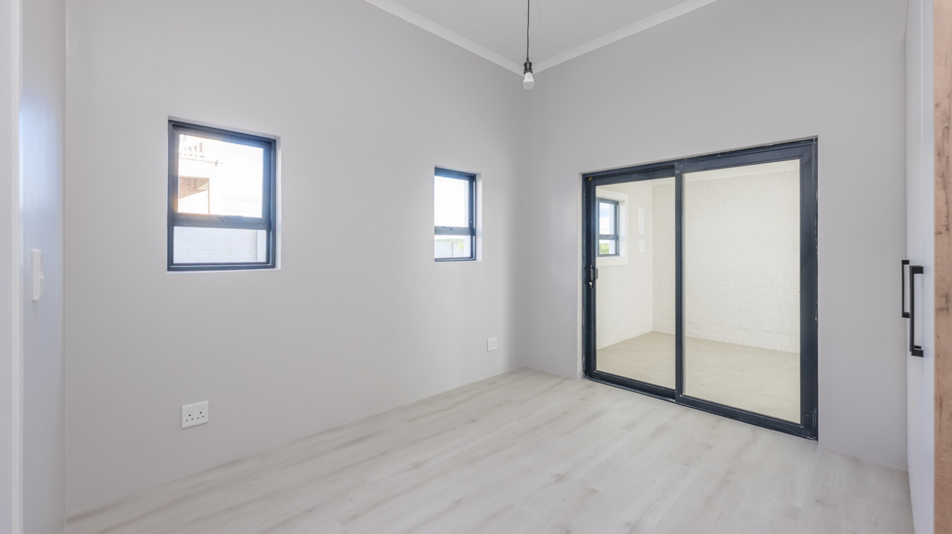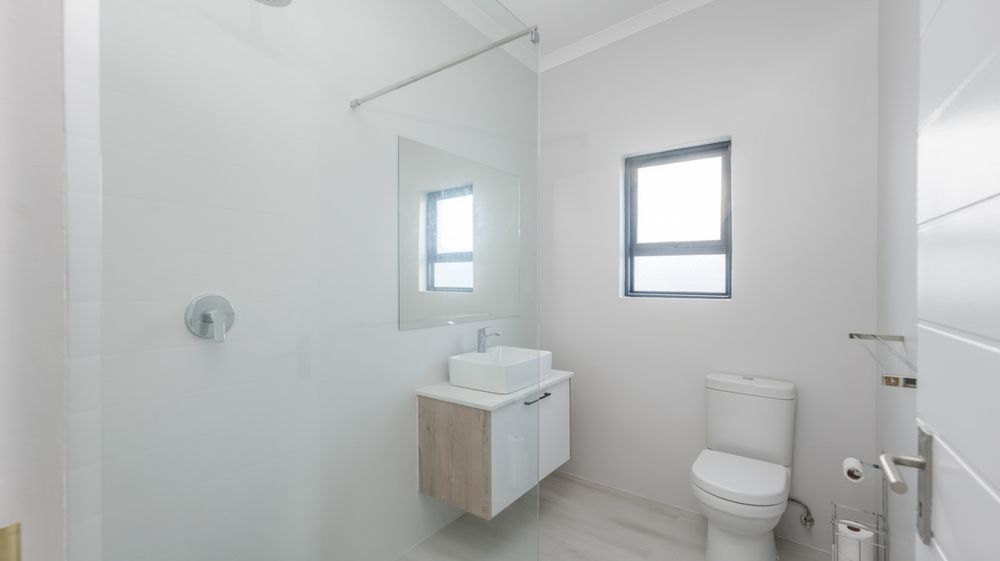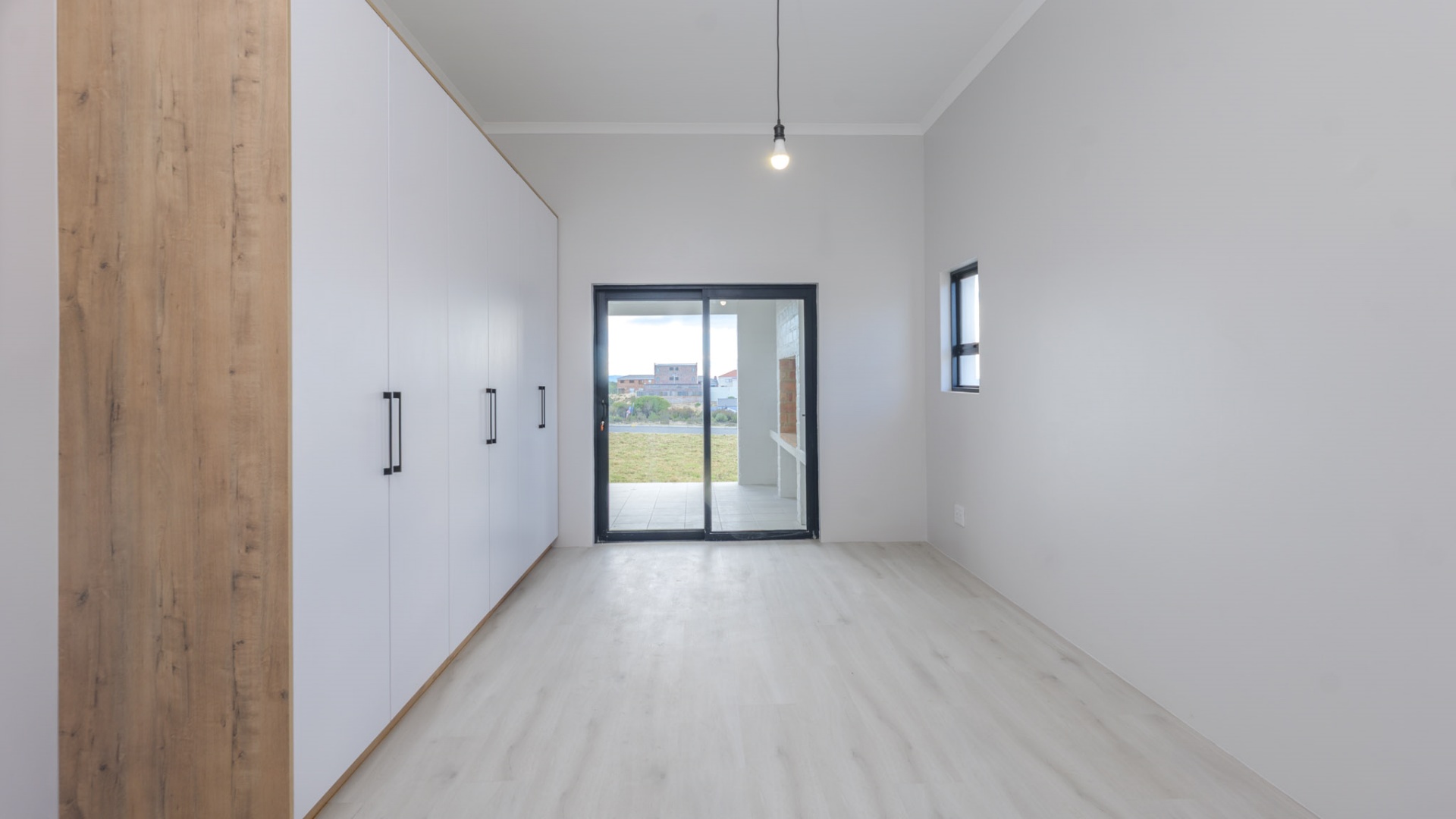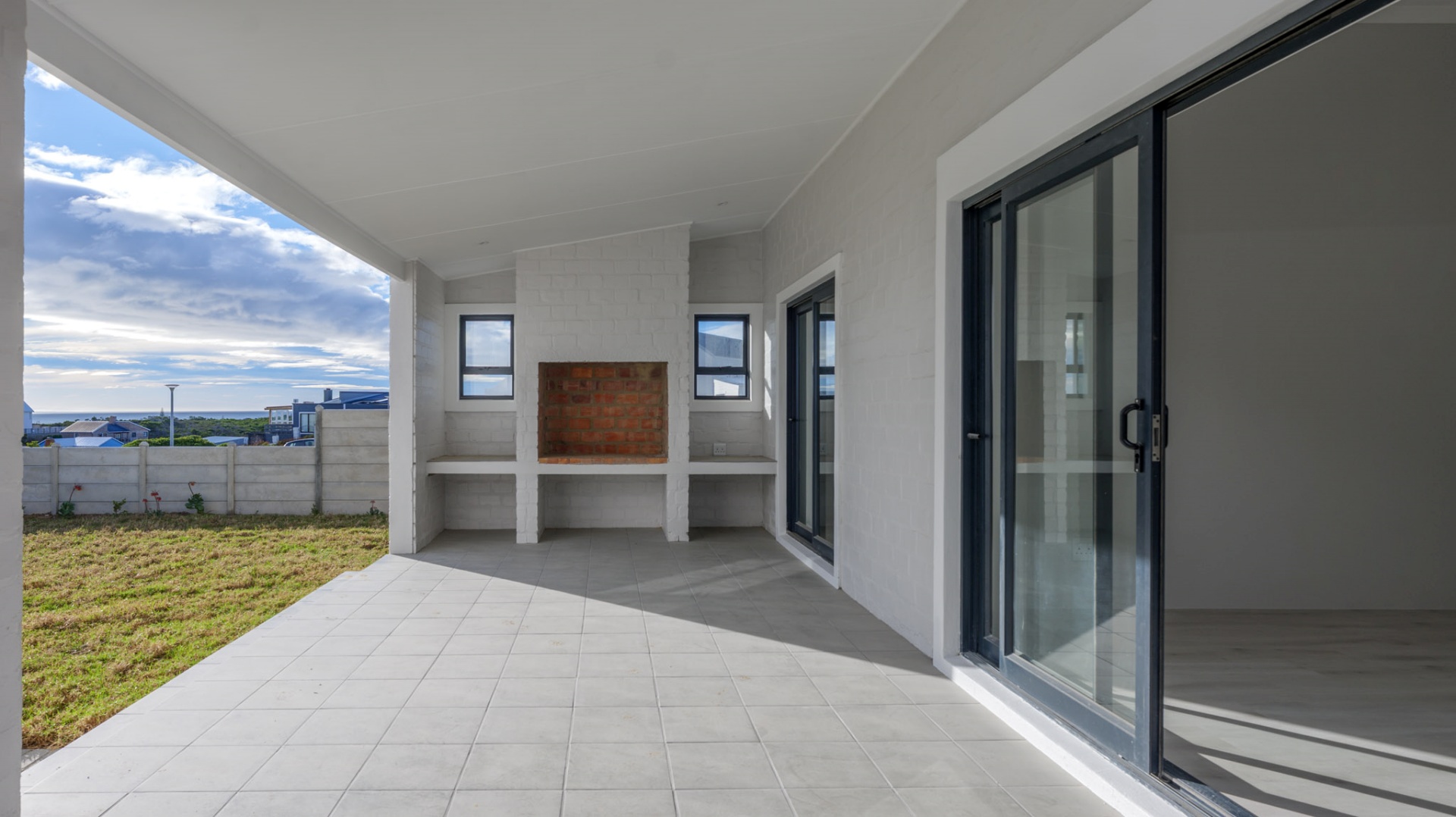 The finishes include Vinyl flooring, Hansgrohe taps and mixers, a super spacious covered braai area, 4 bedrooms, 3 bathrooms, and a double garage. The kitchen is fitted with Caesarstone Tops and Folkstone Grey Melamine Cupboards.