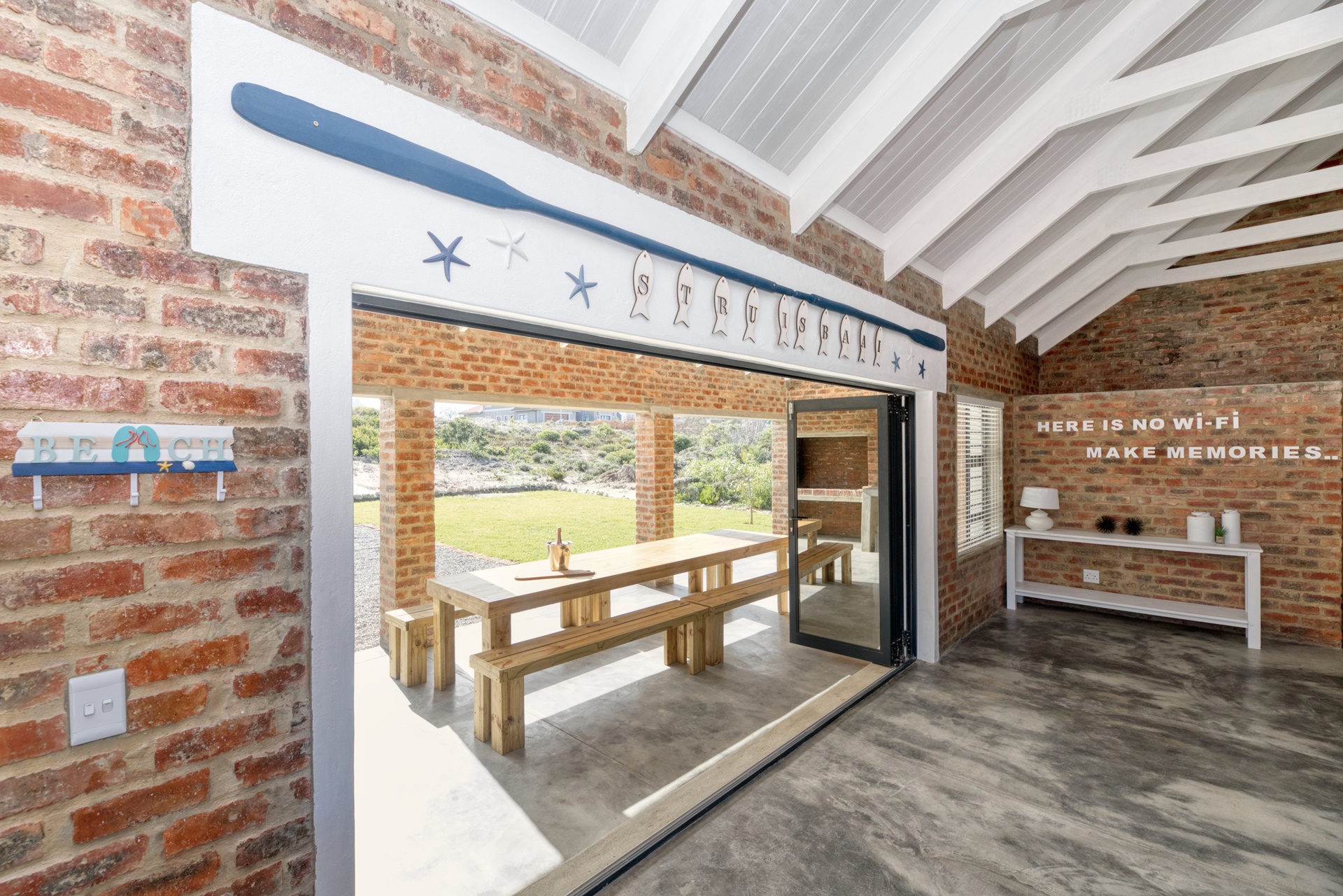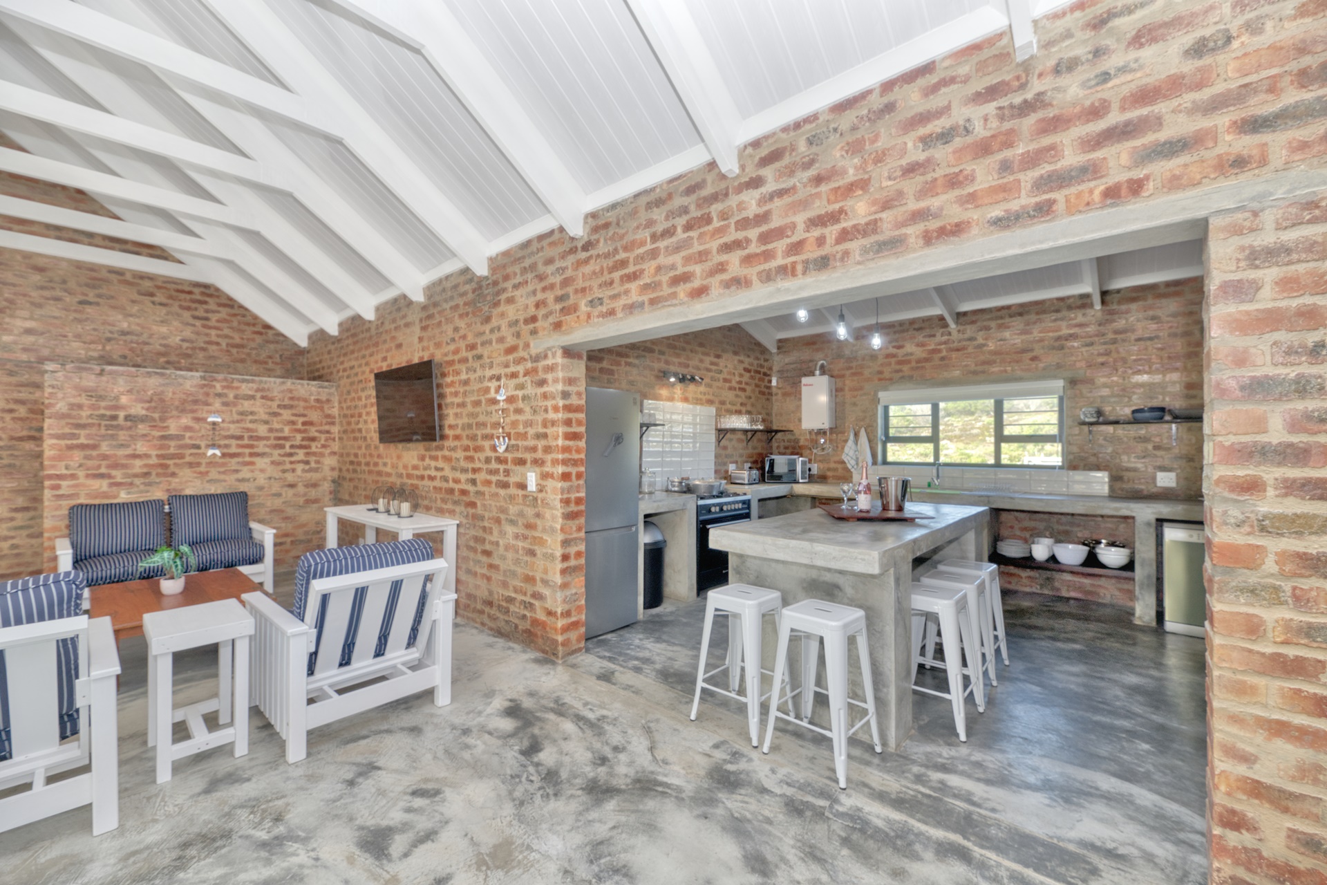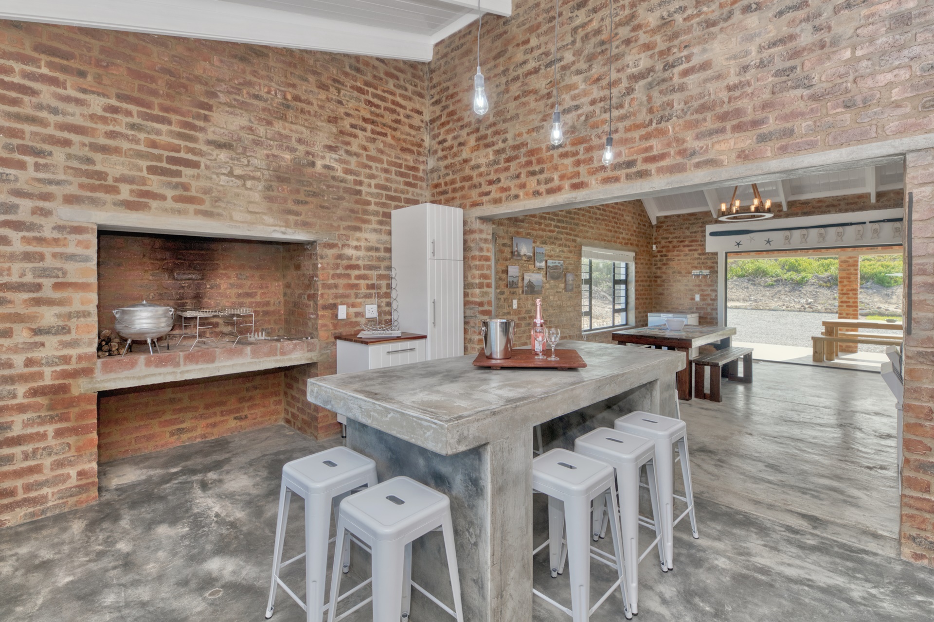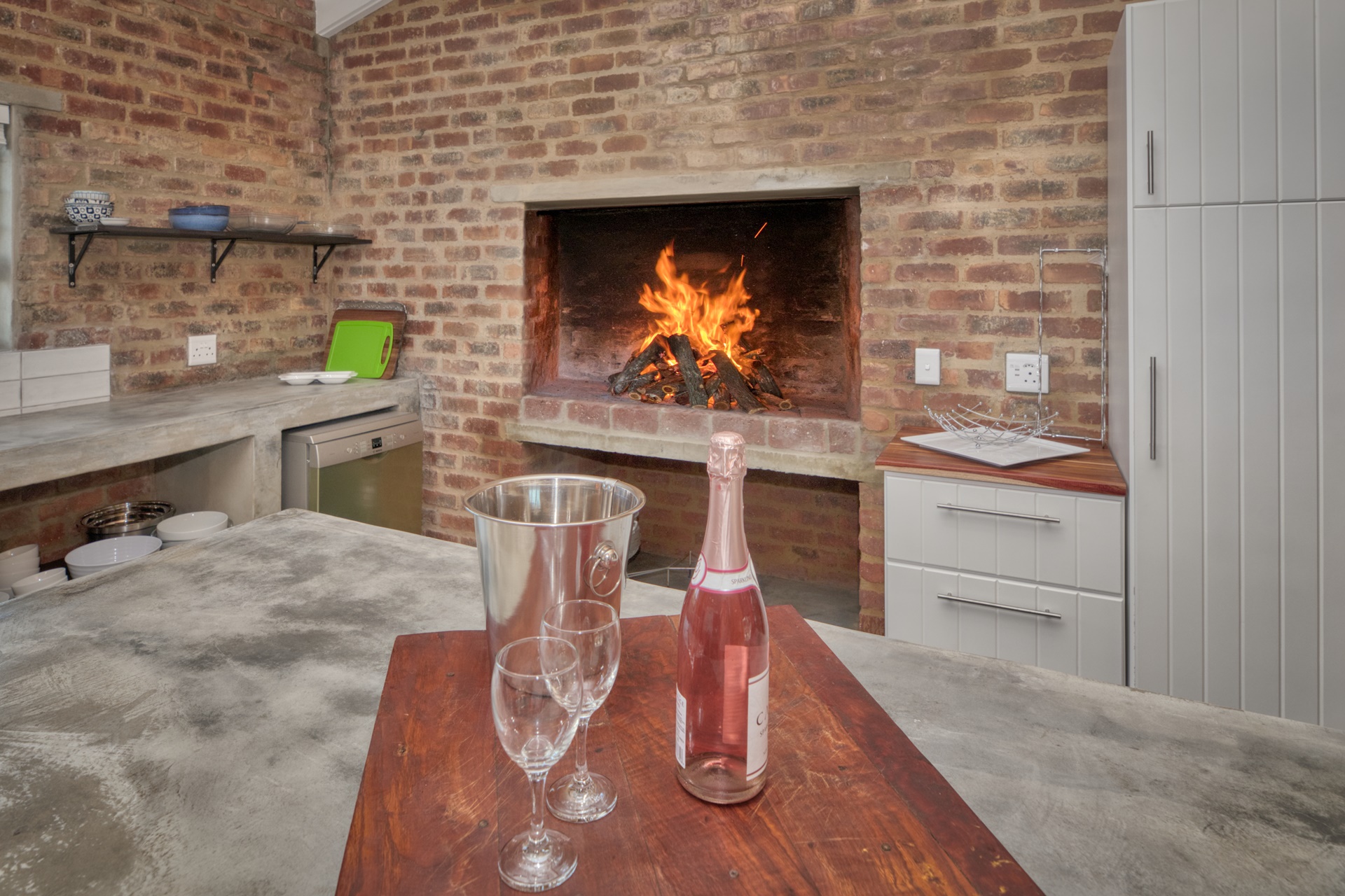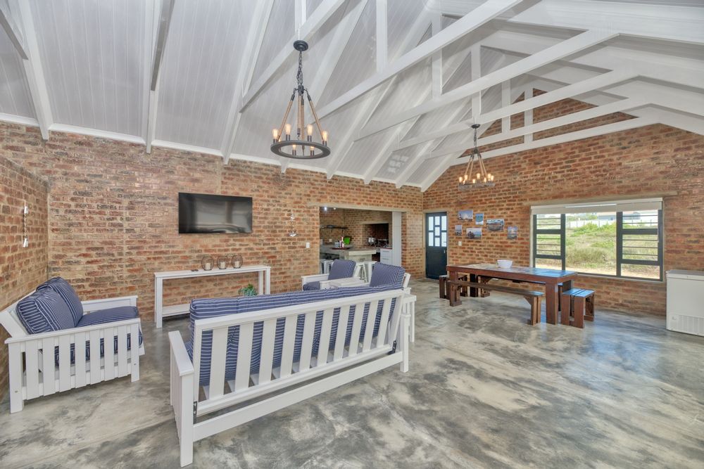 Very spacious living area with a built-in braai and stacking doors leading onto undercover patio and braai