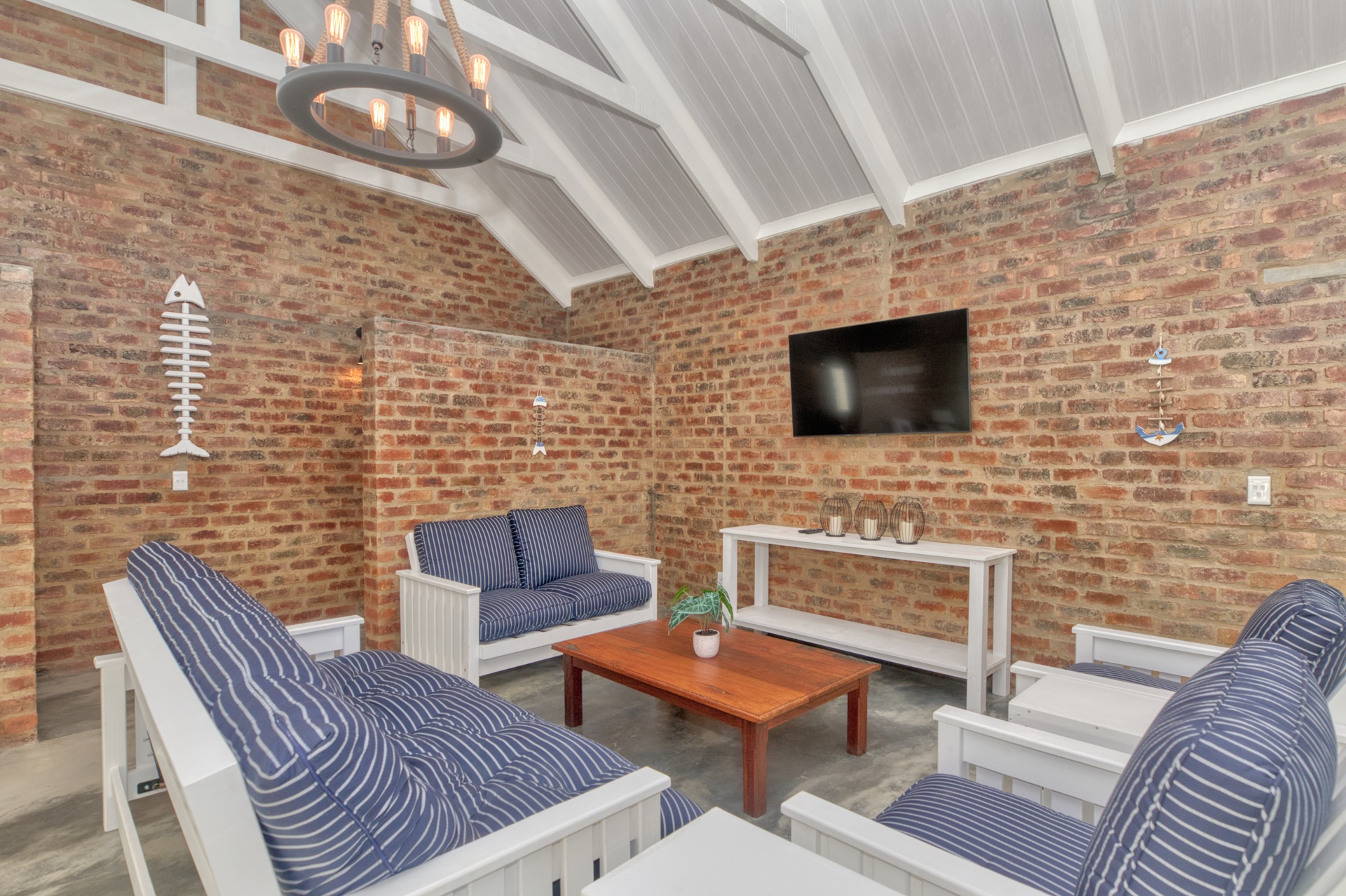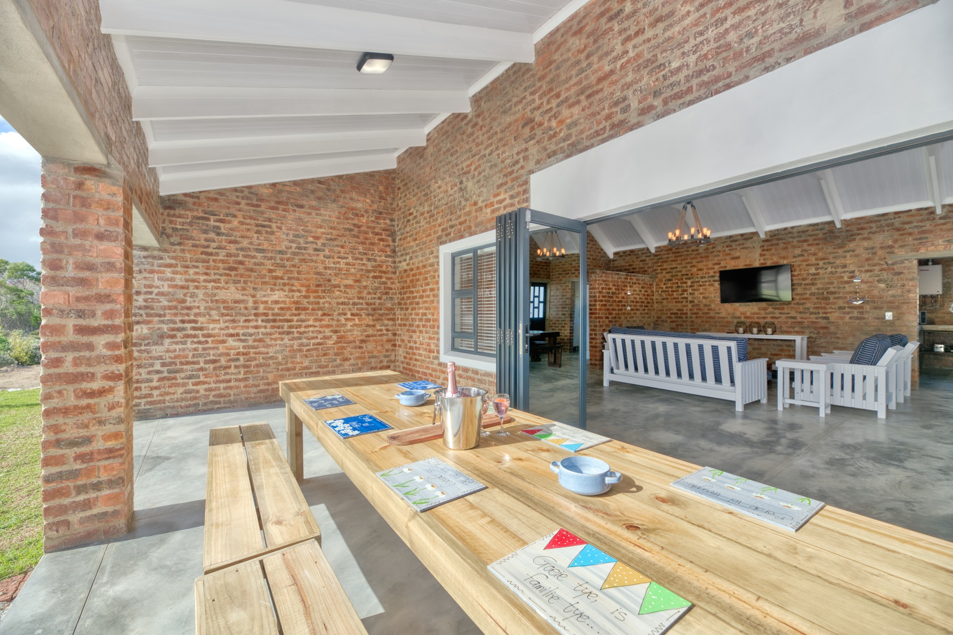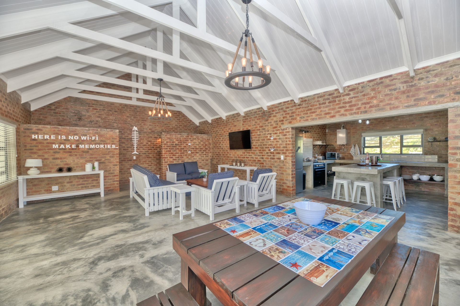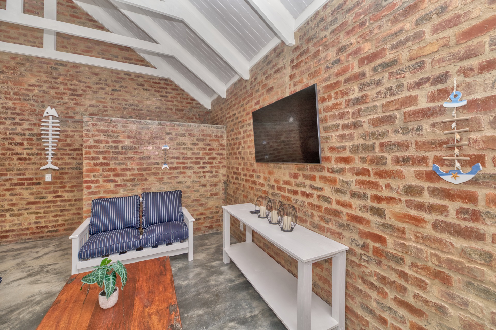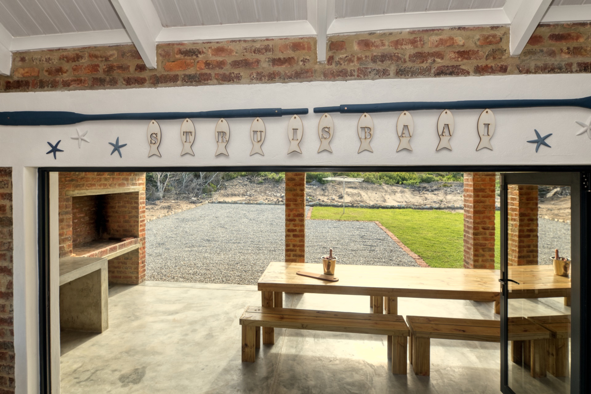 Very spacious living area with a built-in braai and stacking doors leading onto undercover patio and braai