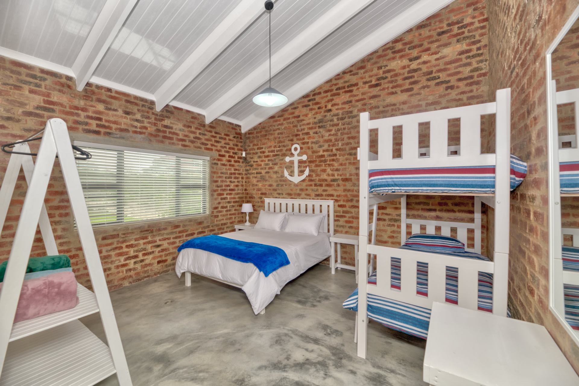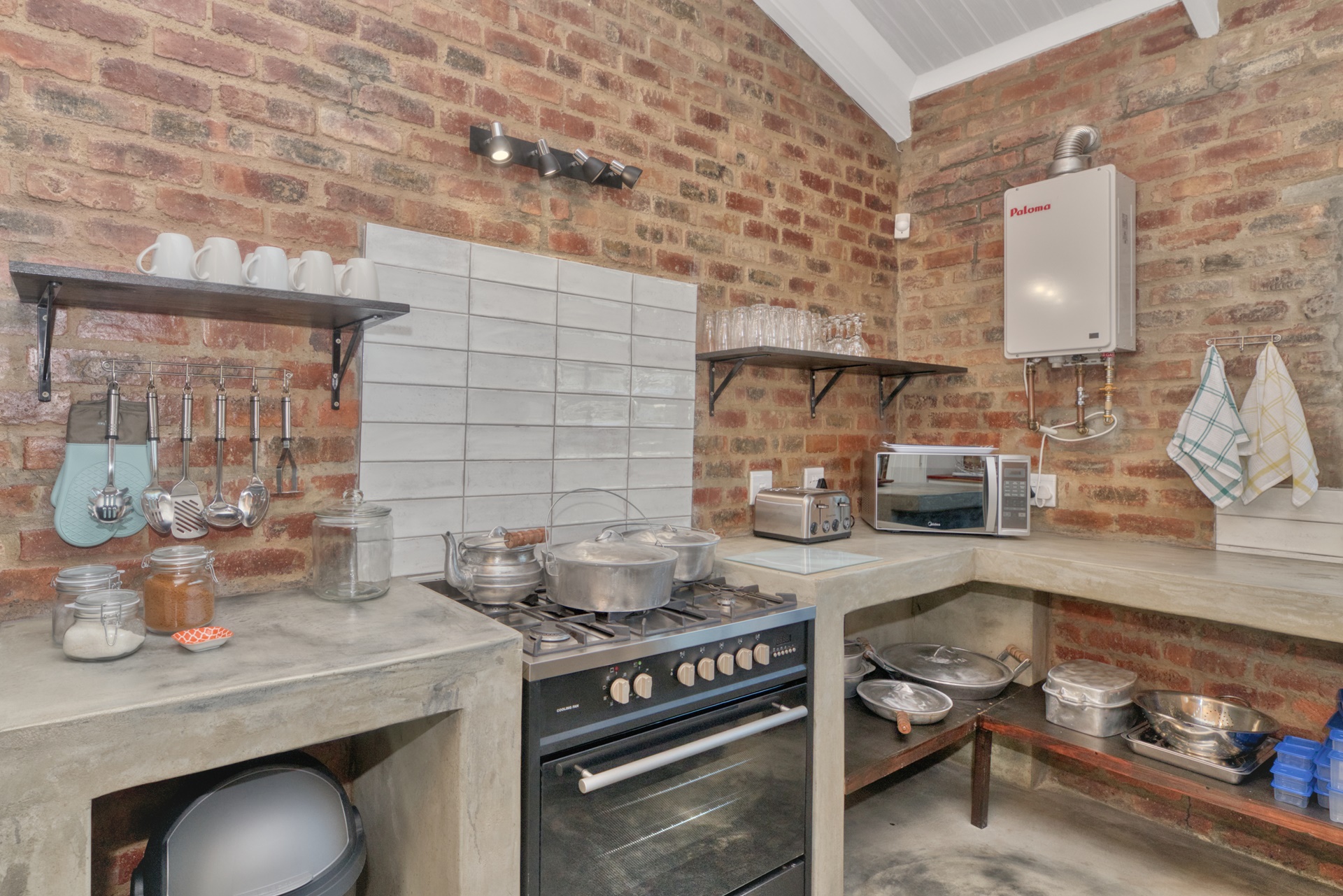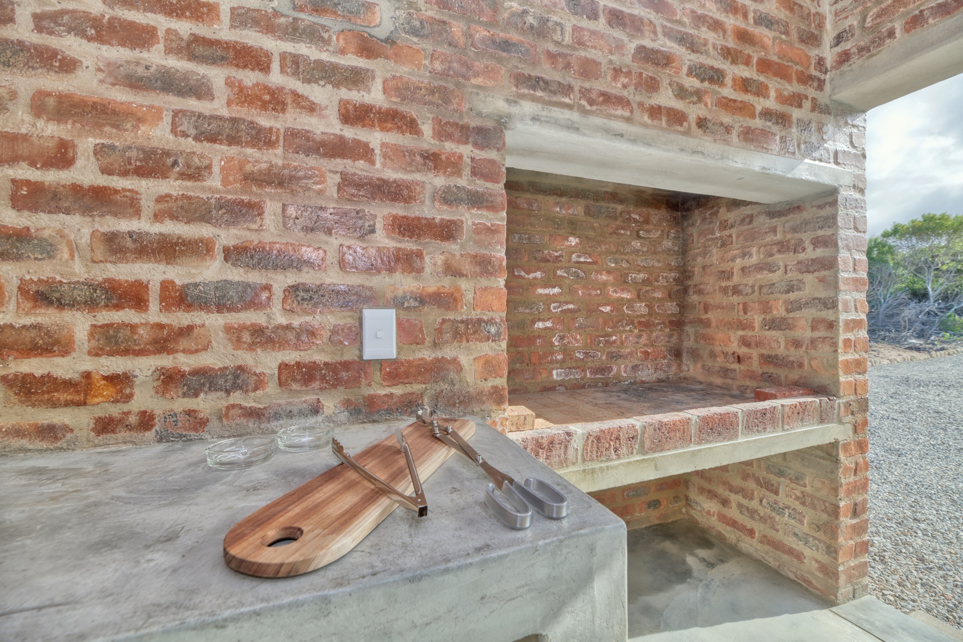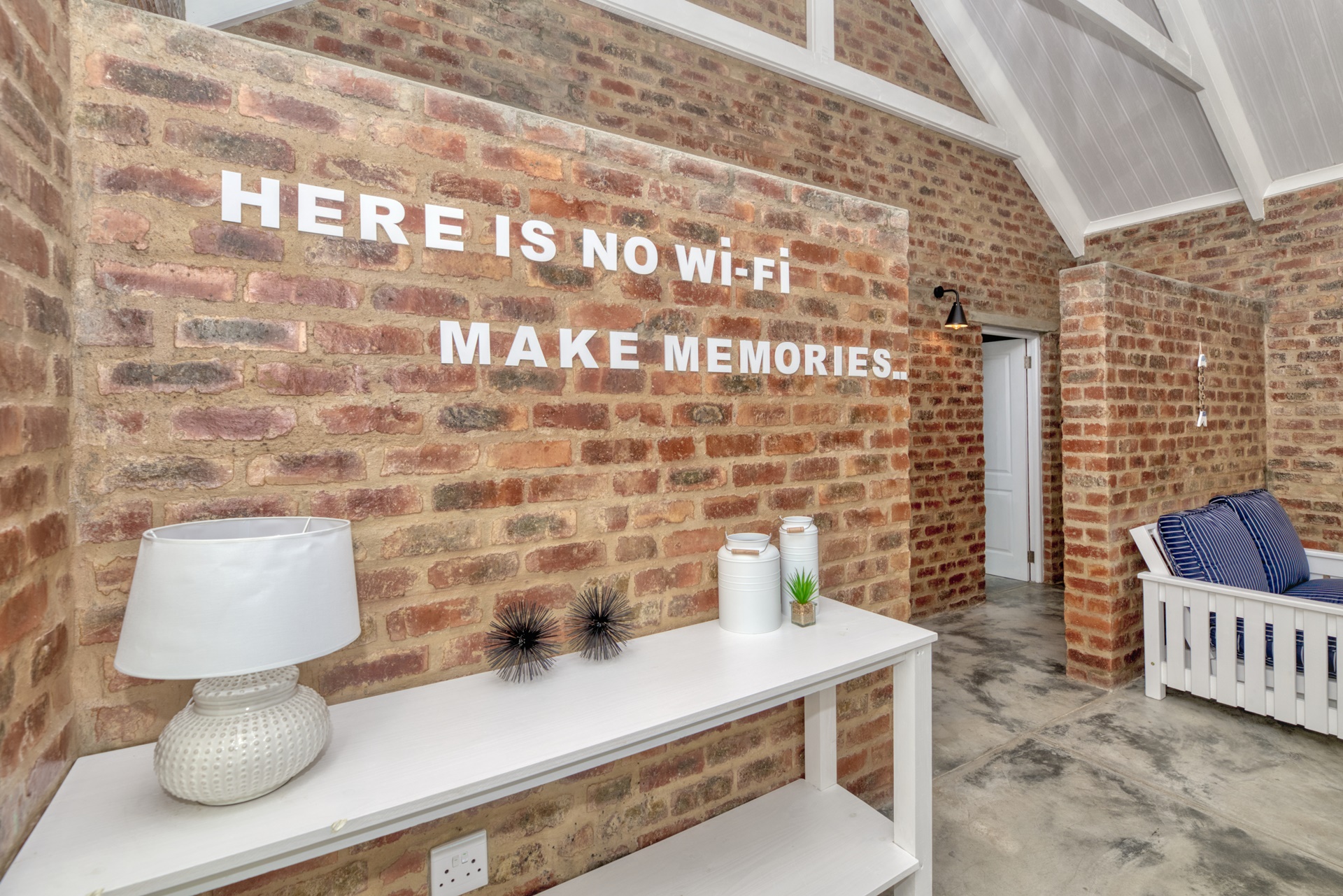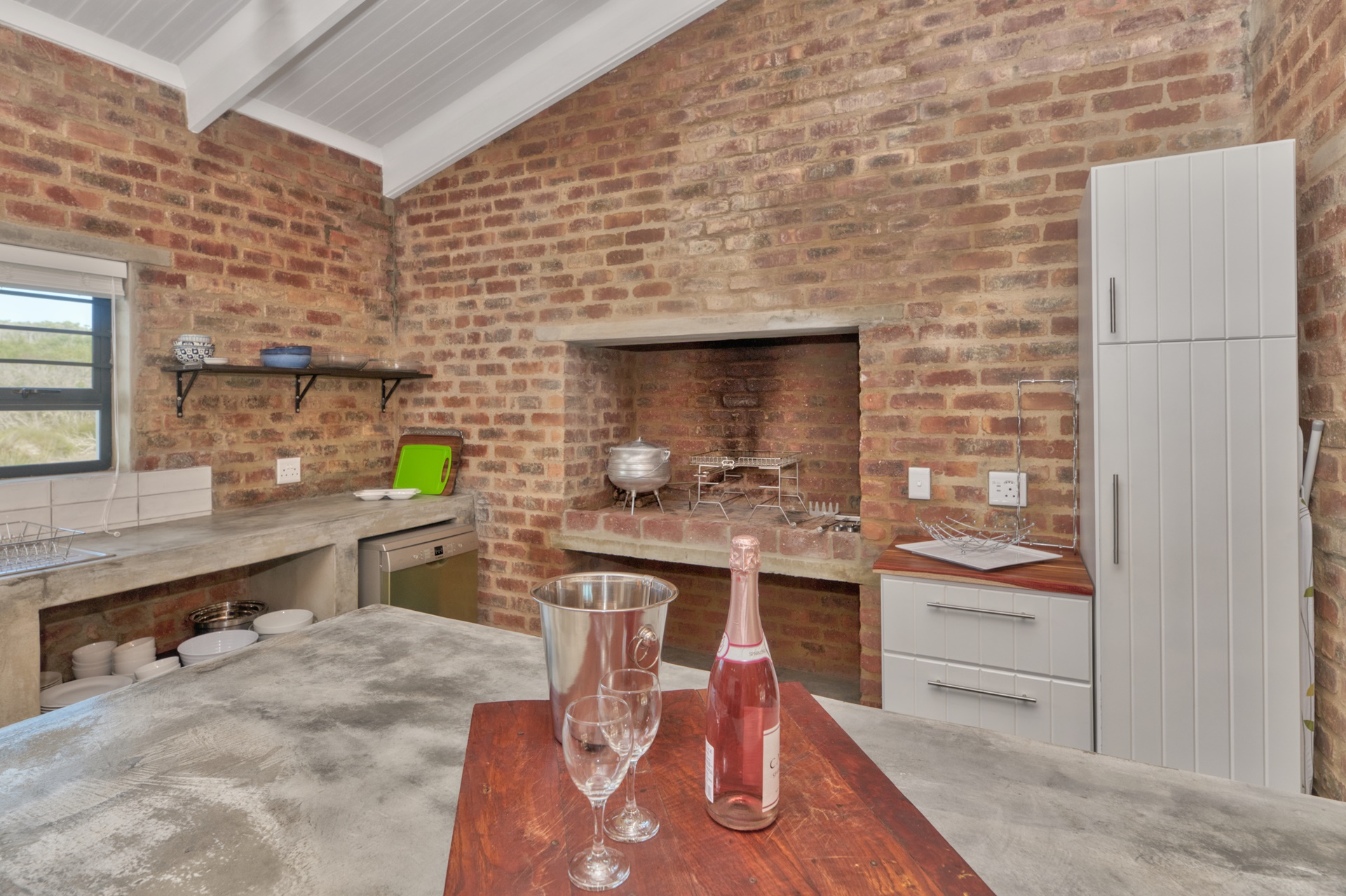 Very spacious living area with a built-in braai and stacking doors leading onto undercover patio and braai