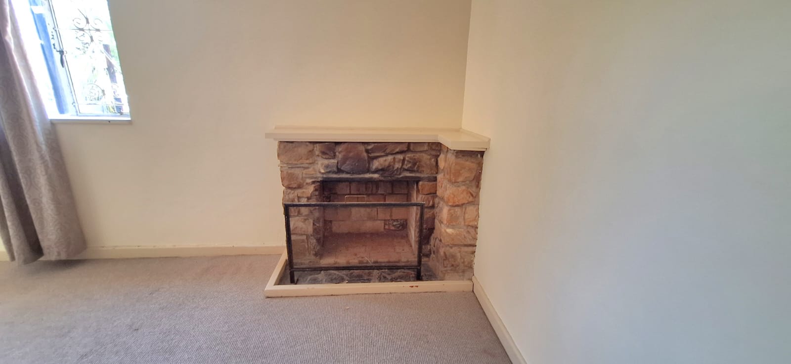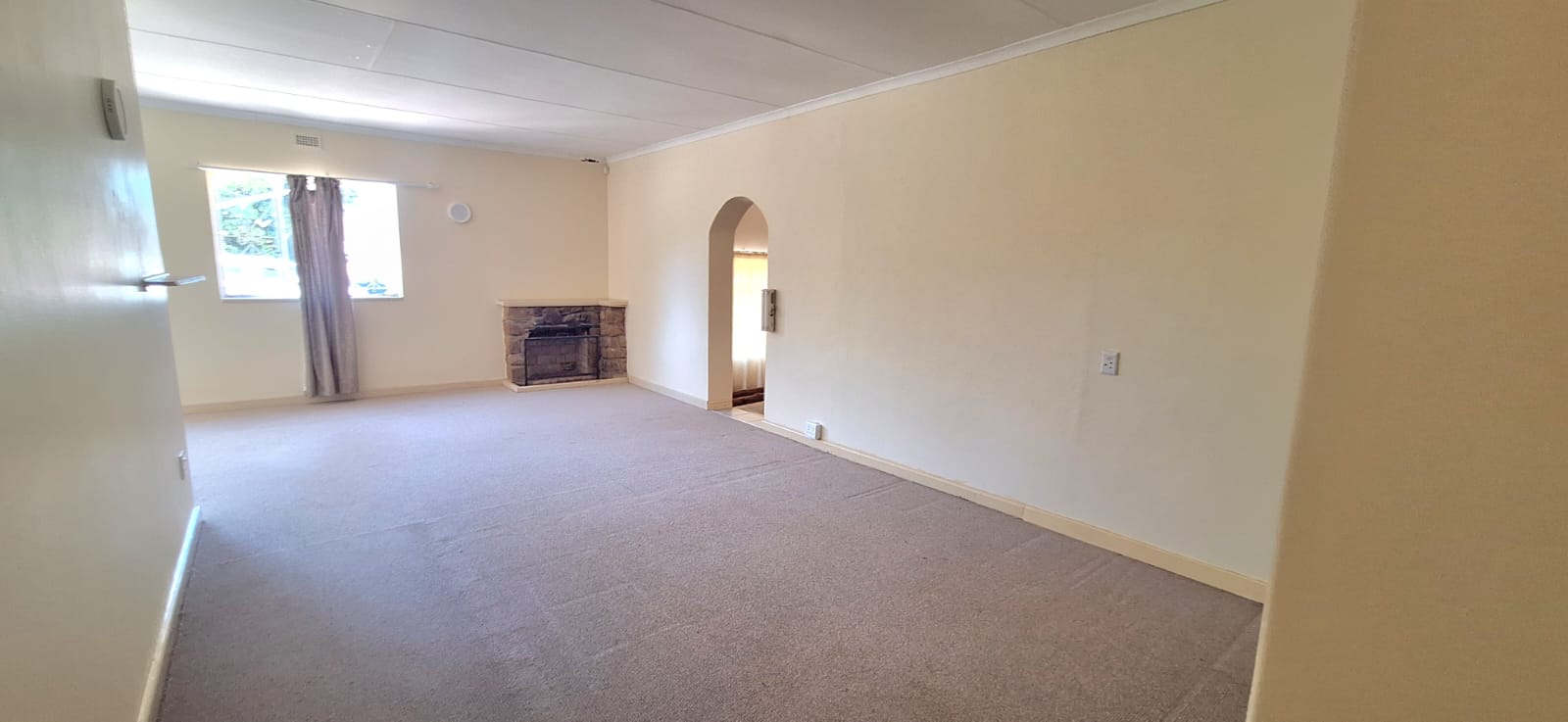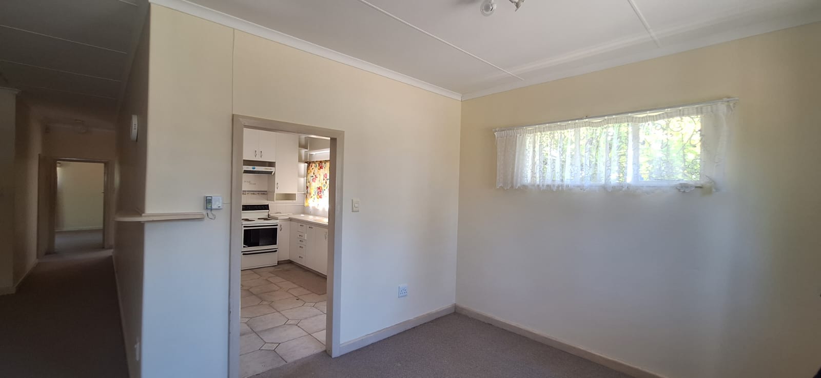 The home features three comfortable bedrooms, all fitted with carpets and built-in cupboards, along with a full bathroom and a separate toilet. The well-appointed kitchen offers ample cupboard space. The kitchen flows into an open-plan dining and lounge area, creating a warm and welcoming atmosphere for cosy winter evenings.