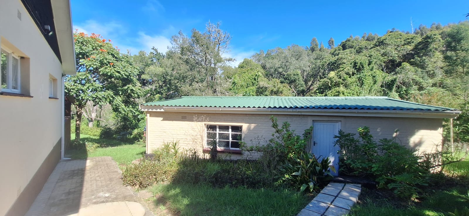 The double garage is positioned in a separate building at the rear of the property and includes additional facilities such as a kitchen area, shower, and a separate toilet. This space offers excellent potential to be converted into a self-contained flatlet for guests, extended family, or rental income.