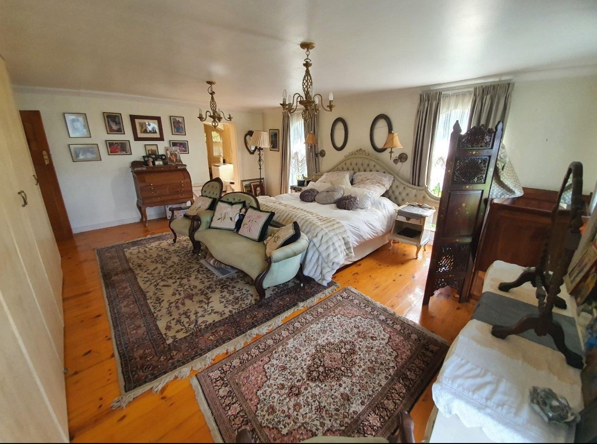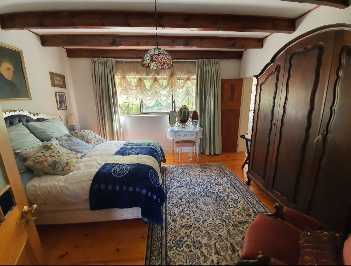 A impressive yellowwood staircase leads you to three of the five bedrooms.