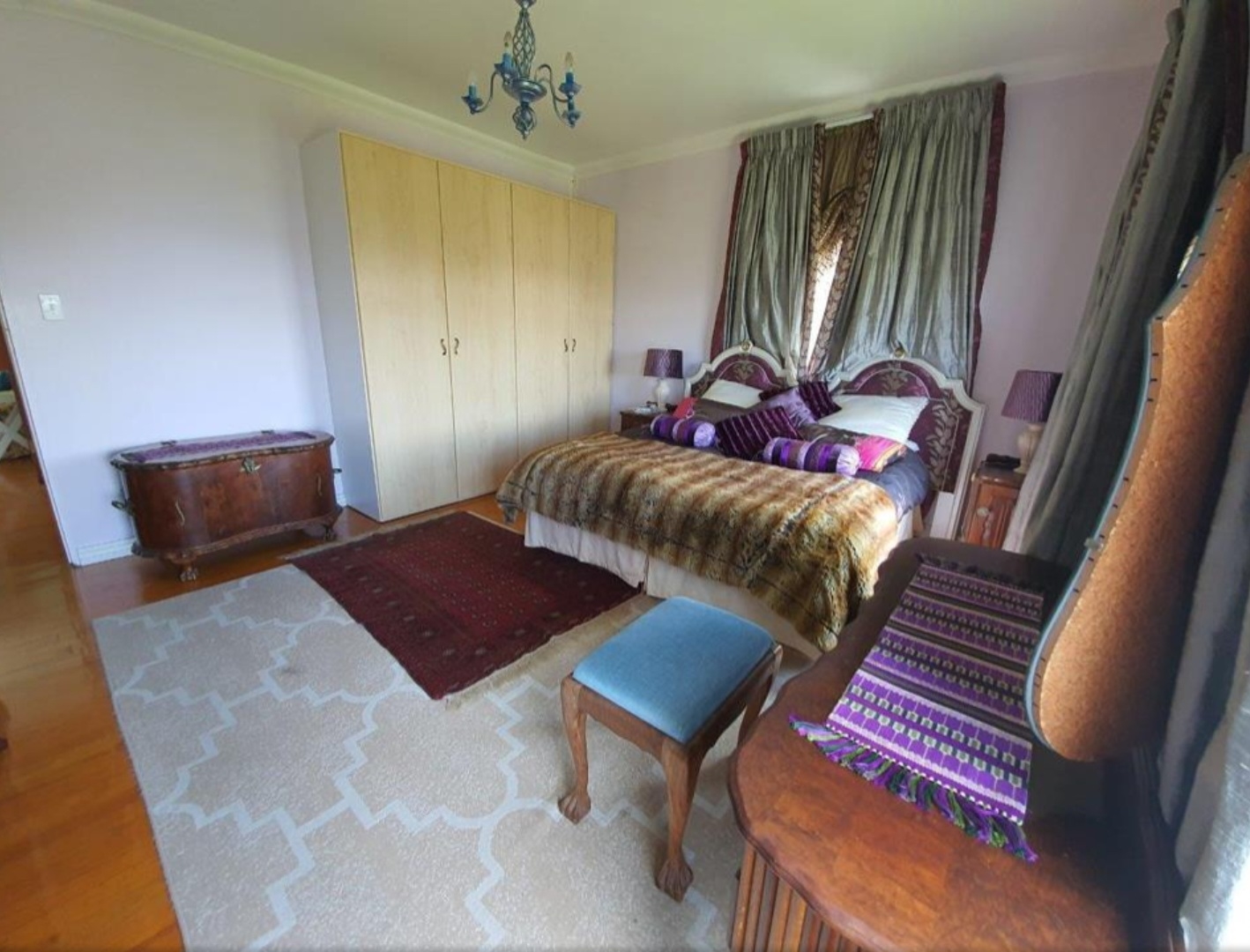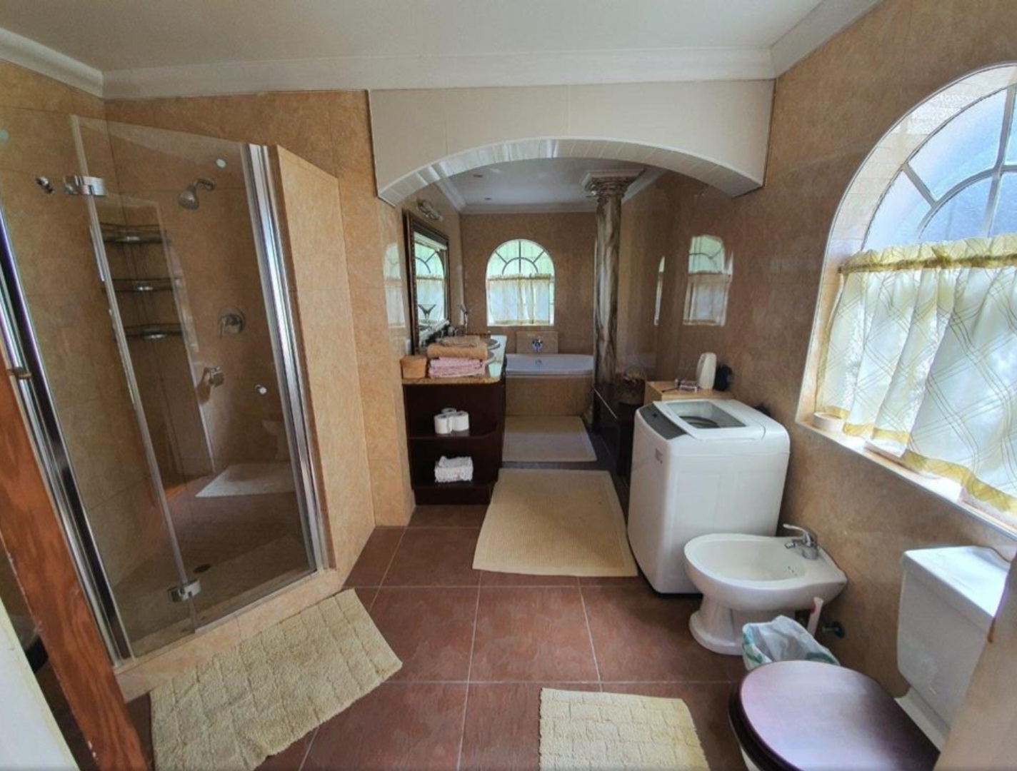 The property boasts two generous kitchens, one of which showcases beautiful yellowwood finishes, adding a touch of elegance and traditional charm. These well-equipped kitchens offer ample storage space and modern appliances, catering to the culinary needs of a discerning homeowner. Additionally, the double garage provides convenient parking and storage options for vehicles and other belongings.