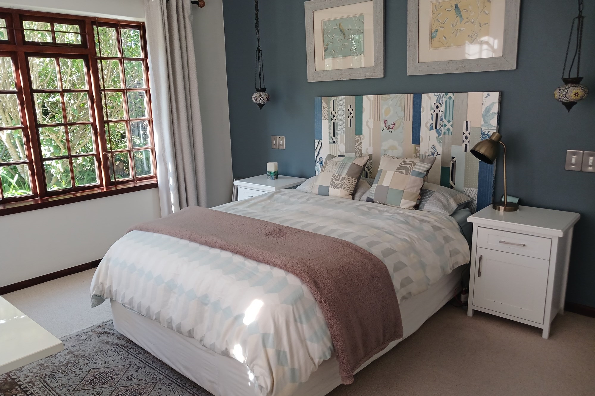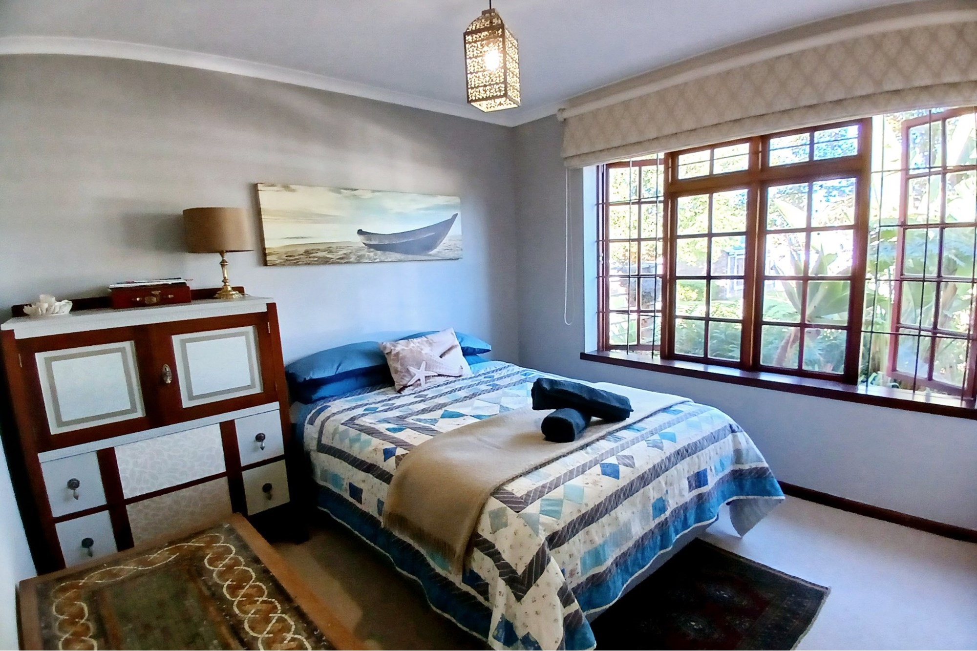 A private home is being offered for the December/January period for 4 persons only, in a 2-bedroom, 2-bathroom townhouse in a secure complex called Heron Village 150m walking distance to the Knysna Estuary. The complex is secure with access control and is one of 19 units with its own covered carport and plenty of visitor parking, as well as an open common area for kids to play.