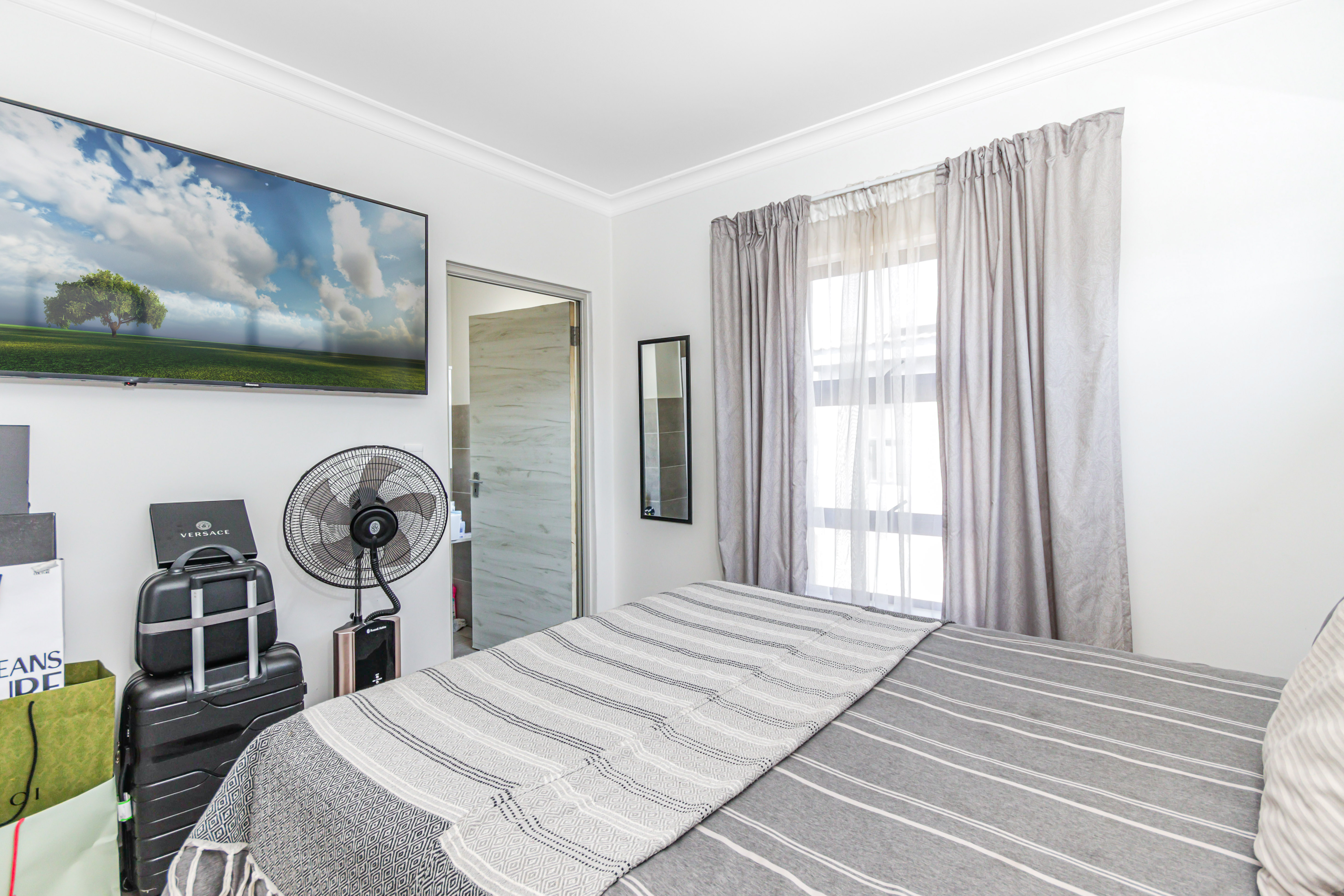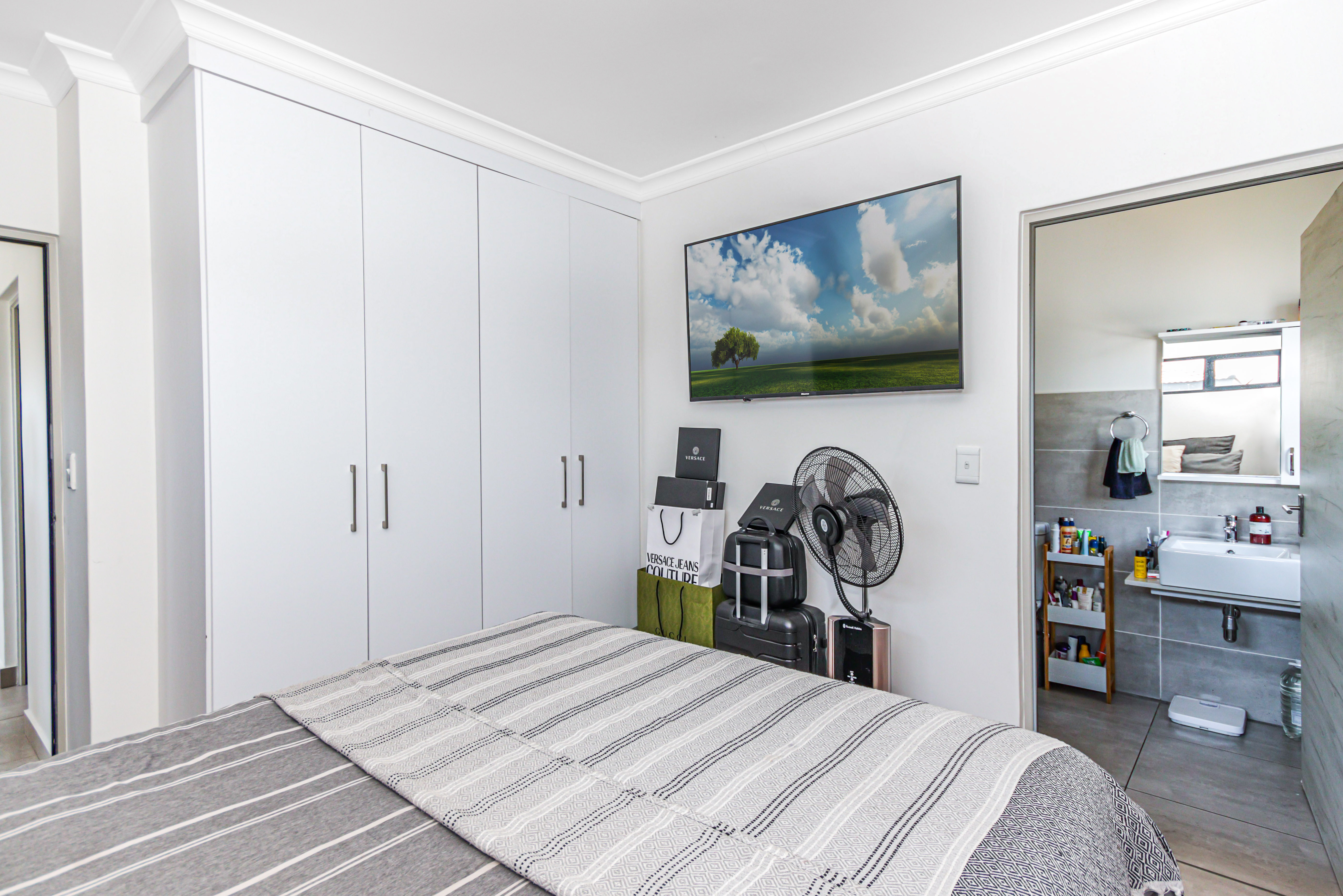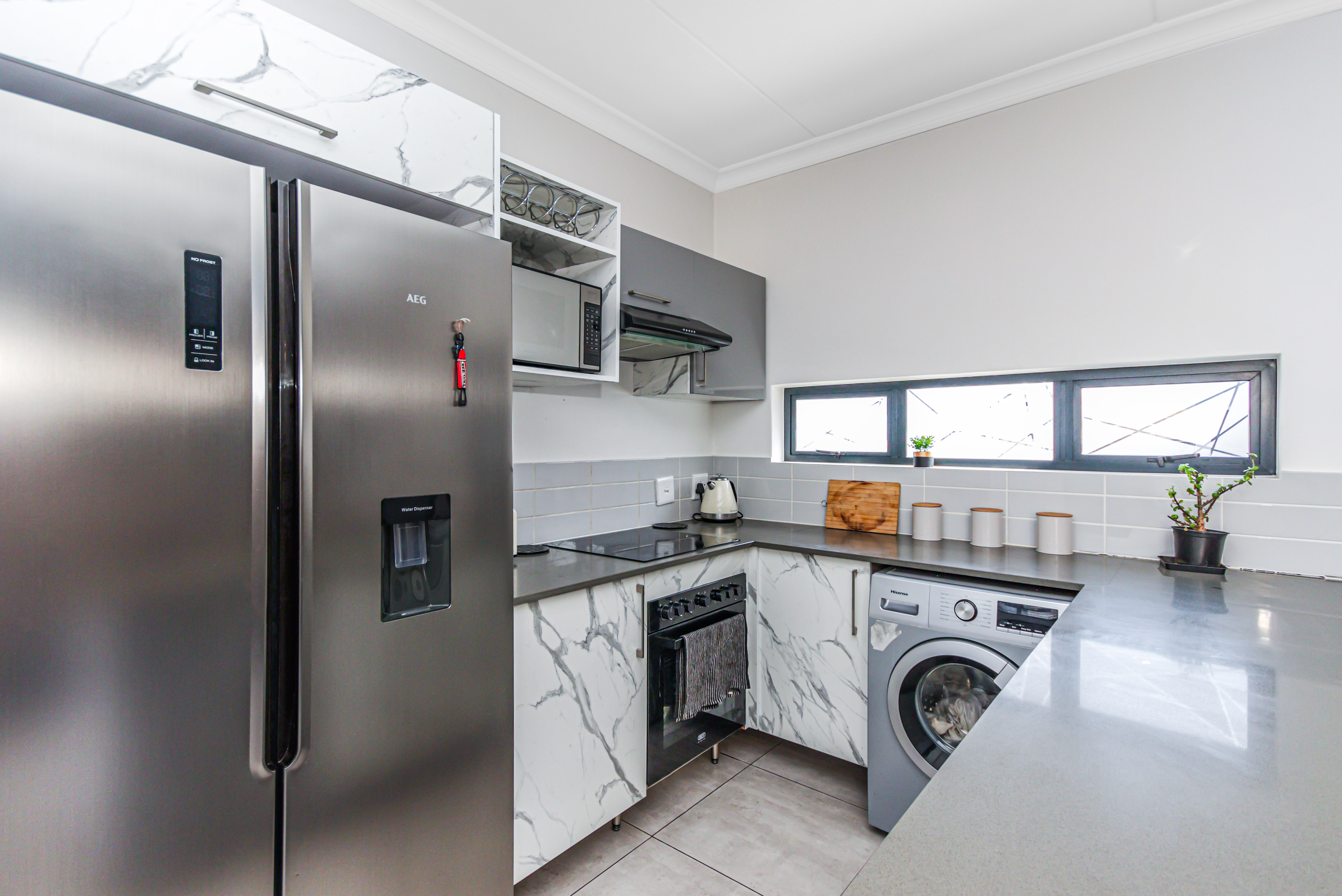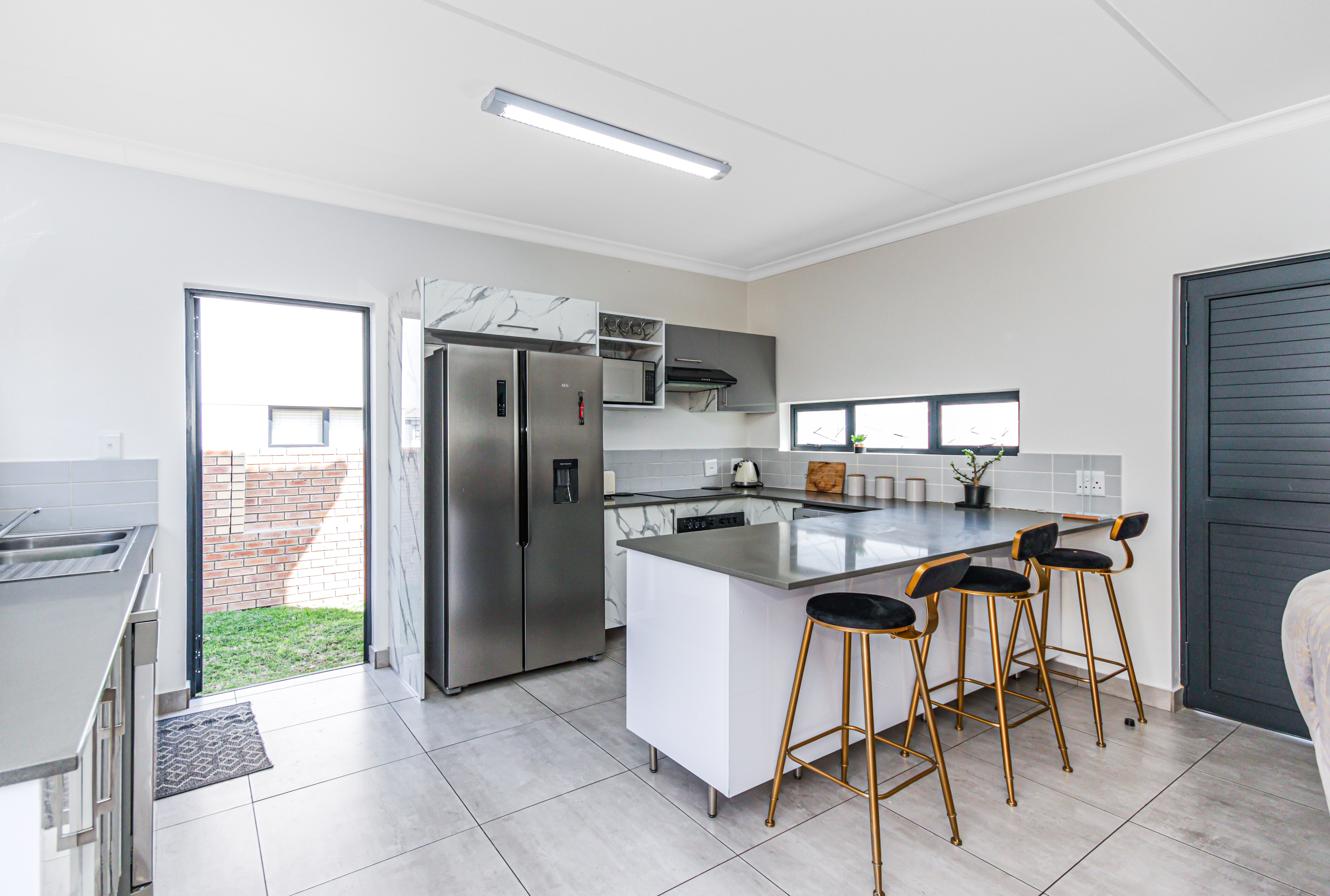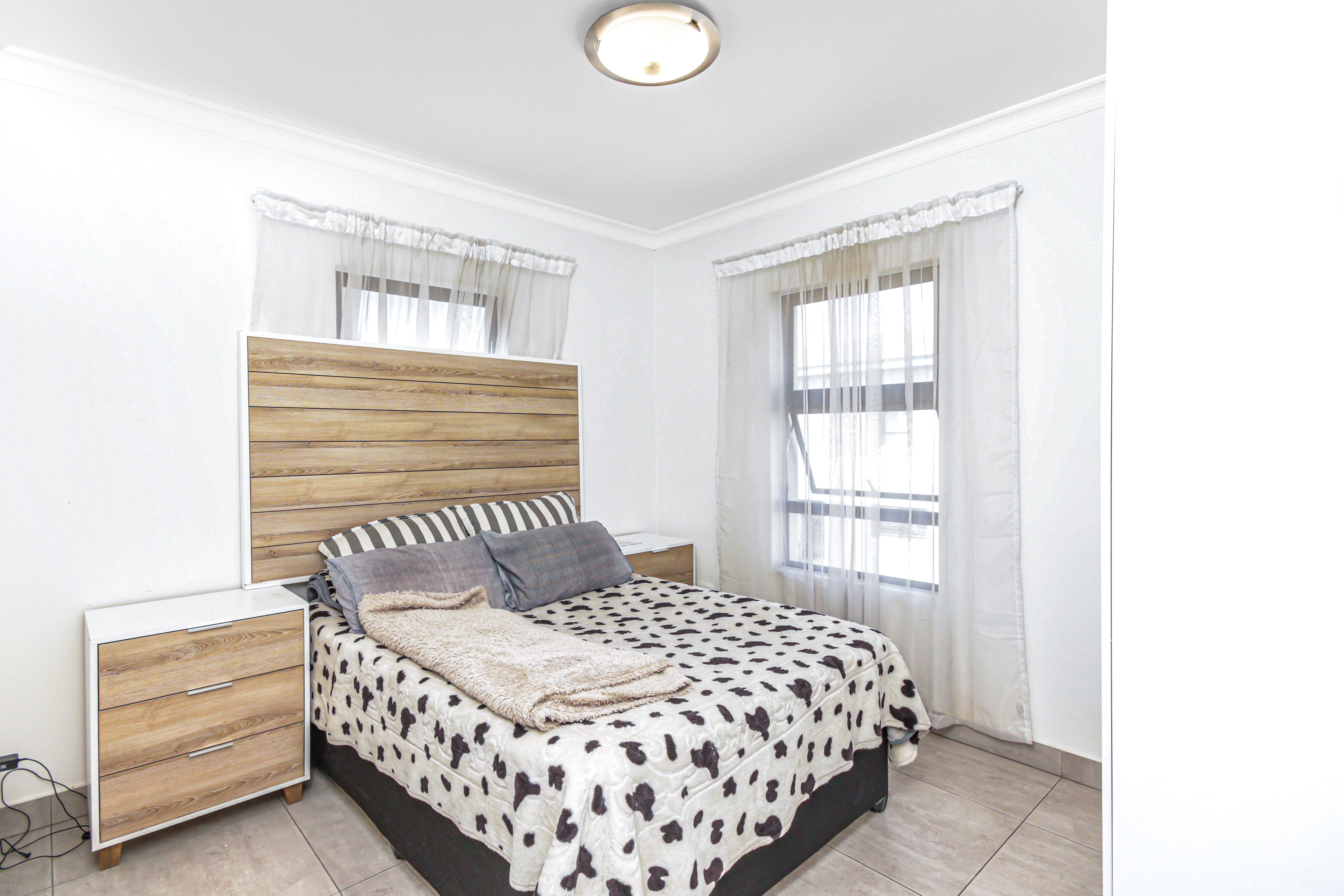 This exceptional two-story, ultra-modern home is located in the prestigious Thatchfield Ridge Estate, offering the perfect balance of elegance and comfort. Designed with family living in mind, it features three generously sized bedrooms. The master suite is a luxurious retreat, complete with a sleek en-suite bathroom and a contemporary shower. Thoughtfully designed with ample cupboard space throughout, the home ensures effortless organization and a clutter-free environment. The heart of the home is the stylish, modern kitchen, where form meets function. It includes space for two appliances and a double-door fridge, making meal prep and storage both practical and efficient. The open-plan layout connects seamlessly to the dining area, spacious enough for an 8-seater table, creating an inviting space for family meals and entertaining. The expansive lounge offers the ideal setting for relaxation and socializing. Outside, a well-maintained garden surrounds the home, providing a peaceful sanctuary for gardening, outdoor activities, or simply enjoying the natural beauty. The property is equipped with full solar power backup and a solar geyser, ensuring an uninterrupted energy supply while promoting eco-friendly, cost-efficient living. This meticulously designed double-story home in Thatchfield Ridge Estate epitomizes contemporary living, combining style and functionality for the modern family. Its focus on sustainability through solar power highlights its commitment to both comfort and environmentally conscious living.