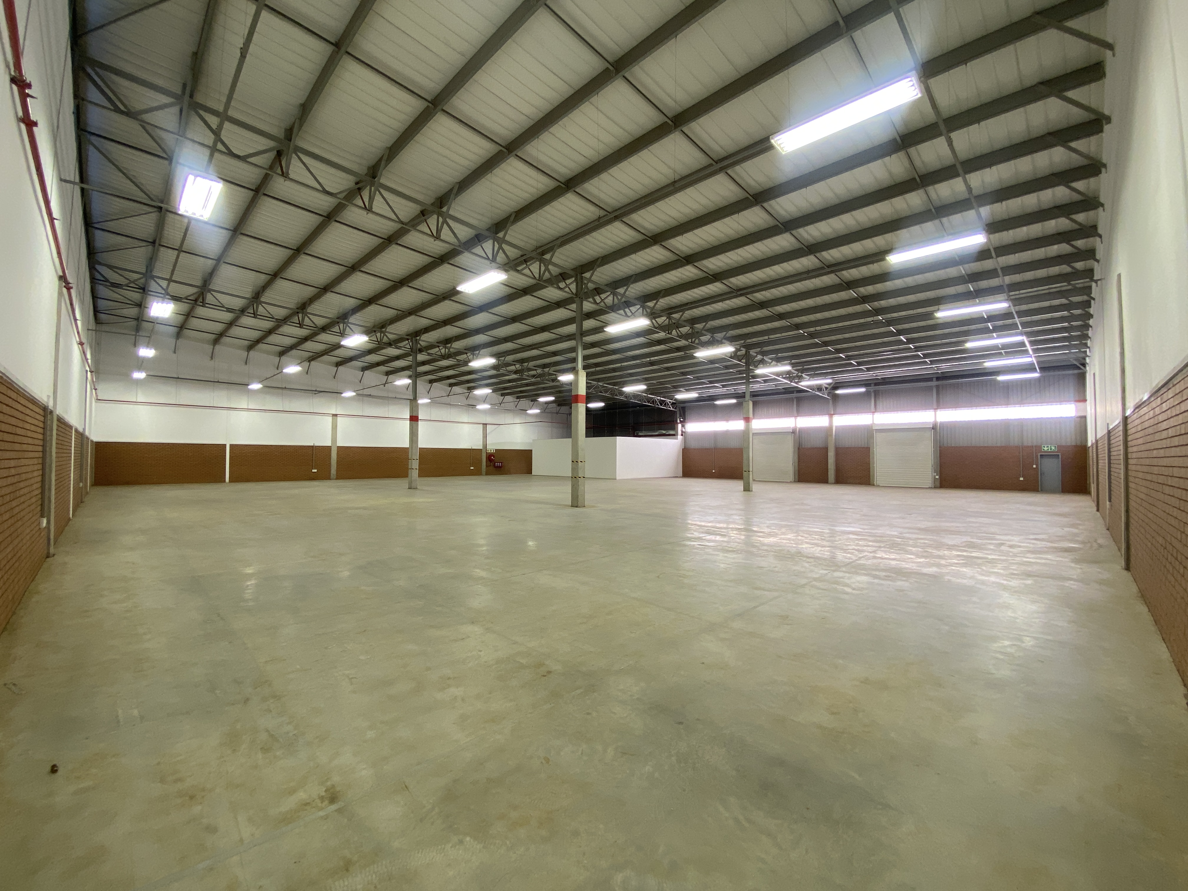 Functional warehouse layout with on-grade roller shutter doors, high eaves, and excellent internal height for racking