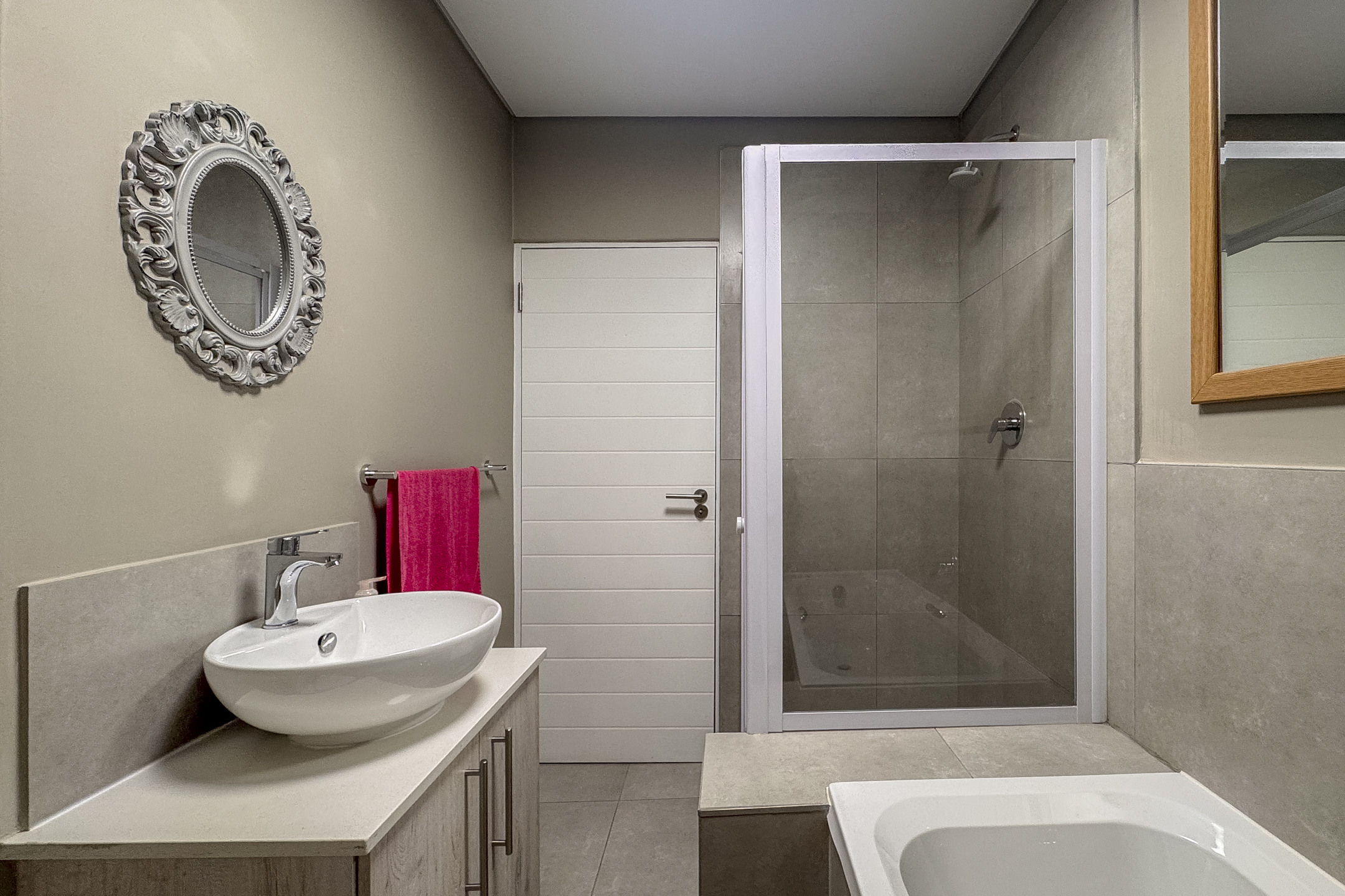 * Main bedroom with elegant open-plan en-suite bathroom