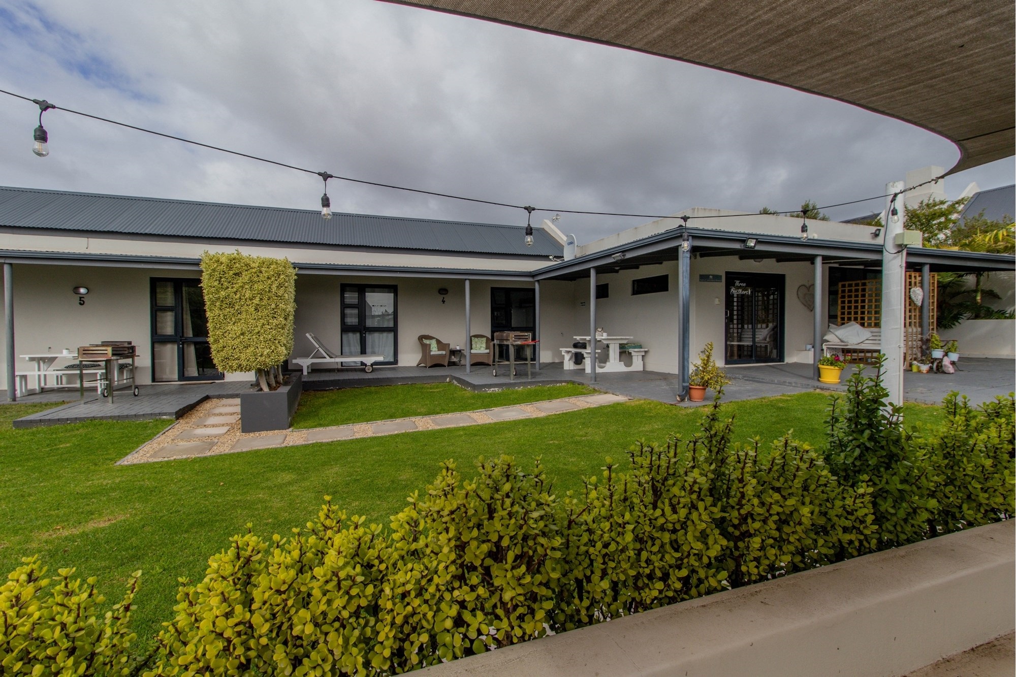 Two units open to a communal garden and outdoor entertainment area