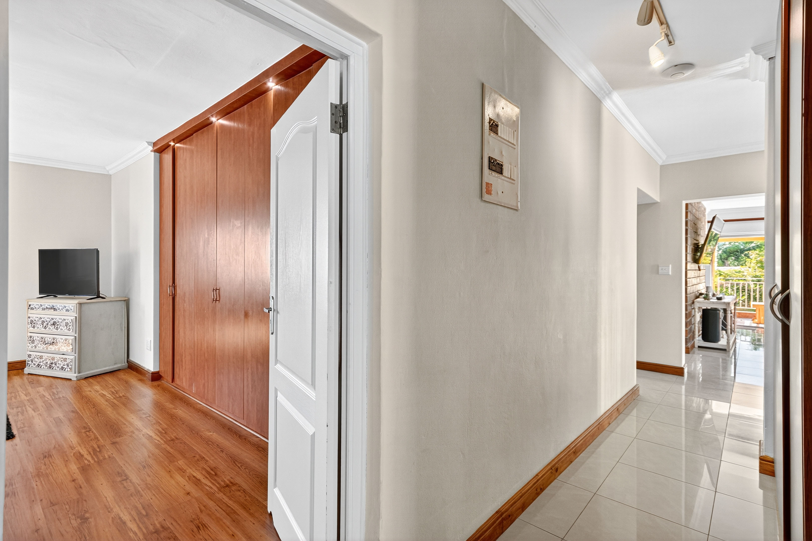 Accommodation includes three bedrooms, with the main suite offering ample cupboard space and a stylish en-suite bathroom. Two additional bedrooms share a modern full bathroom, ensuring comfort and convenience for the whole family.